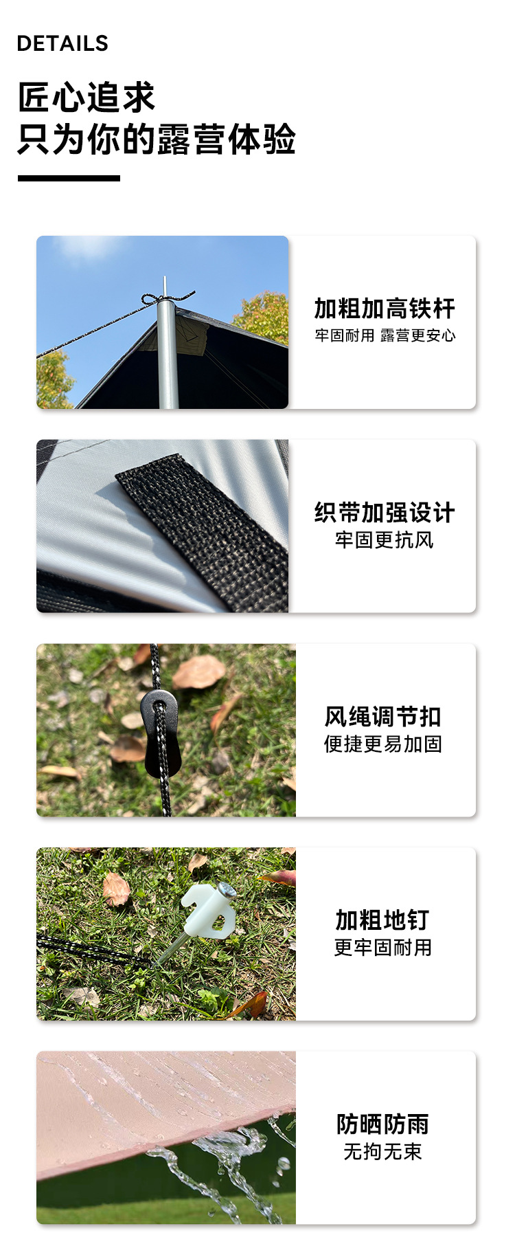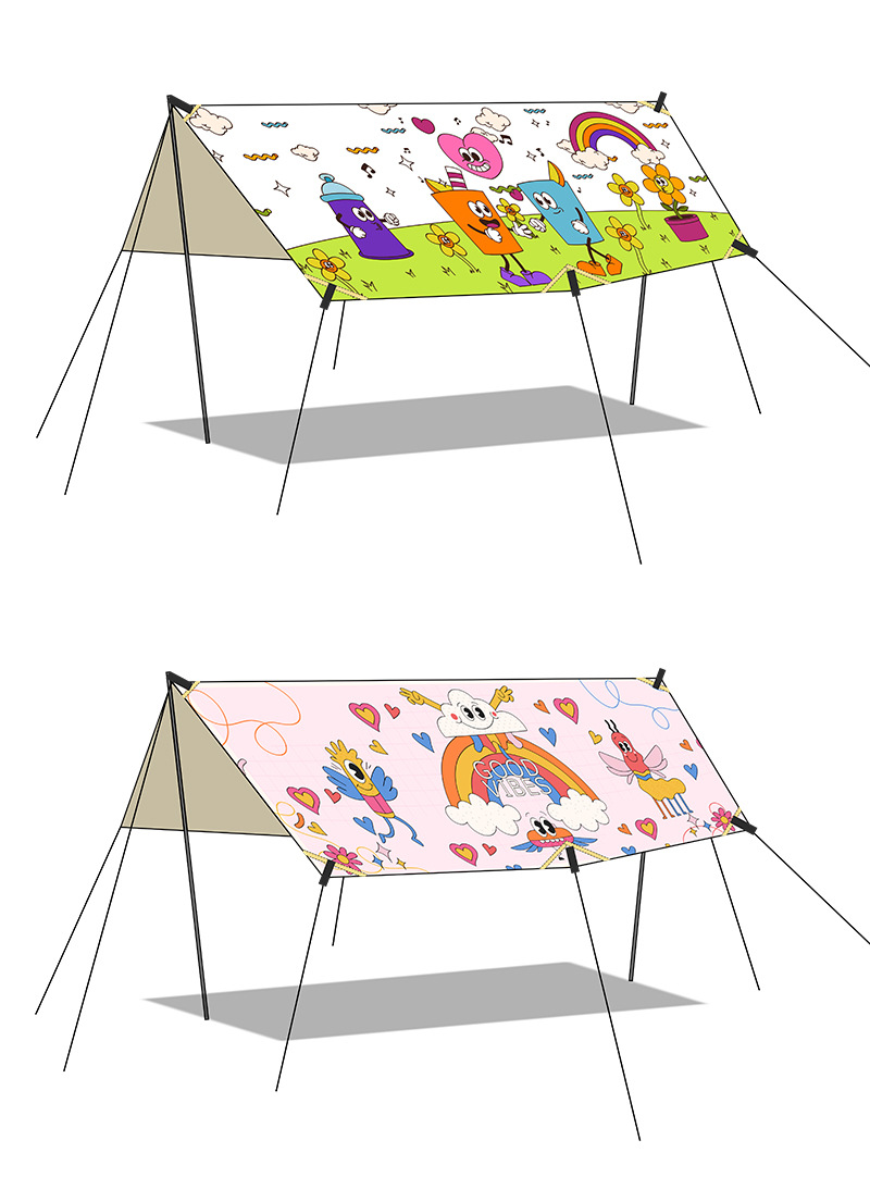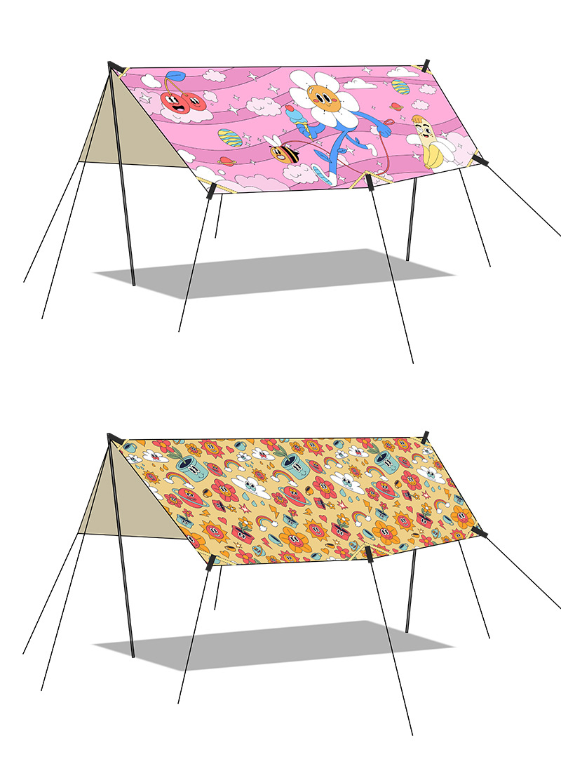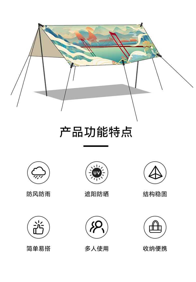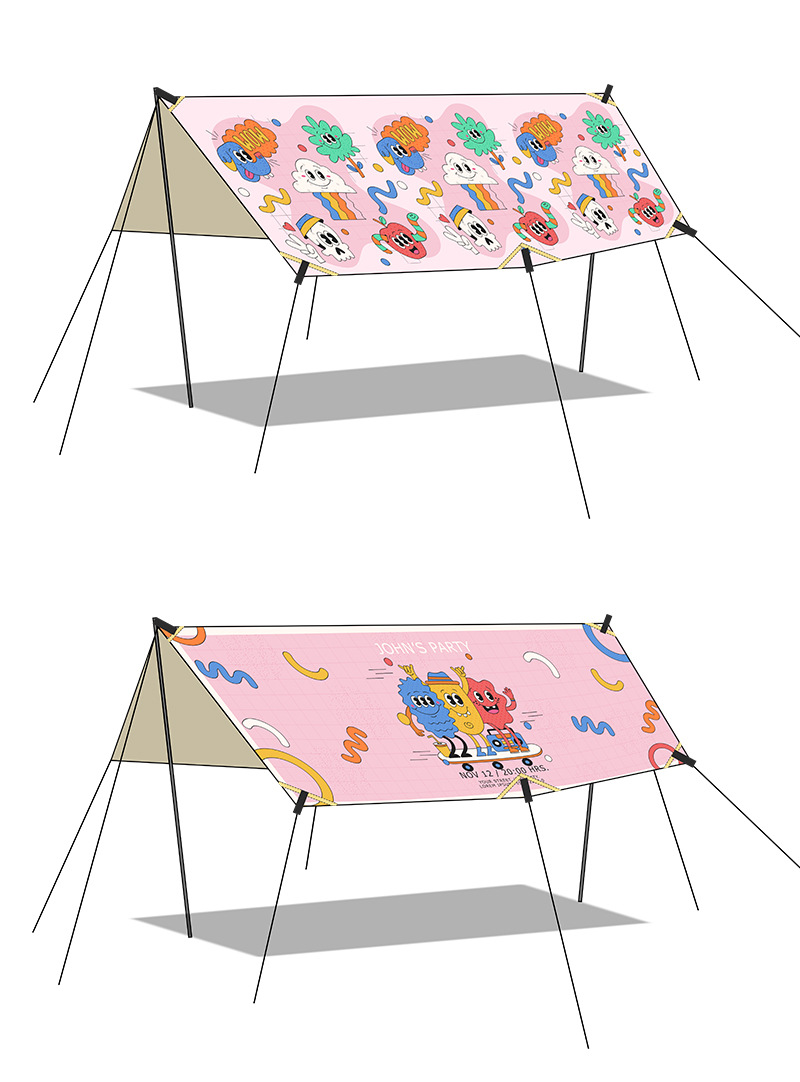 Outdoor camping equipment black rubber sunscreen windproof awning camping rainproof cloth picnic sunscreen printing logo
