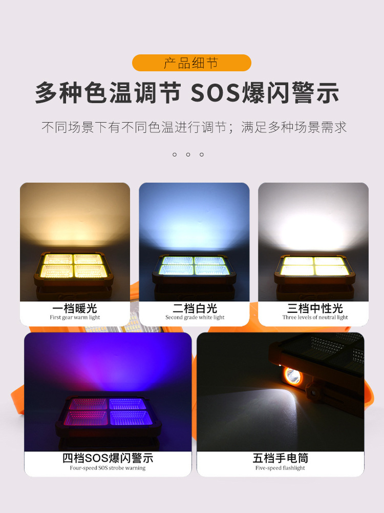 Outdoor camping light solar portable light rechargeable flood light portable super bright household mobile emergency light