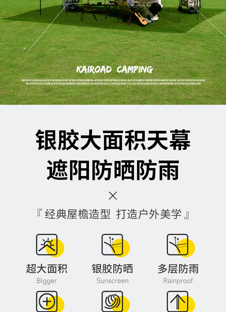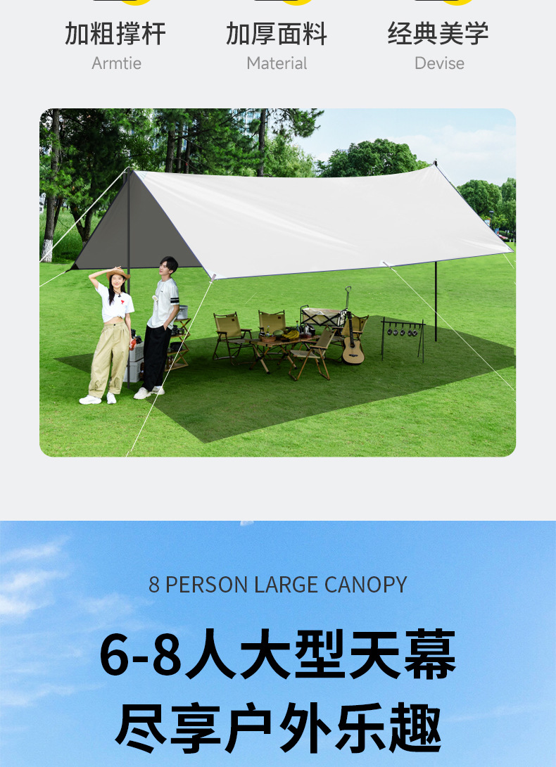 Outdoor camping table and chair five piece canopy tent portable rectangular camping sun protection rain proof vinyl awning