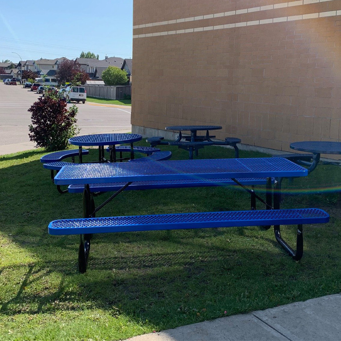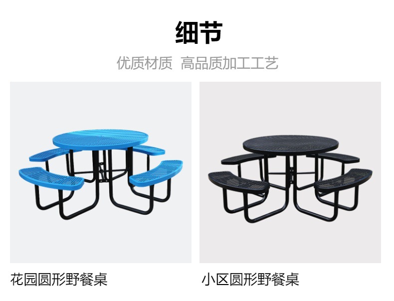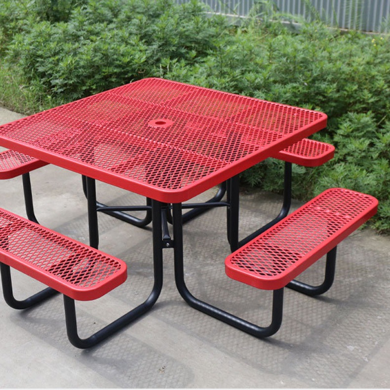 Outdoor commercial hot dip plastic steel picnic table garden community school restaurant outdoor outdoor metal leisure tables and chairs