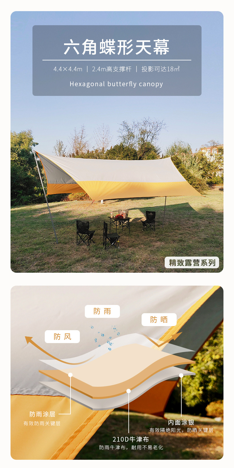Outdoor hexagonal butterfly shaped canopy tent camping rain proof sun proof sunshade canopy outdoor camping large silver coated canopy
