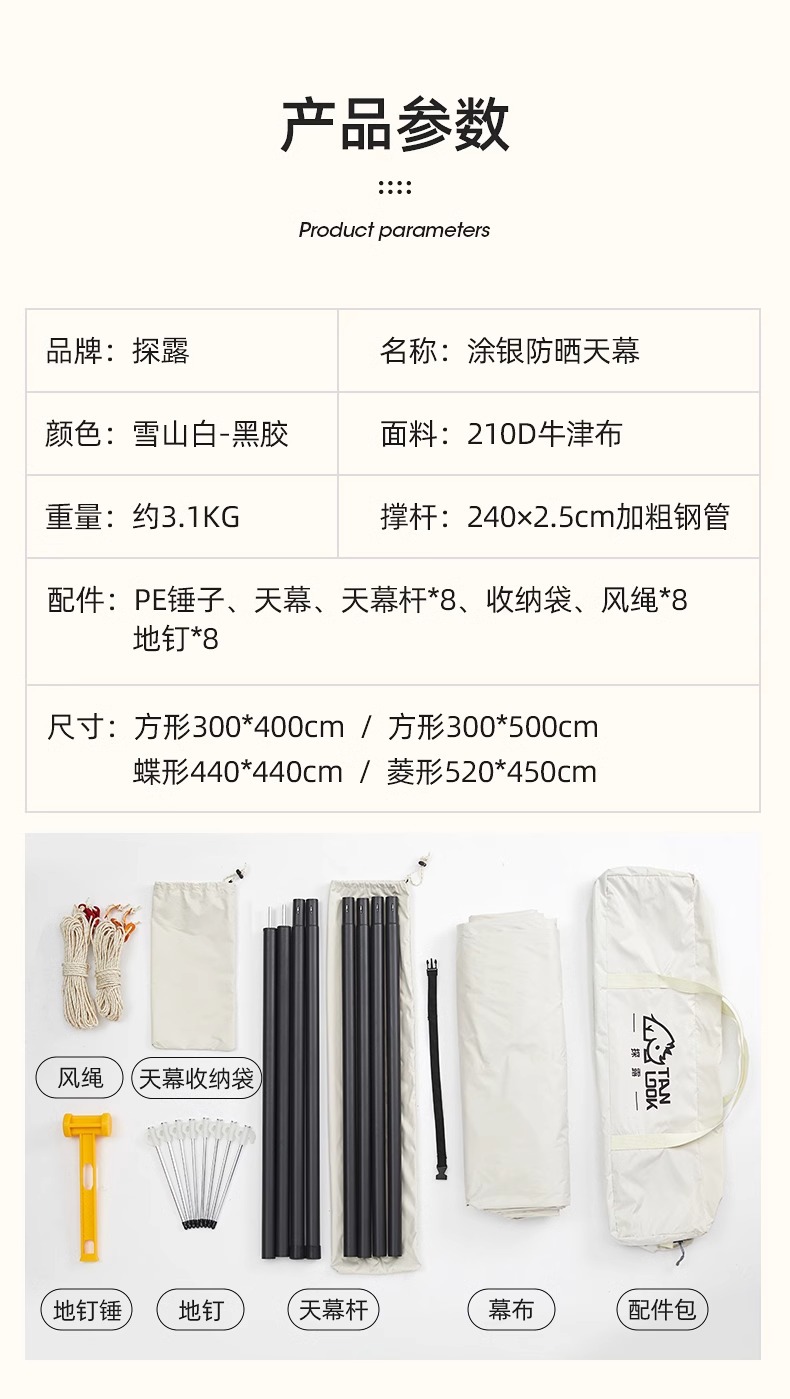 Outdoor vinyl canopy tent spring and summer large camping equipment full set of camping portable sun protection awning