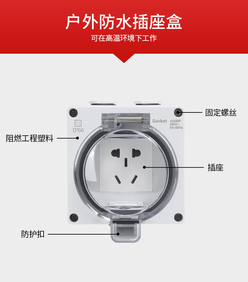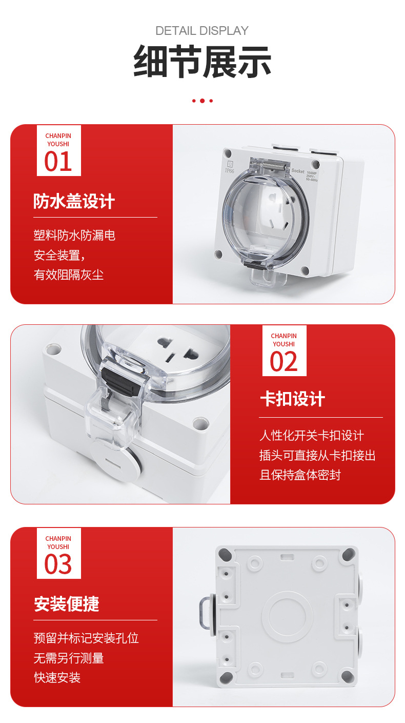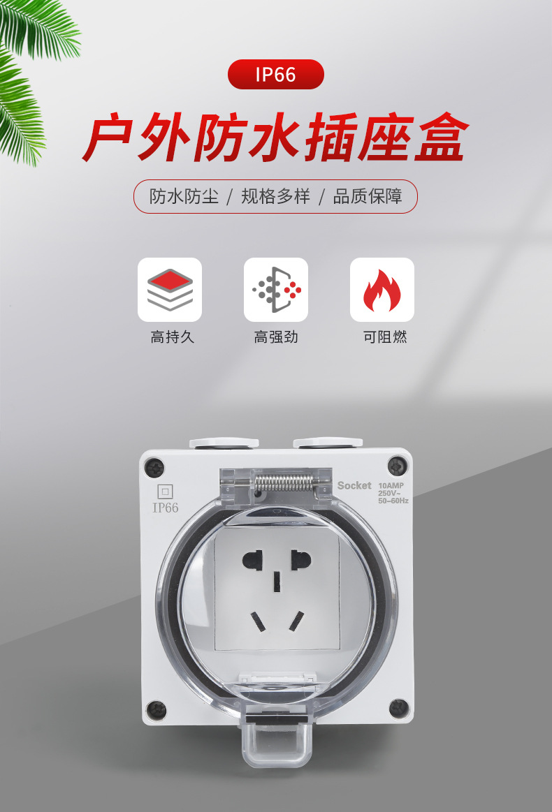 Outdoor waterproof socket ip66manufacturers supply rain proof dustproof five hole socket charging pile splash proof power switch