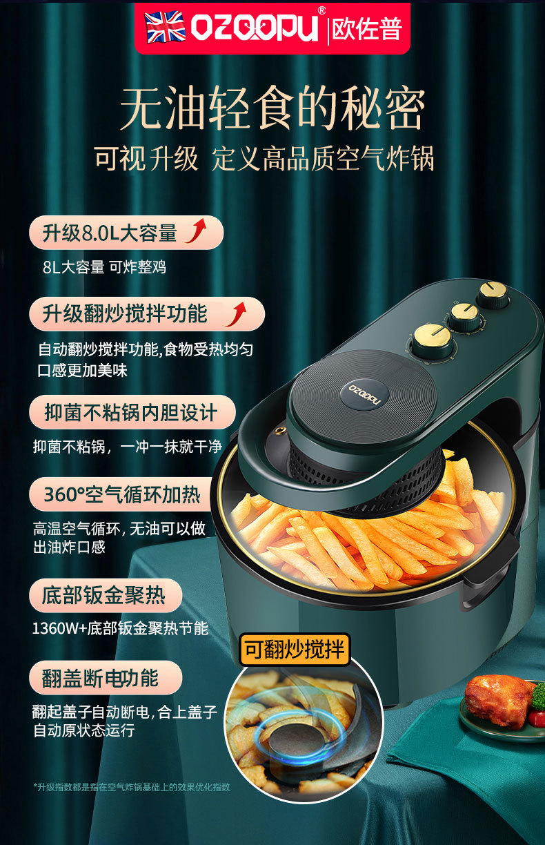 Ozop visual air fryer household large capacity automatic intelligent multi-function electric fryer potato chips machine wholesale