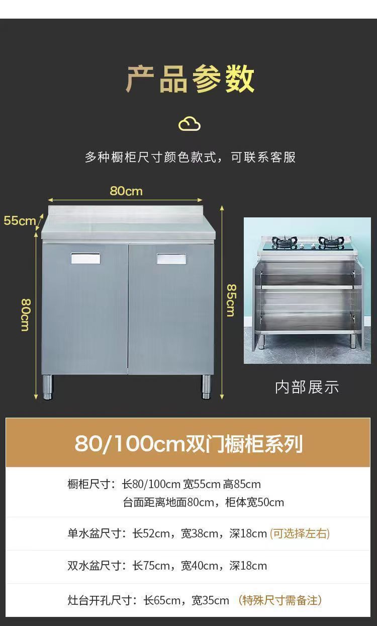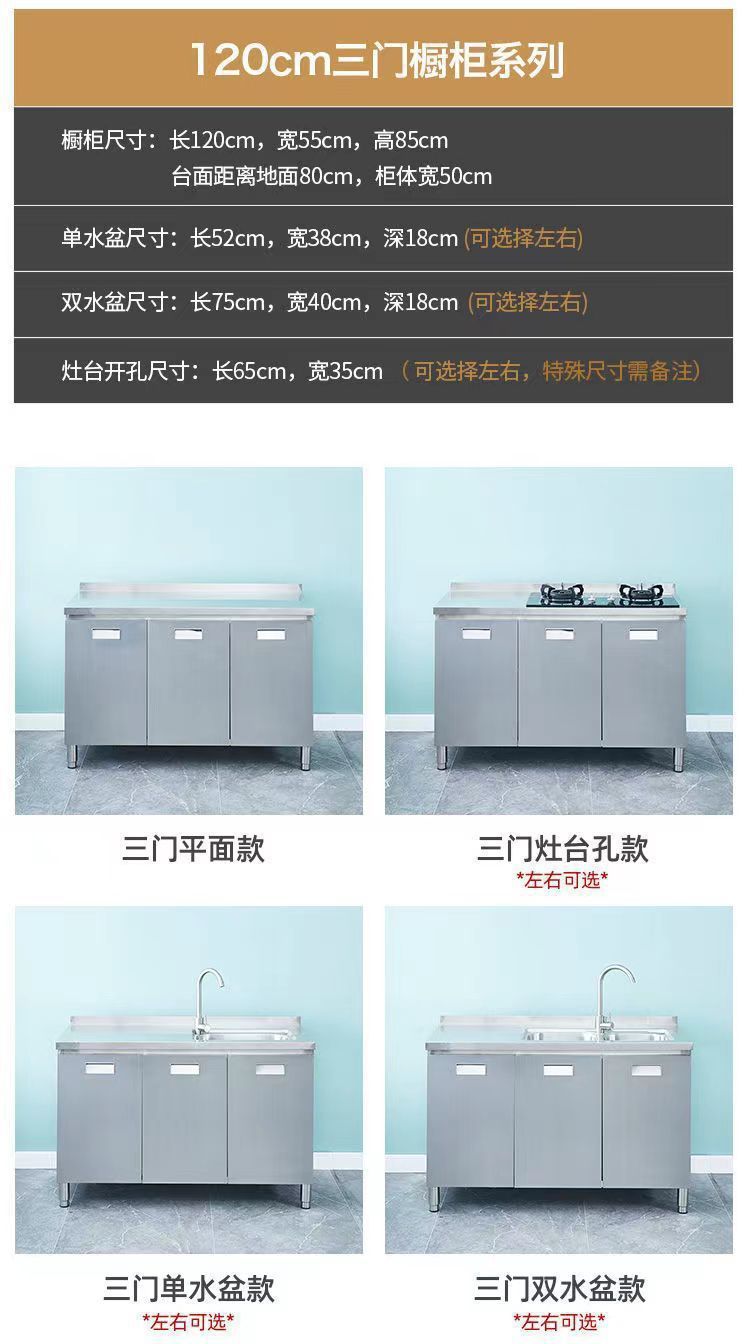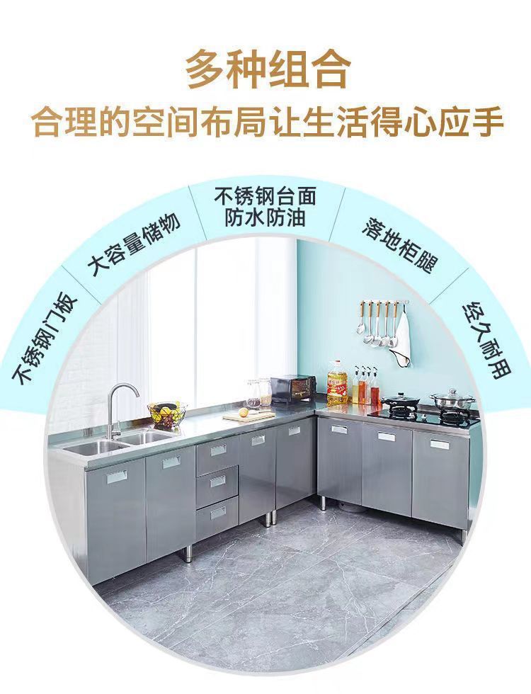 PCGS304 Stainless Steel Cabinet Kitchen Cupboard Stove Cabinet Sink Cabinet Integrated Cabinet Thickened Simple Integrated Kitchen