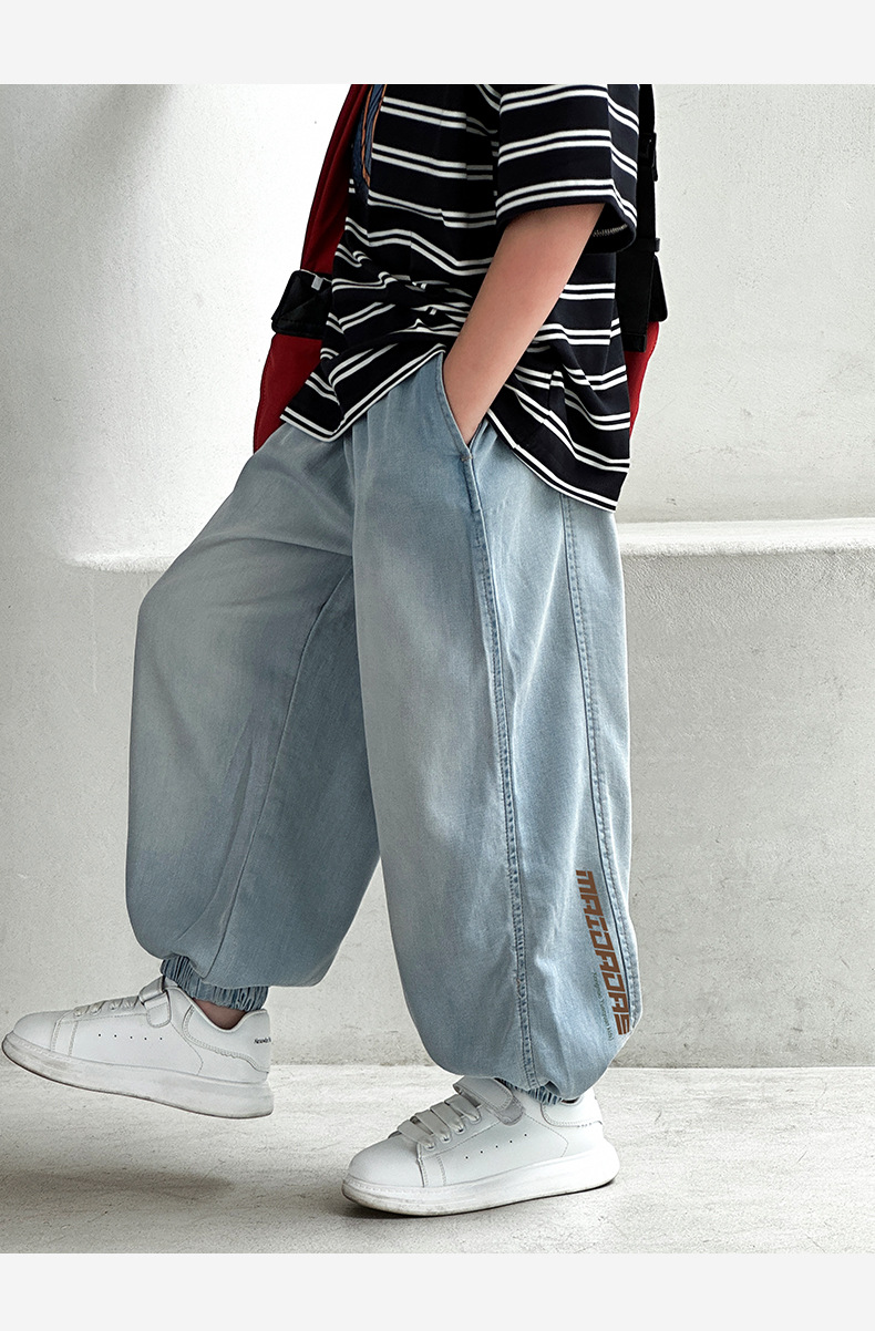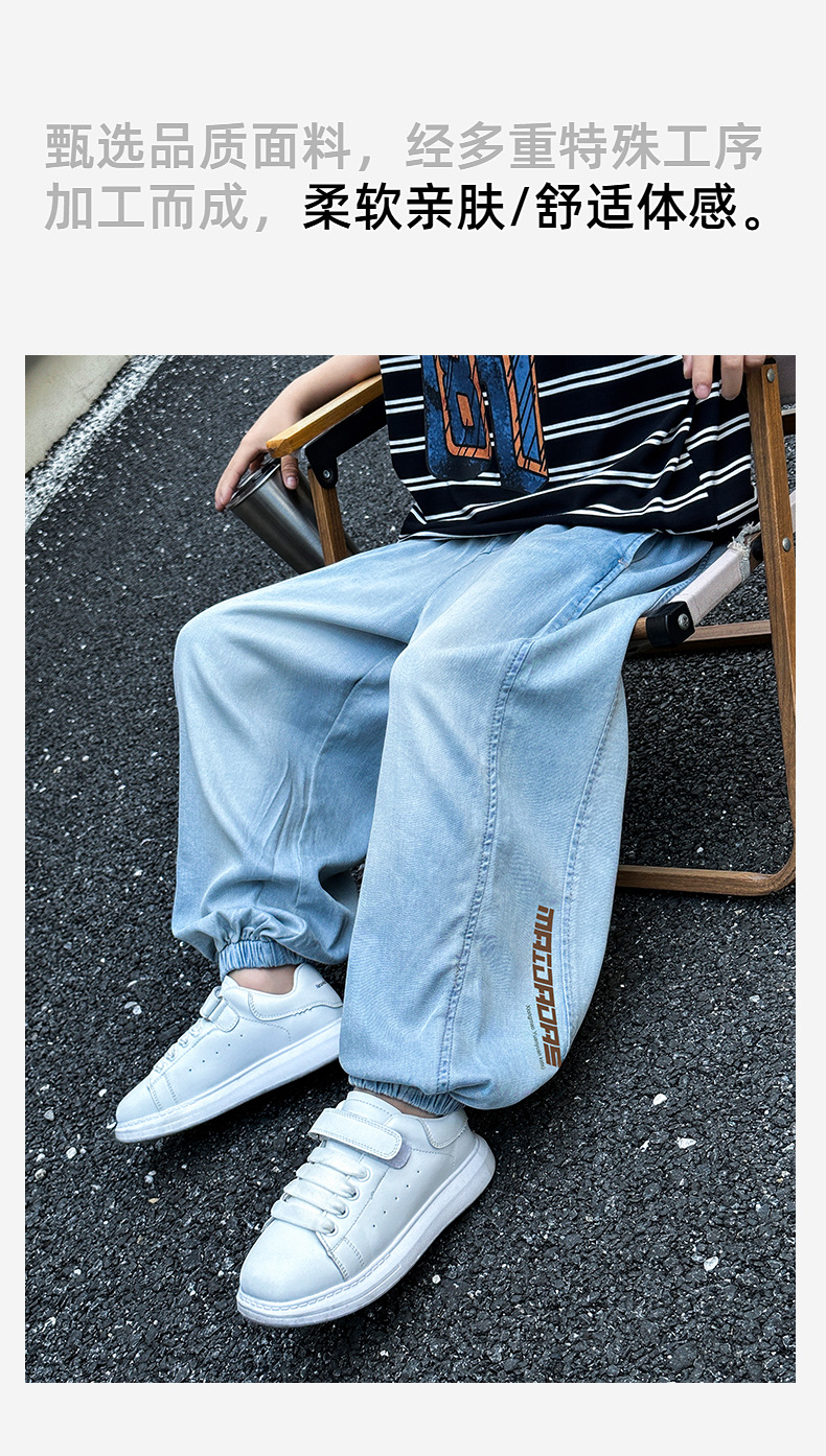 Panda Yuanyuan Thin Boys Tencel Jeans 2024 New Children s Pants Men s Summer Anti mosquito Pants for Hair