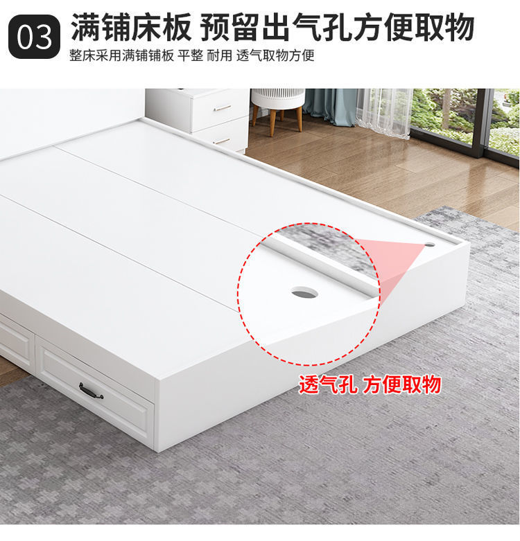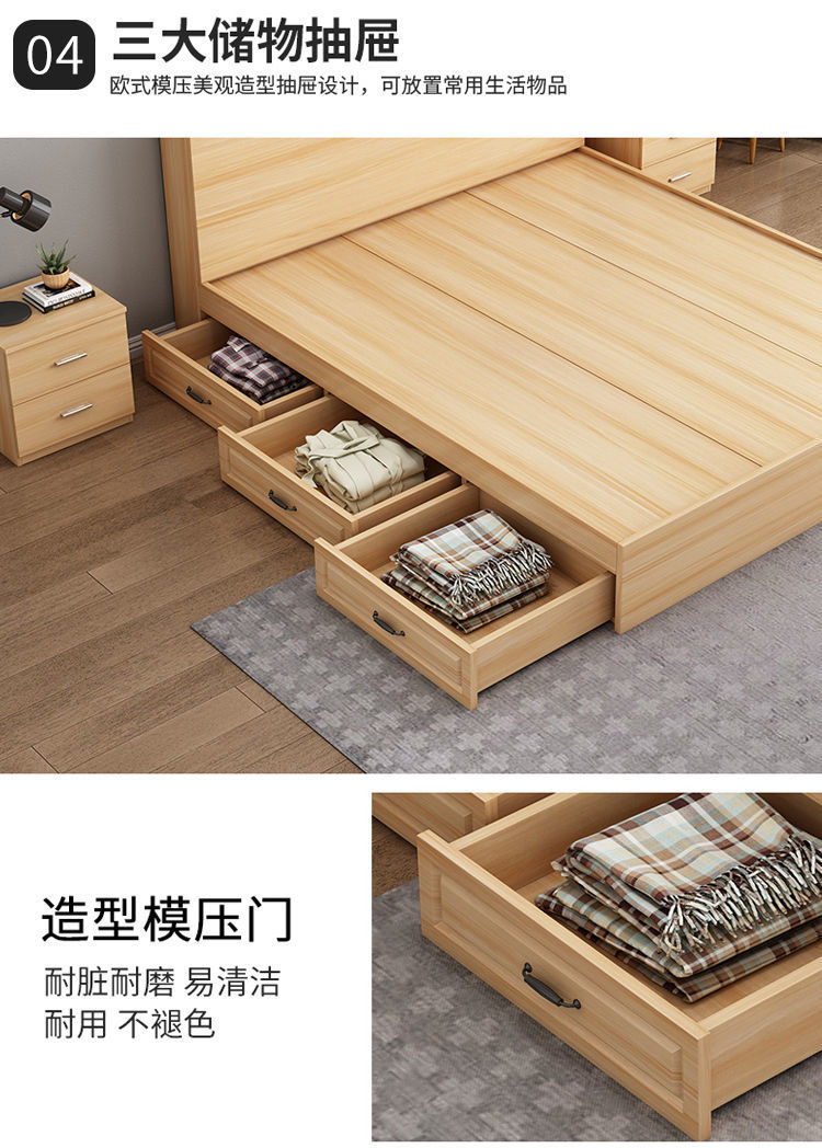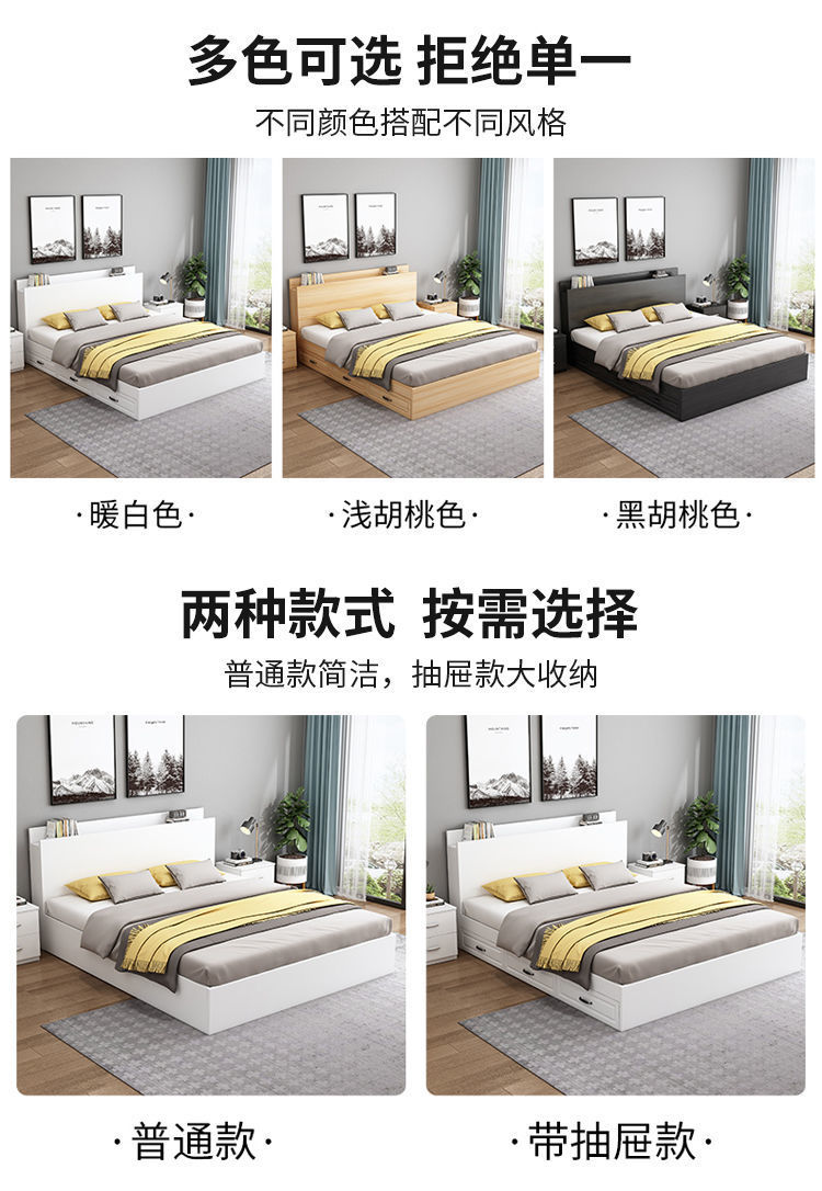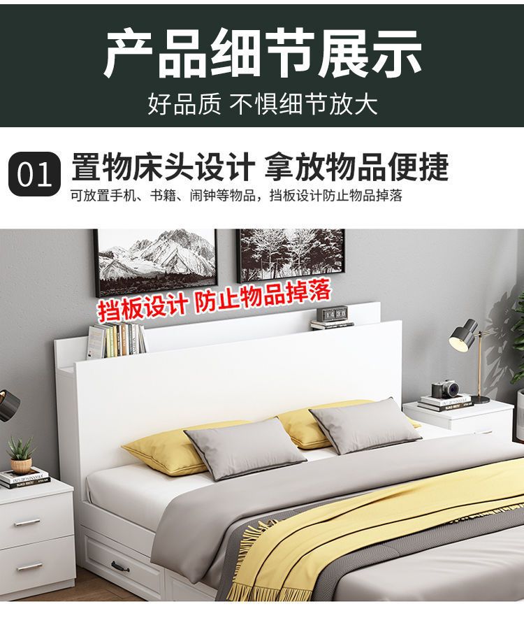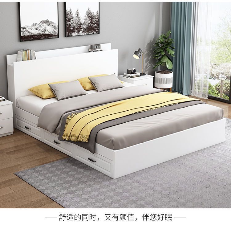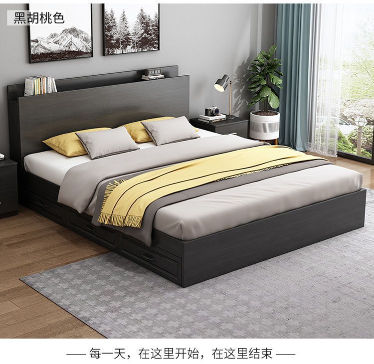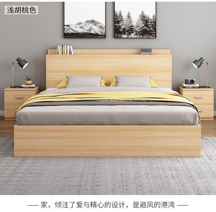 Panel Double Bed Adult Master Bedroom 1.8 Single Bed Solid Wood Tatami Rental Room Economical High Box Storage Bed