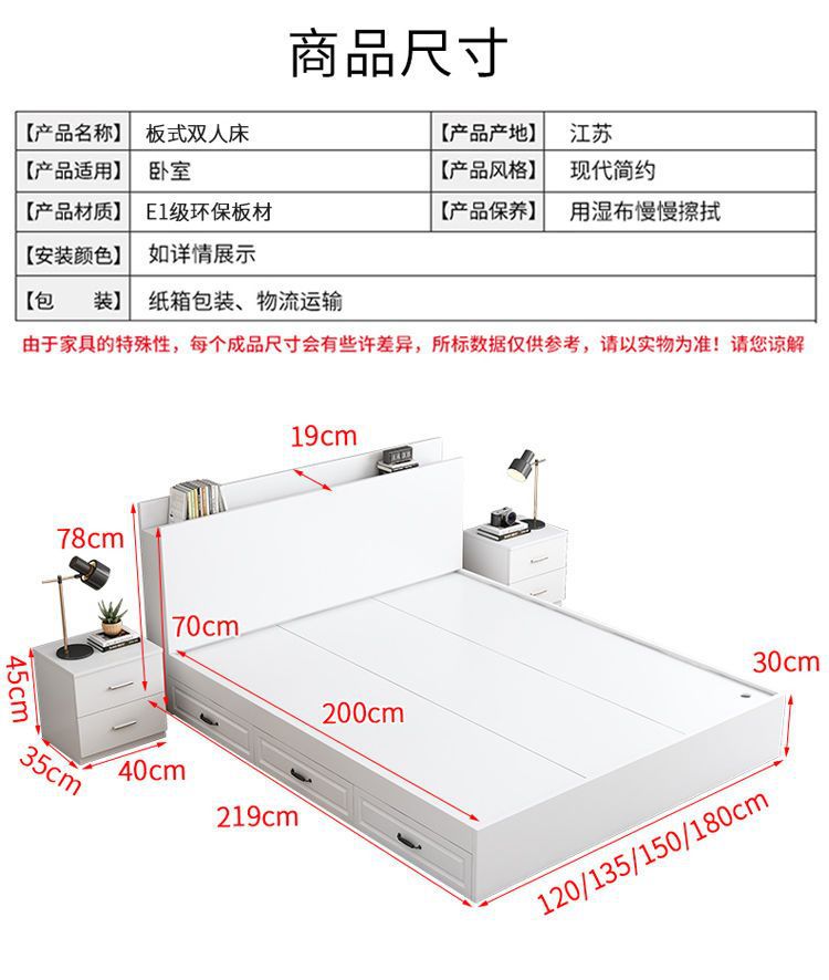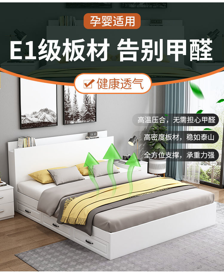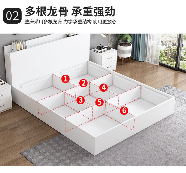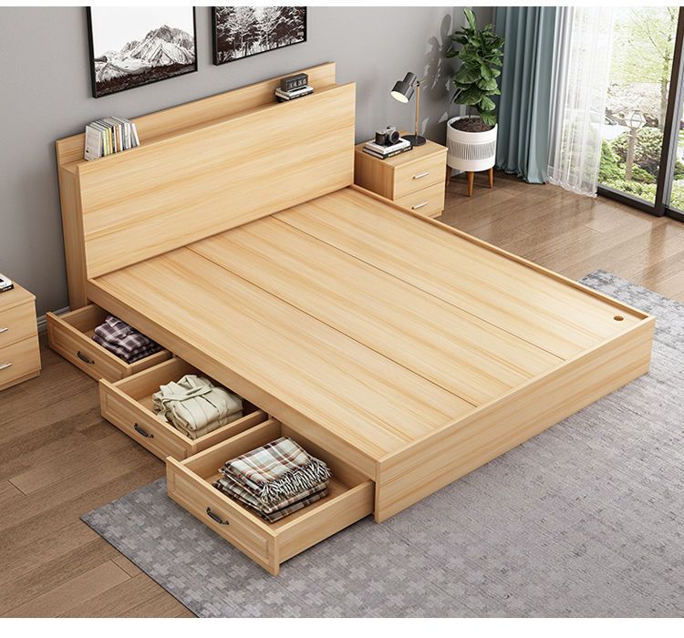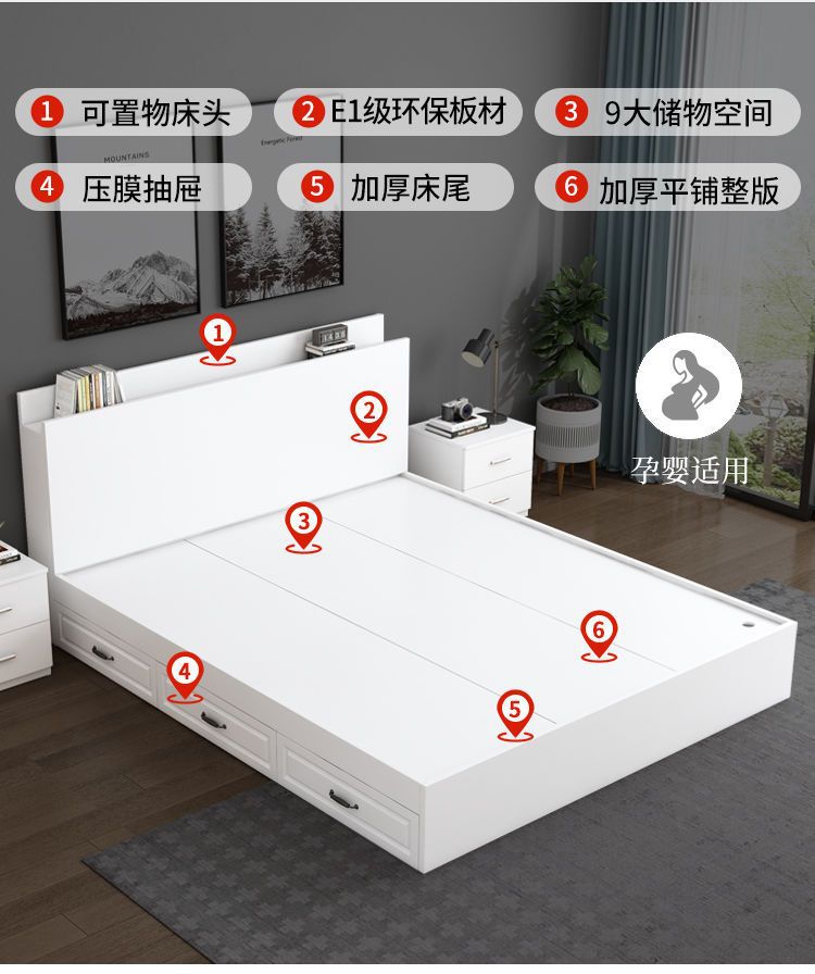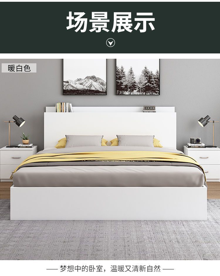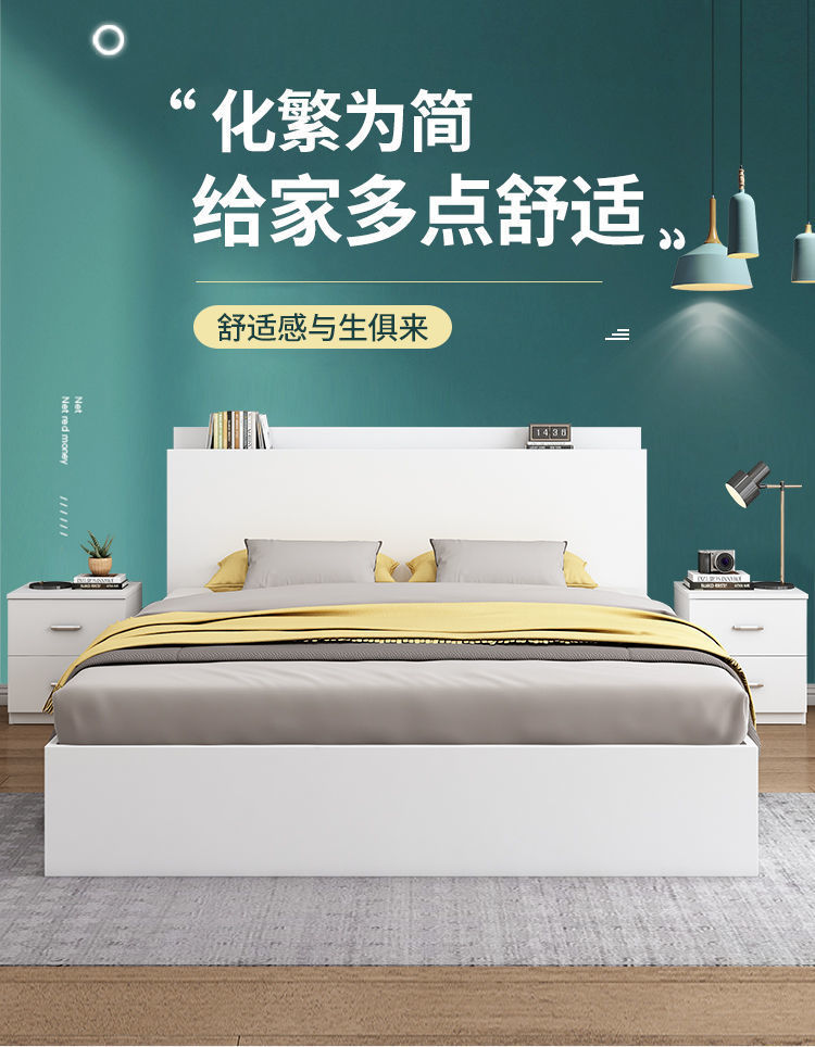 Panel Double Bed Adult Master Bedroom 1.8 Single Bed Solid Wood Tatami Rental Room Economical High Box Storage Bed