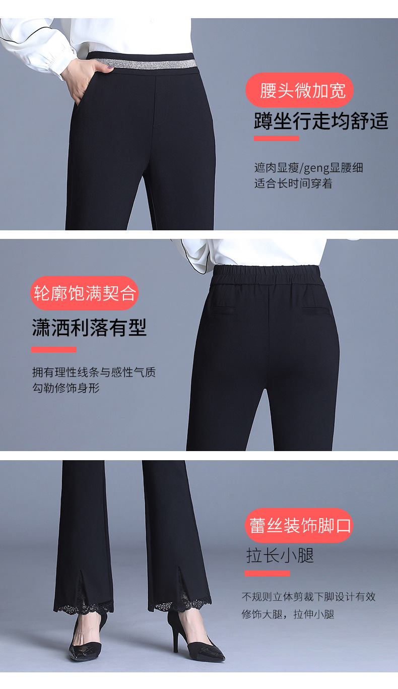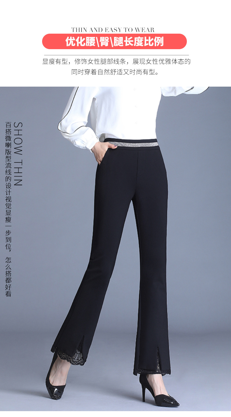 Pants Women s flared pants Spring and Autumn New High waist lace slimming casual pants plus size stretch mom pants trousers