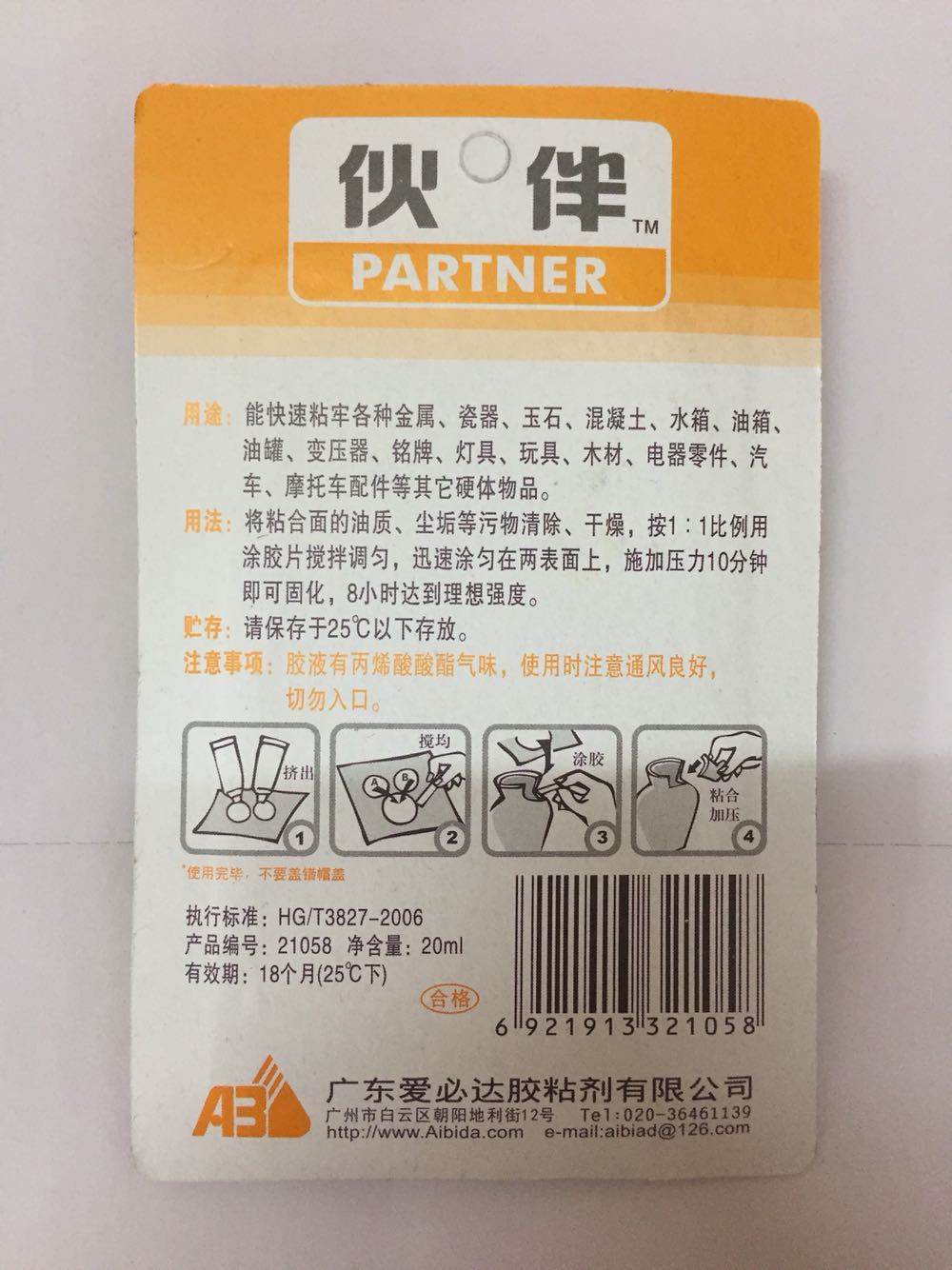 Partner AB glue firm fast bonding plastic wood metal glass stone ceramic electrical appliances multi functional glue wholesale