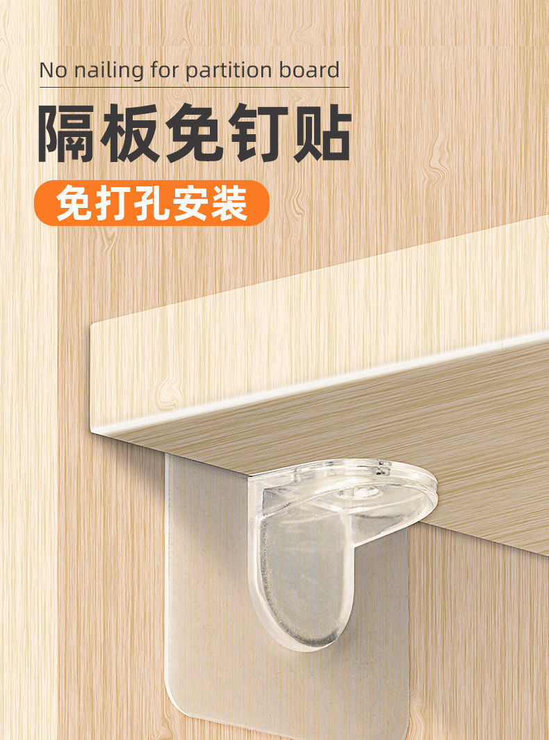 Paste seamless layer mop punch free partition holder fixed bracket nail cabinet shelf mop bracket nail partition fixed accessories