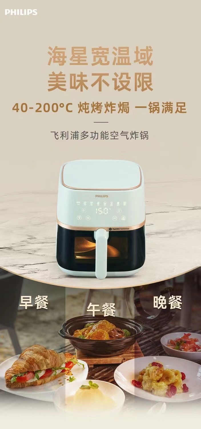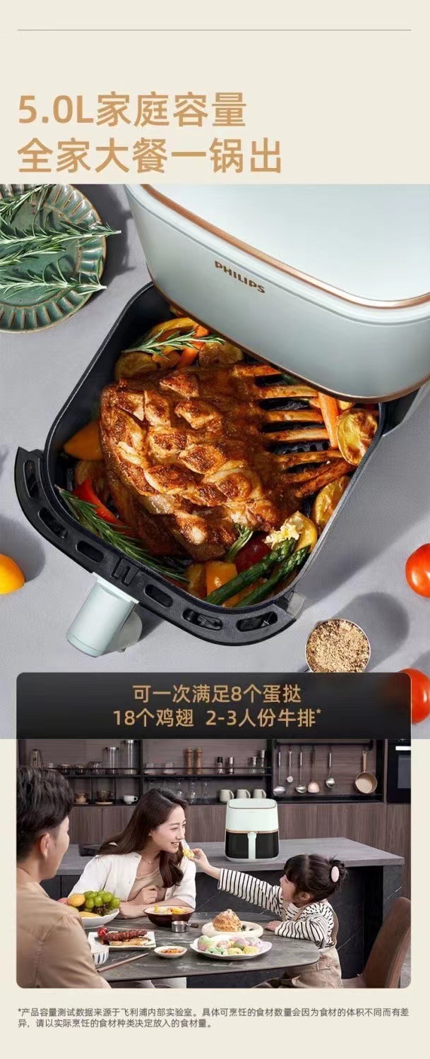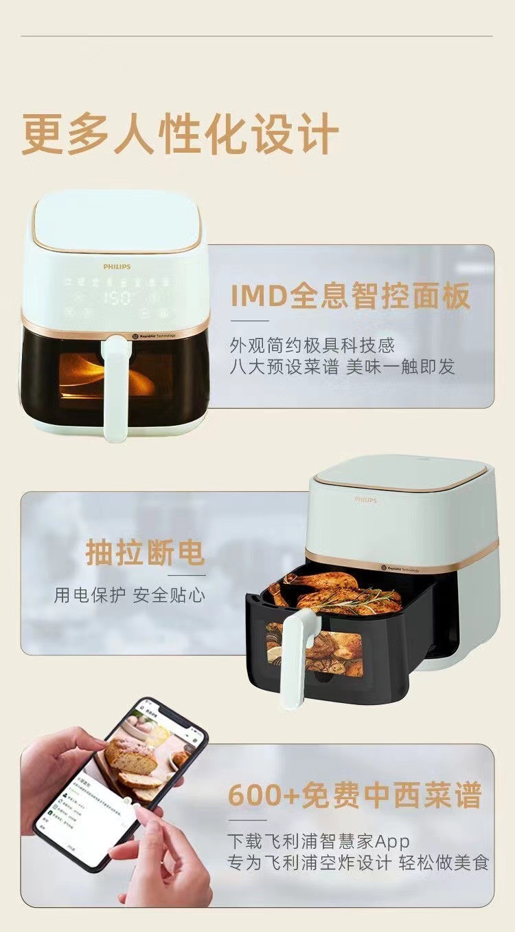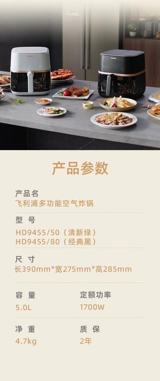 Philips Air Fryer household 5L large capacity visual Intelligent LCD touch multi-function electric fryer HD9455