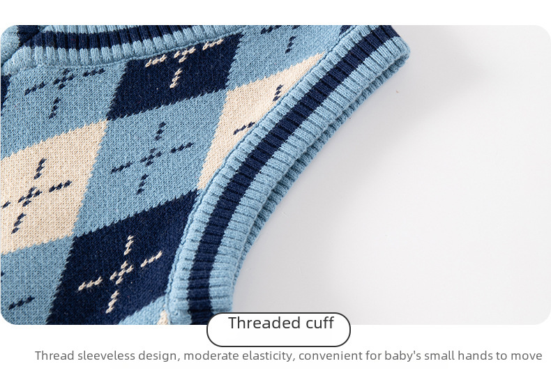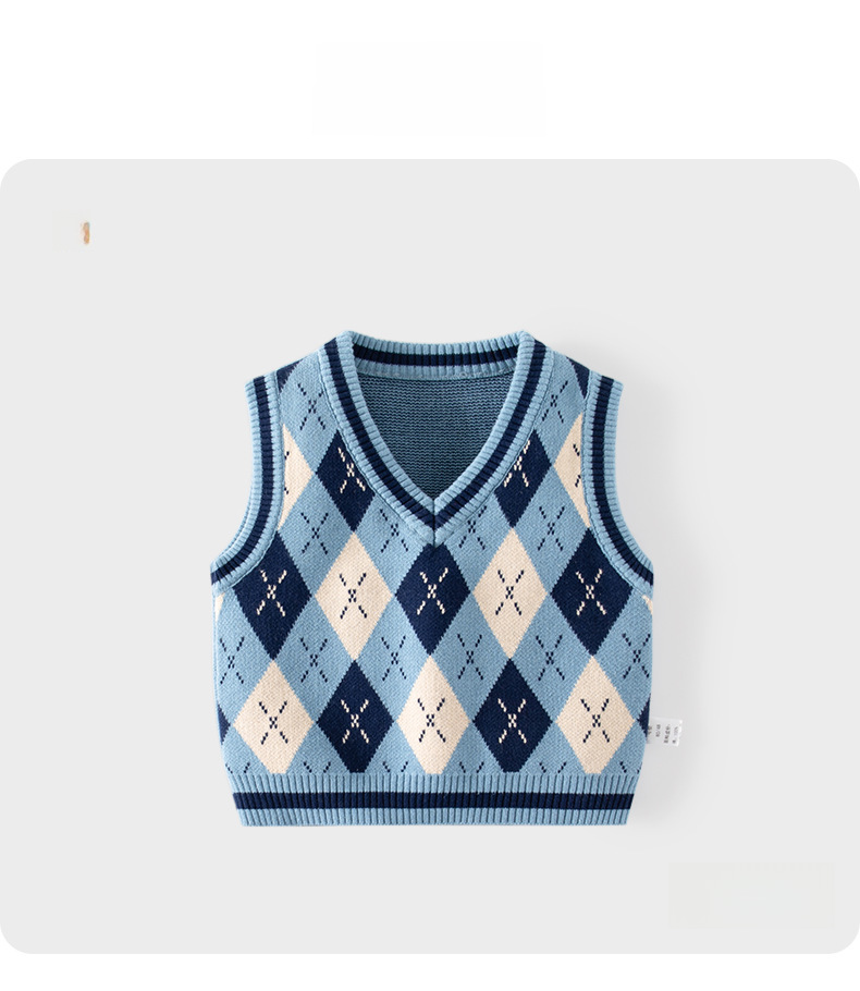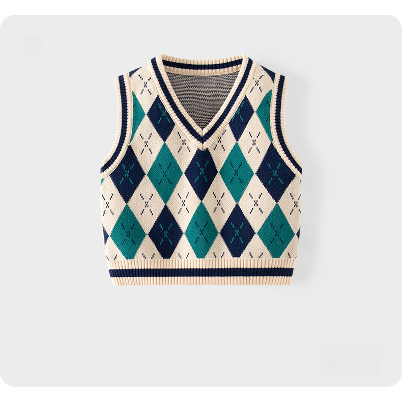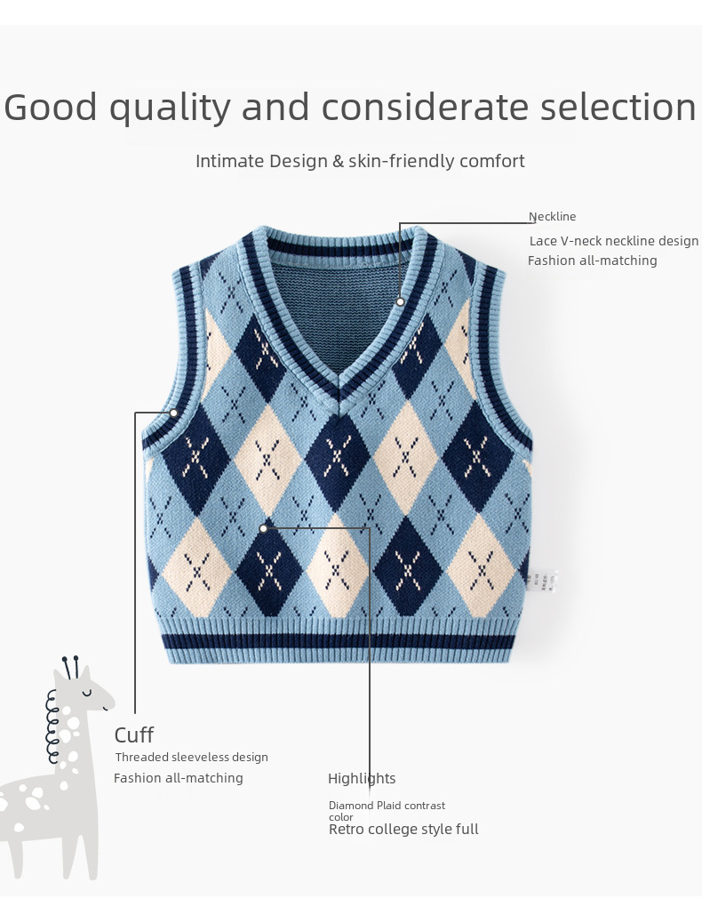 Plaid baby vest pure cotton class A baby vest spring and autumn outer wear British style boys vest sweater