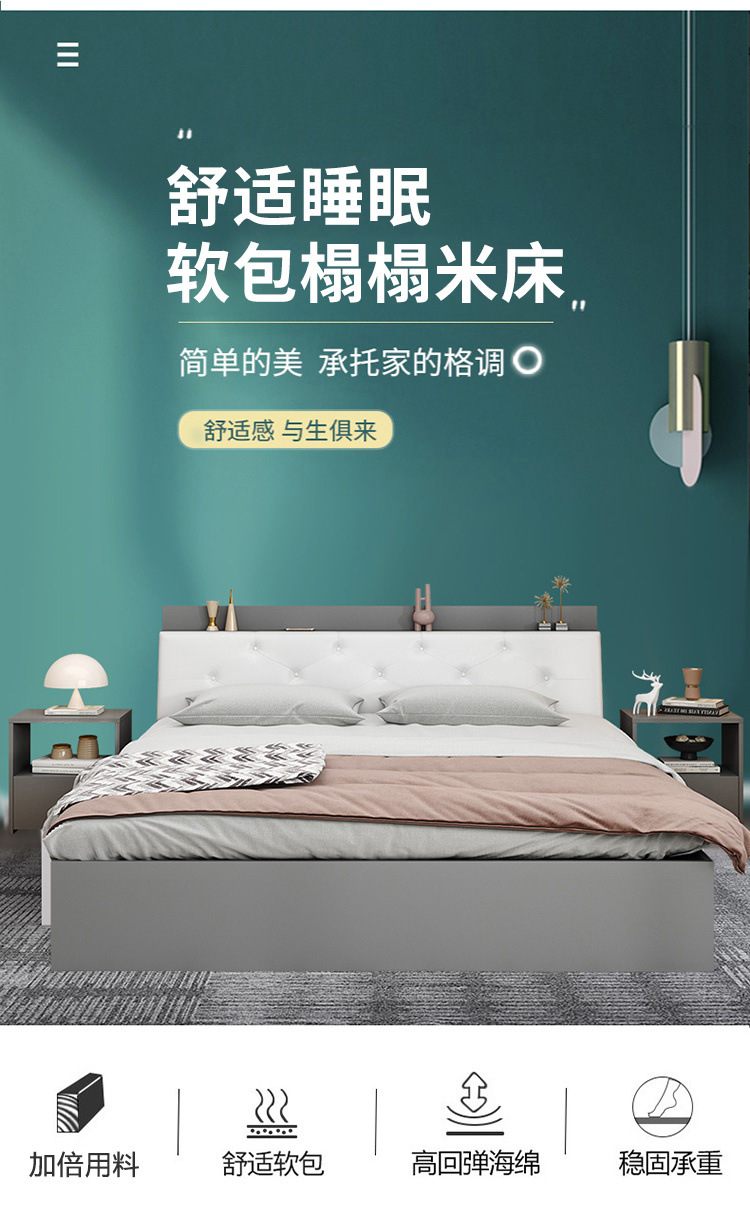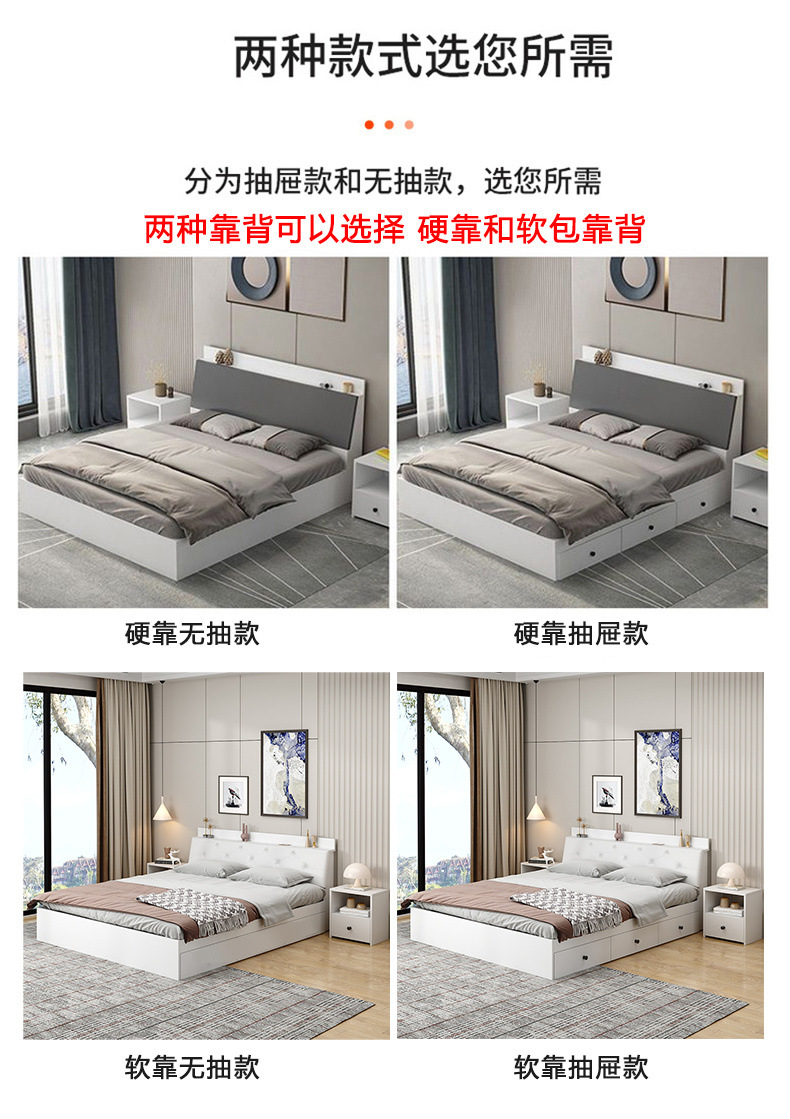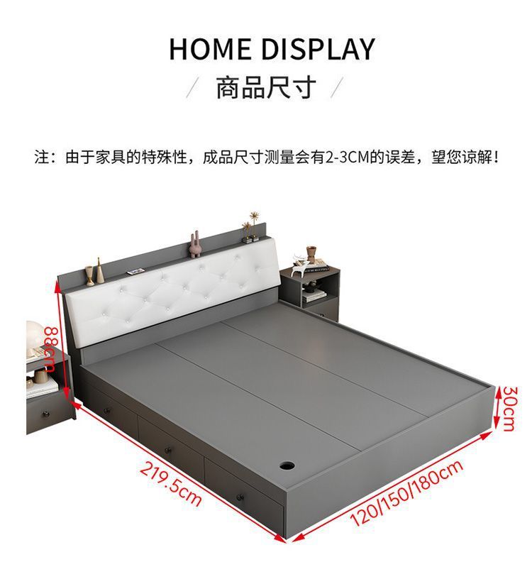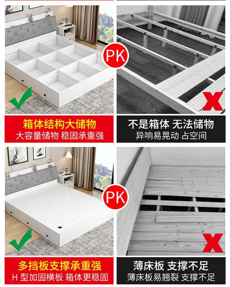 Plate Bed Double Bed Tatami Master Bedroom 1.8 m High Box Storage Bed Storage Bed Rental Room 1.2 m Single Bed