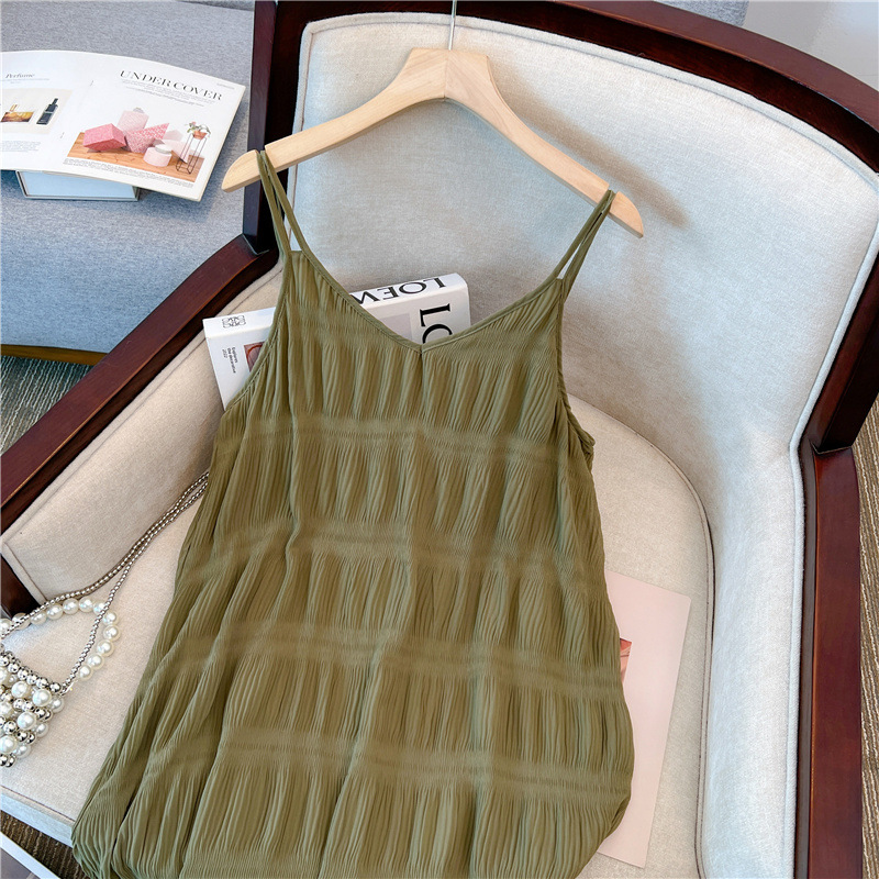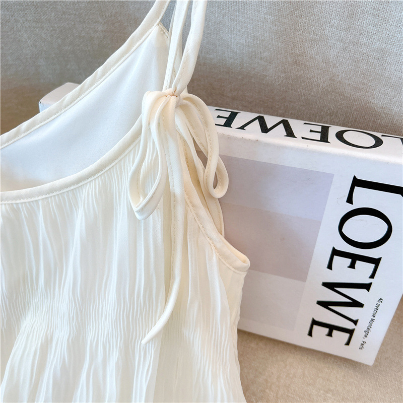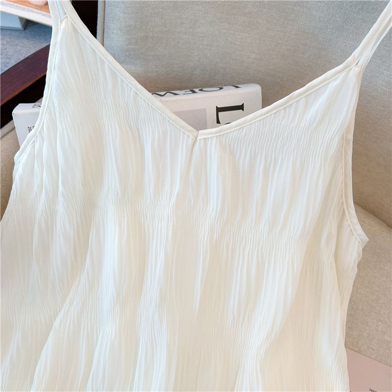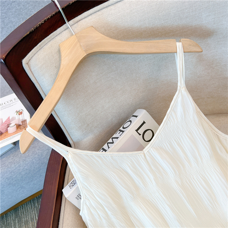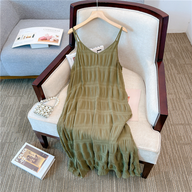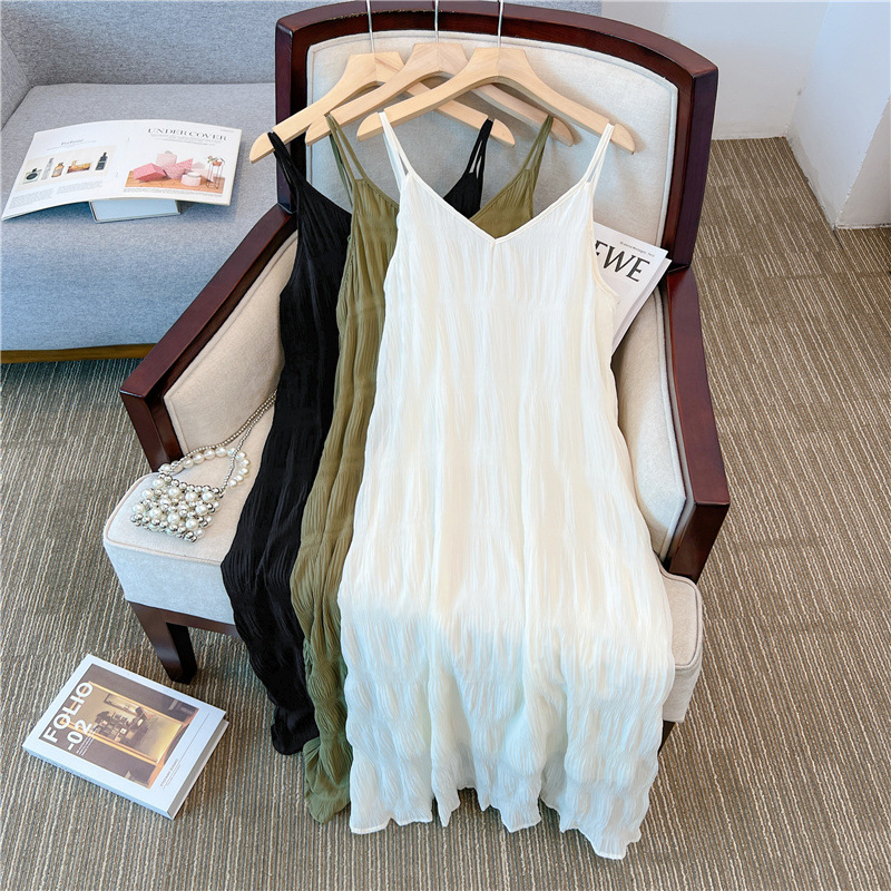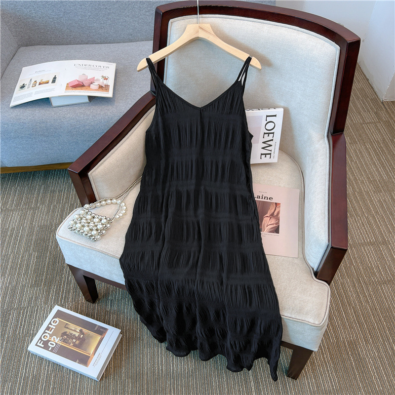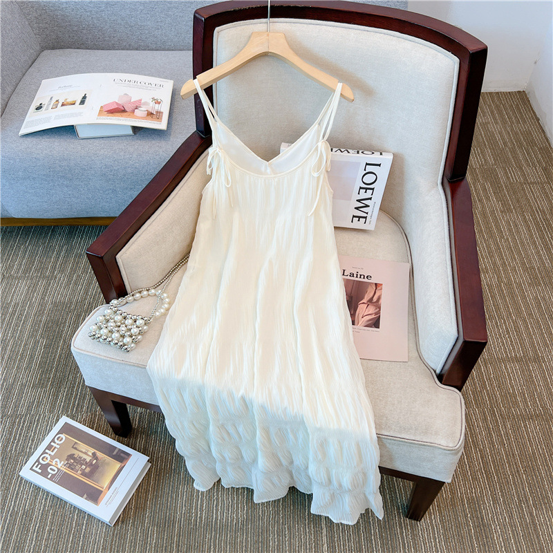 Plus size 2024 Summer new belly covering slimming elegant dress for women chubby girl white V neck sling dress fashion