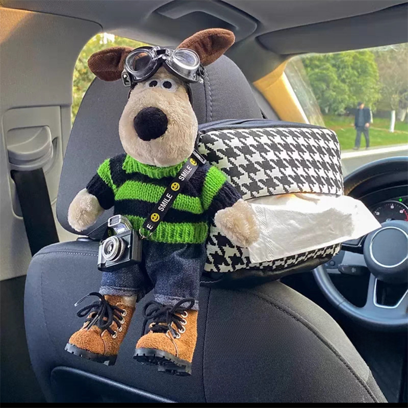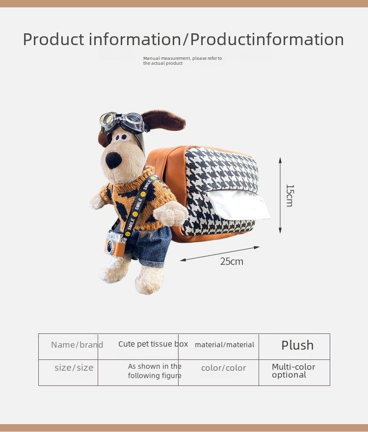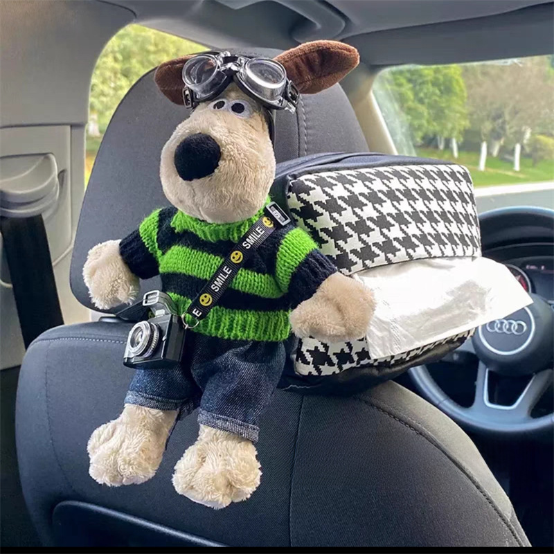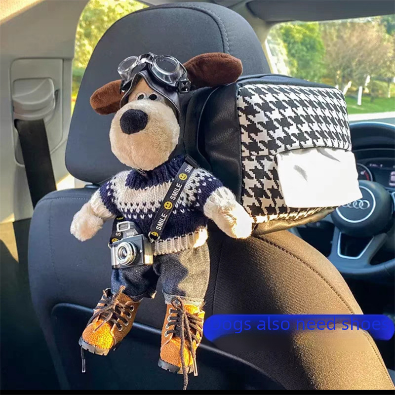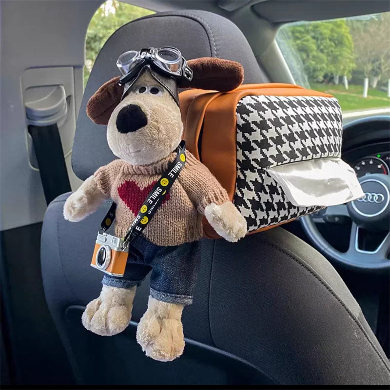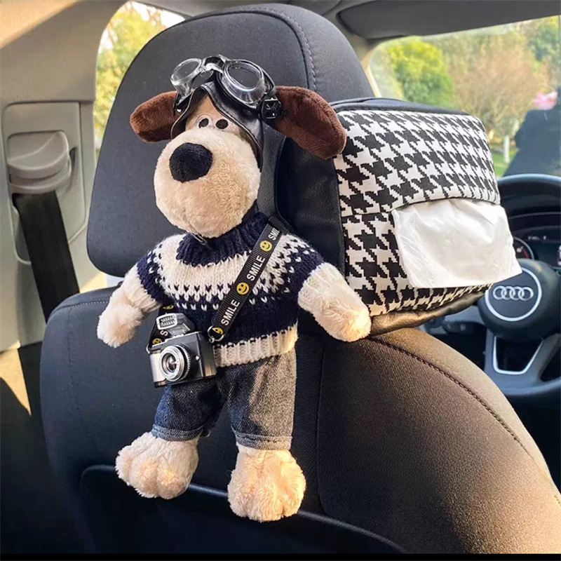 Plush Doll Pilot Dog Car Car Seat Multifunctional Houndstooth Tissue Bag Car Tissue Box