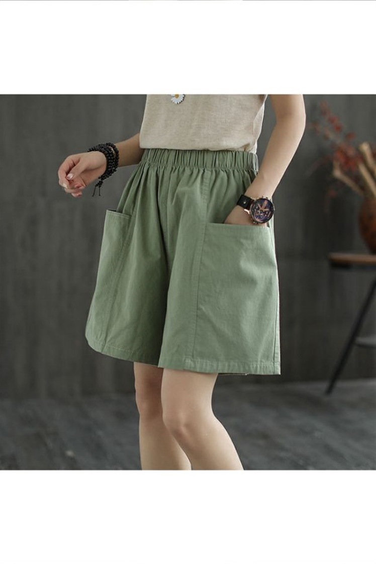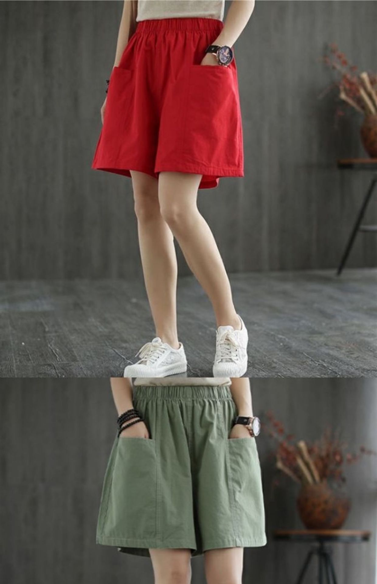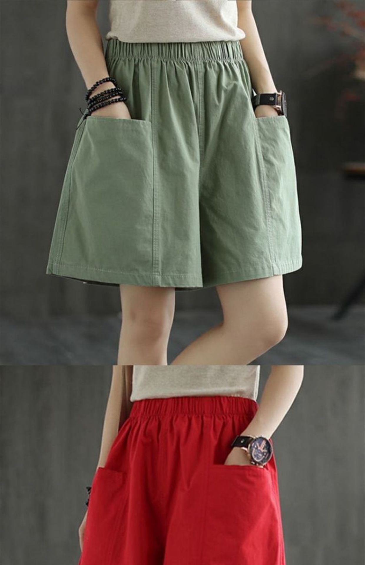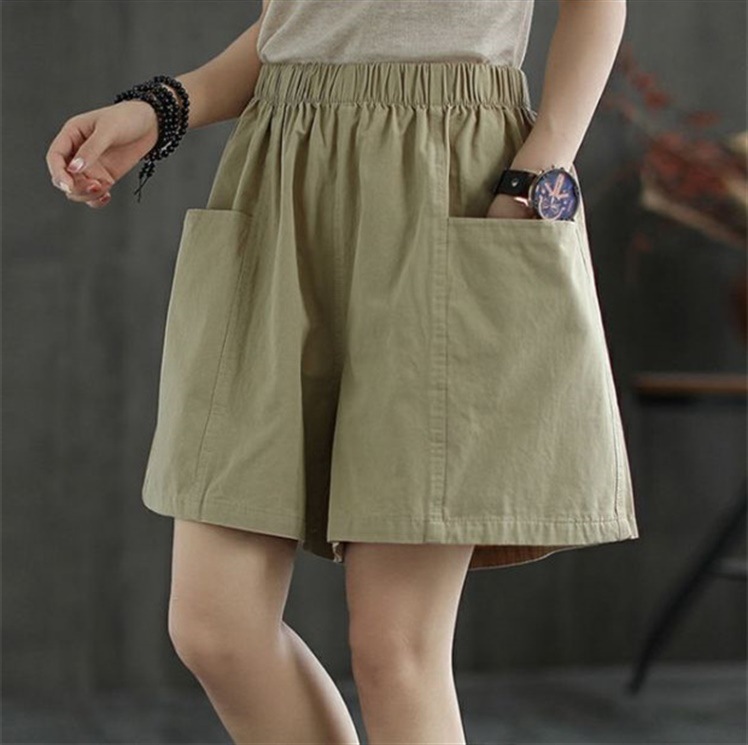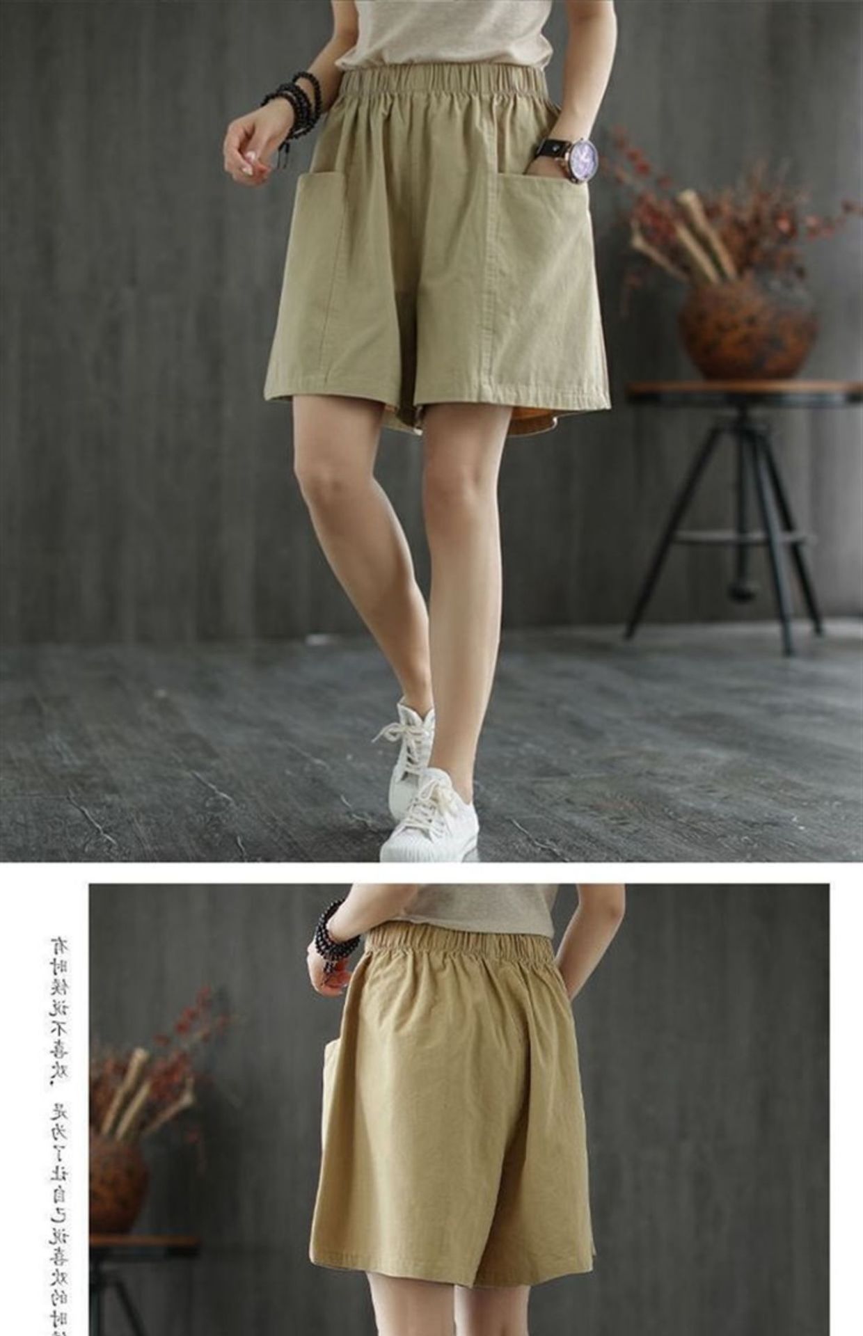 Pocket Shorts Women s Summer Straight Casual Wide Leg Pants Cotton Loose Overalls Large Size Pants with Elasticized Waist Outer Wear Pants