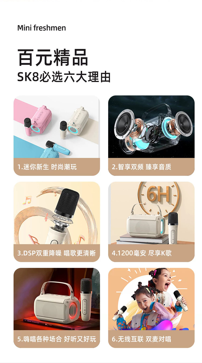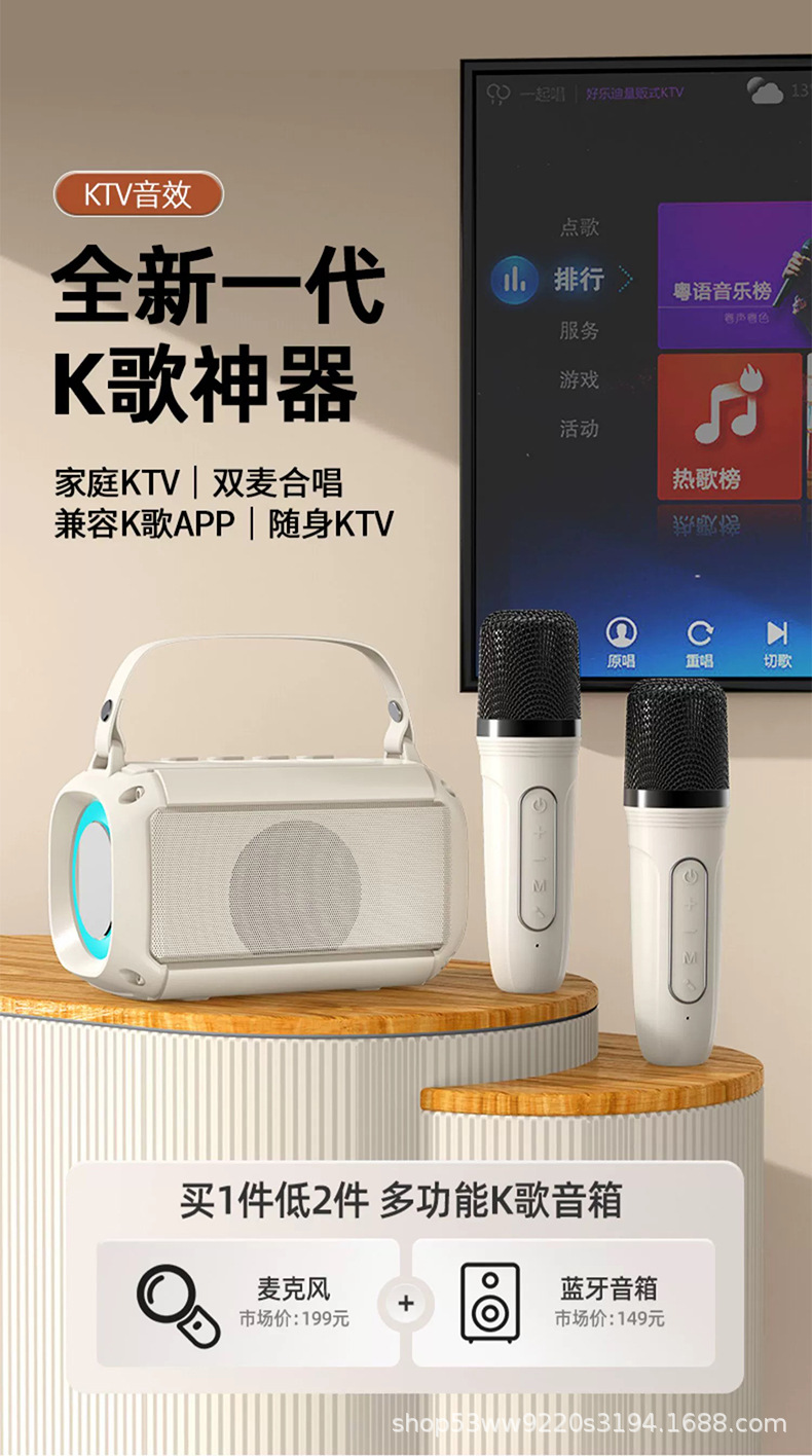 Popular wireless Bluetooth speaker microphone audio microphone integrated home ktv universal karaoke children s small family