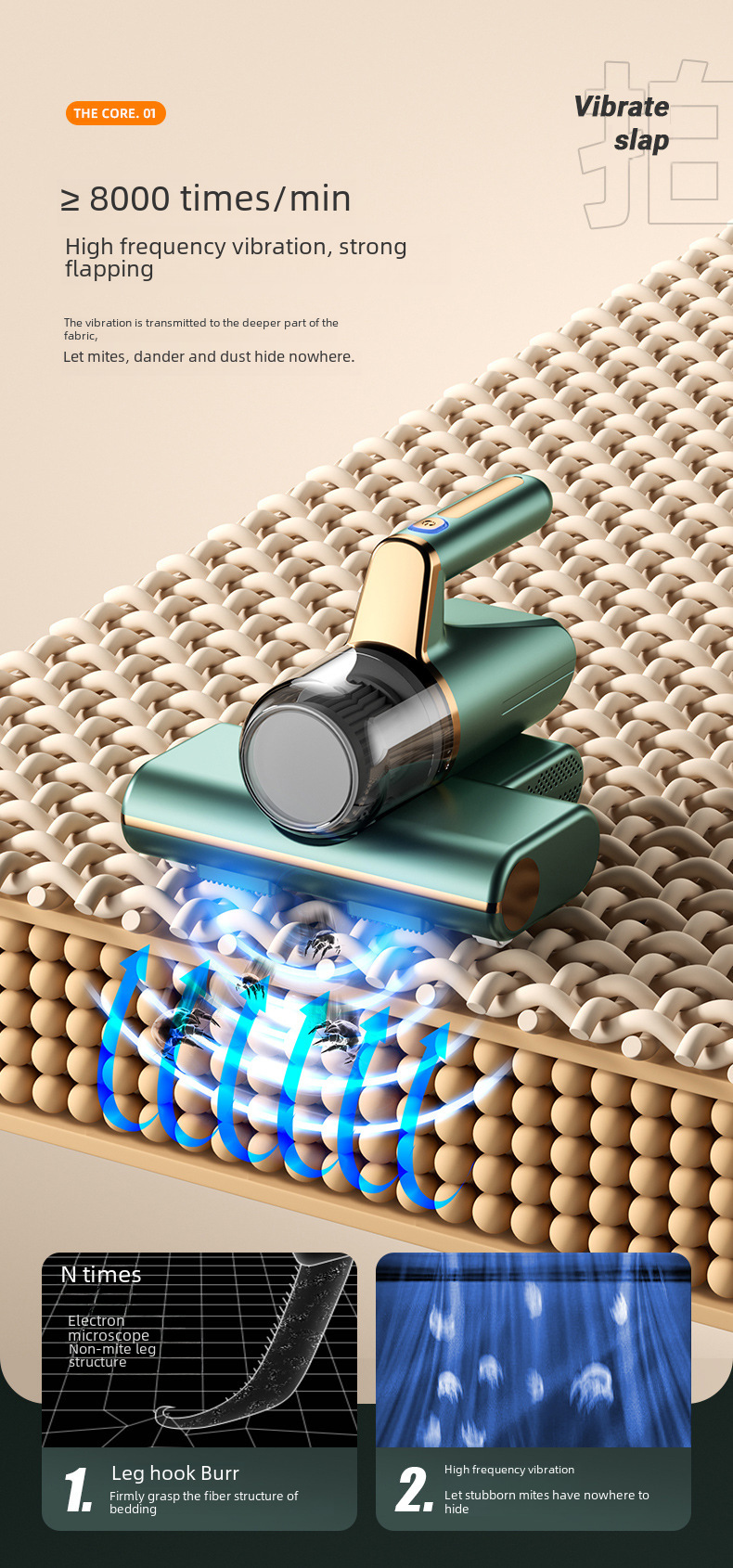 Portable handheld electric wireless mite remover vacuum cleaner rechargeable multifunctional household purple light sterilization mite remover