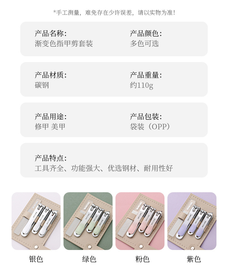 Portable nail clippers suit stainless steel high quality nail clippers full set of professional nail file kit gradient color