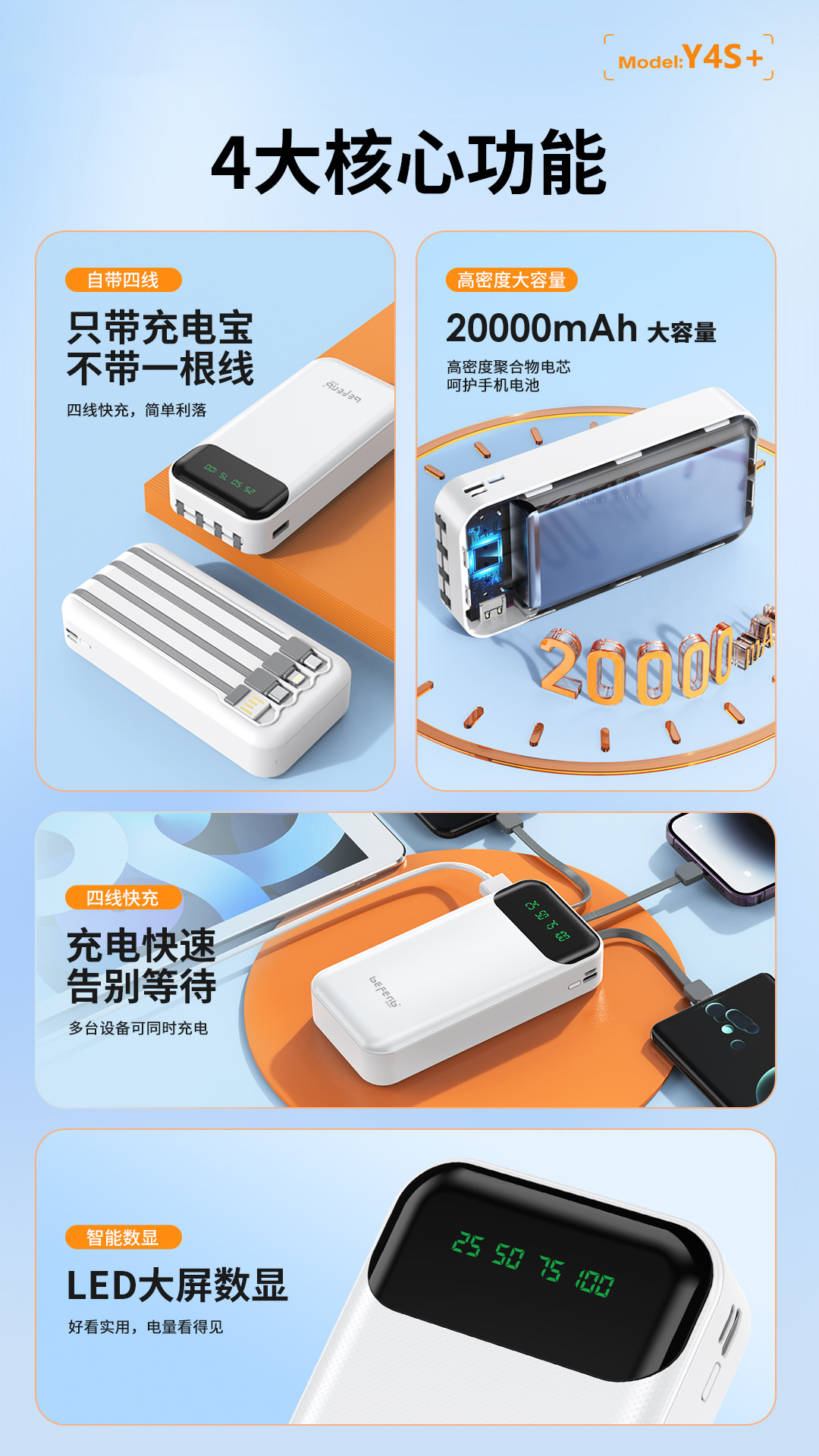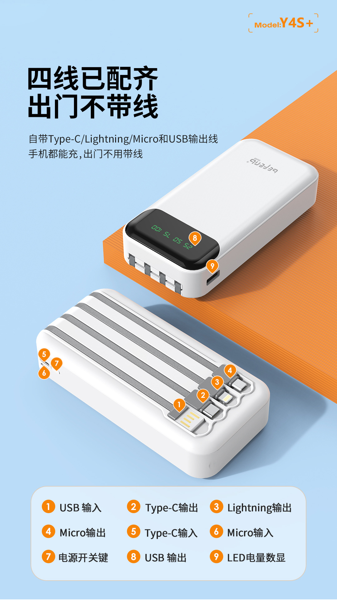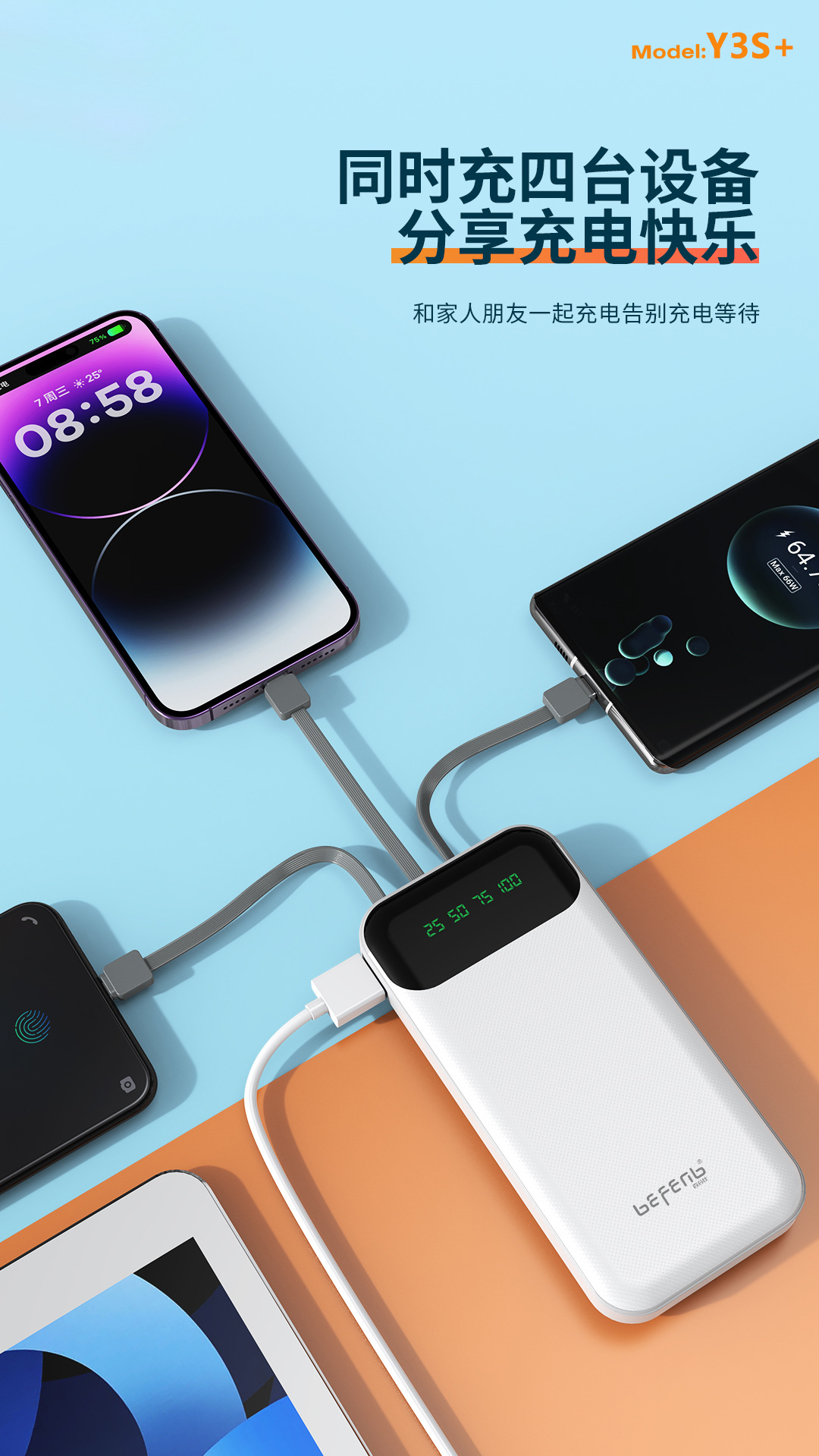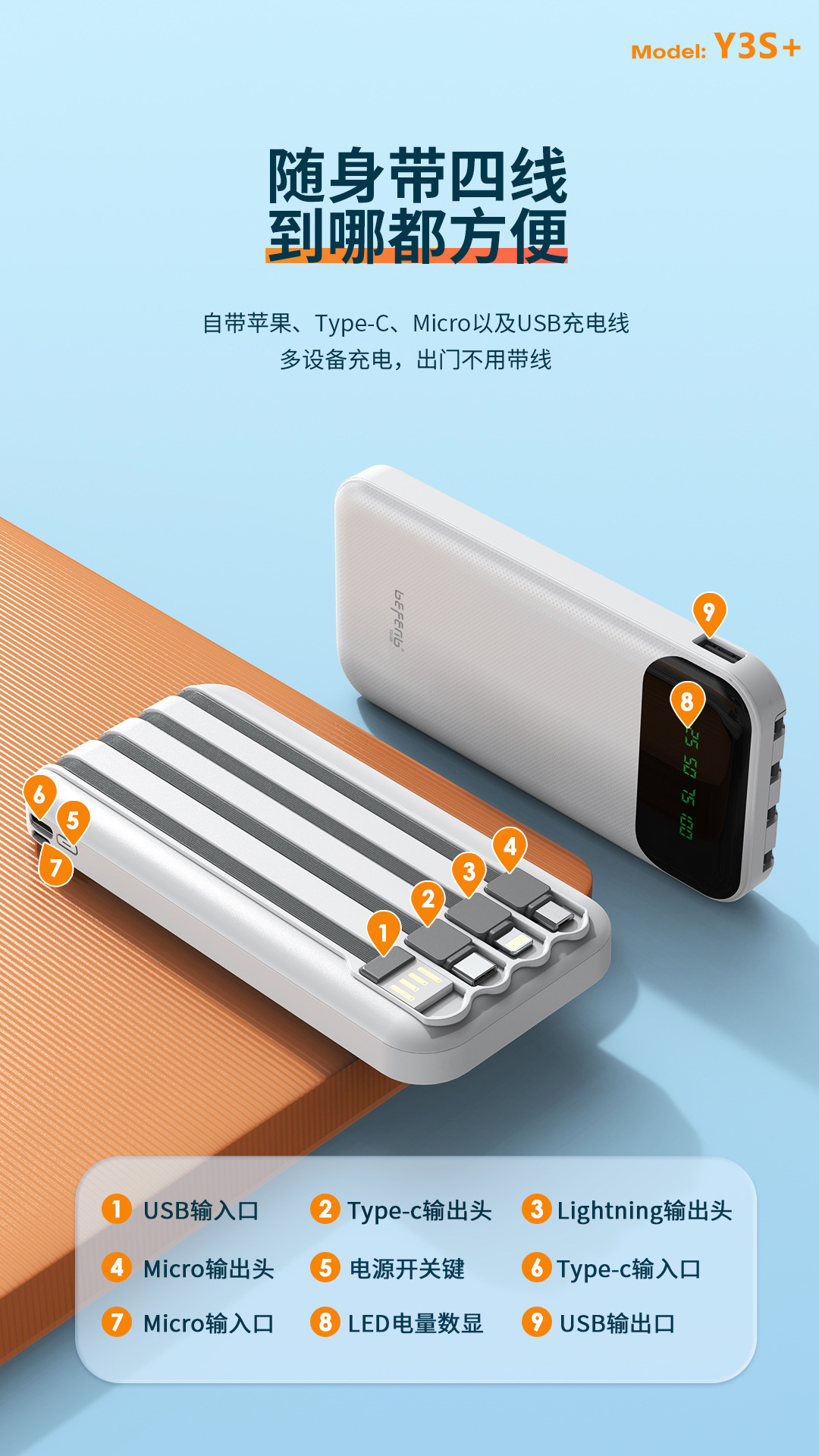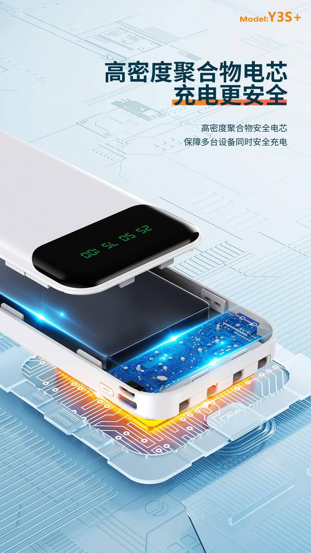Power Bank wholesale mobile power supply comes with data cable USB fast charge 10000 mA with indicator light small and portable