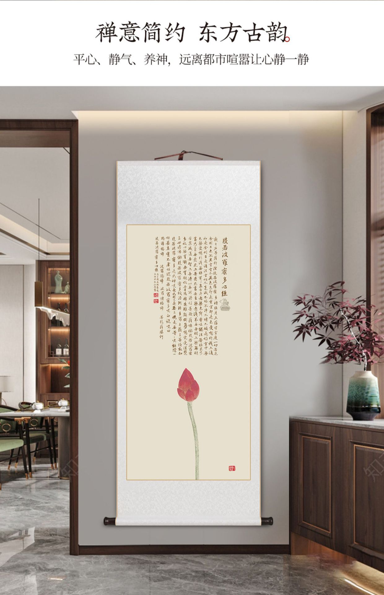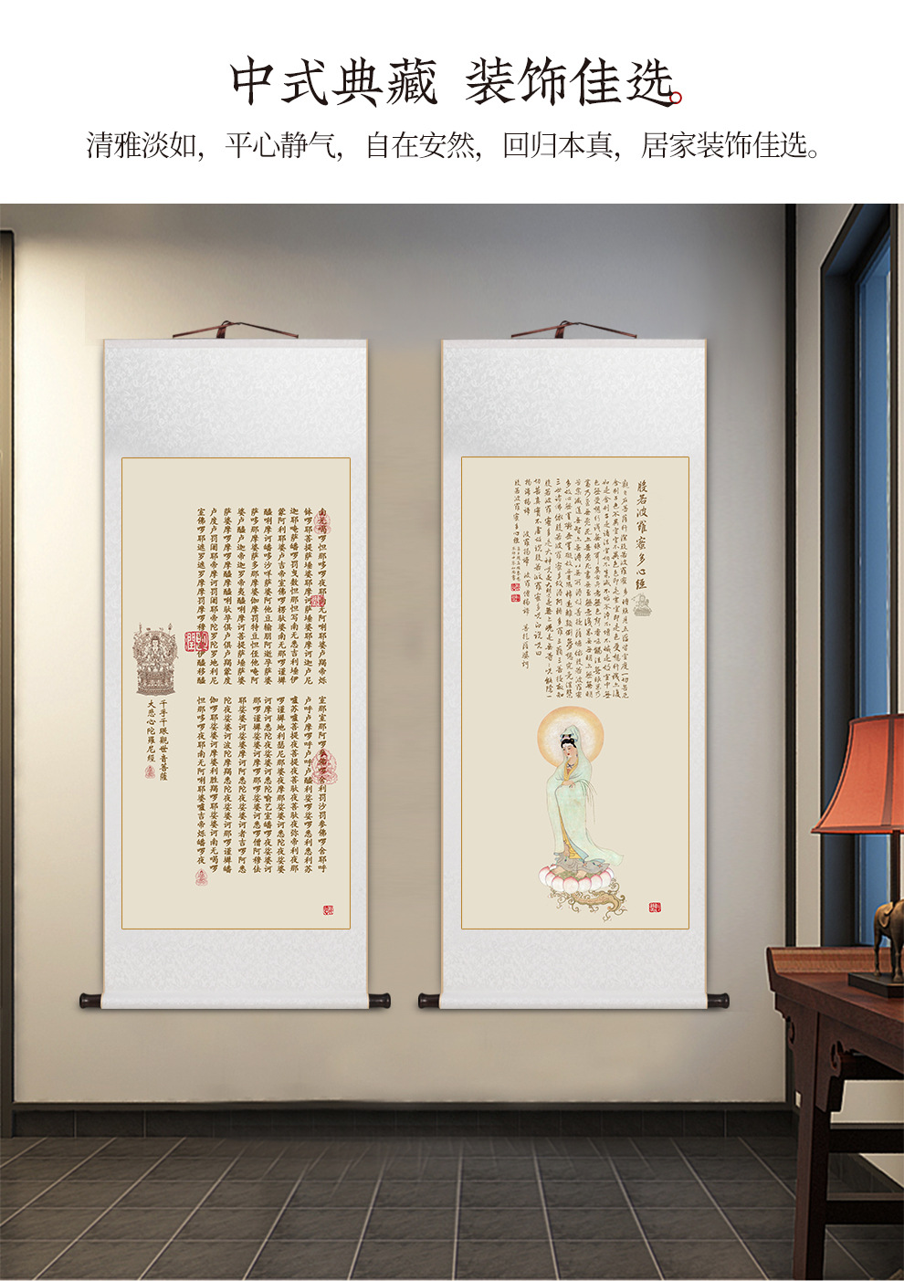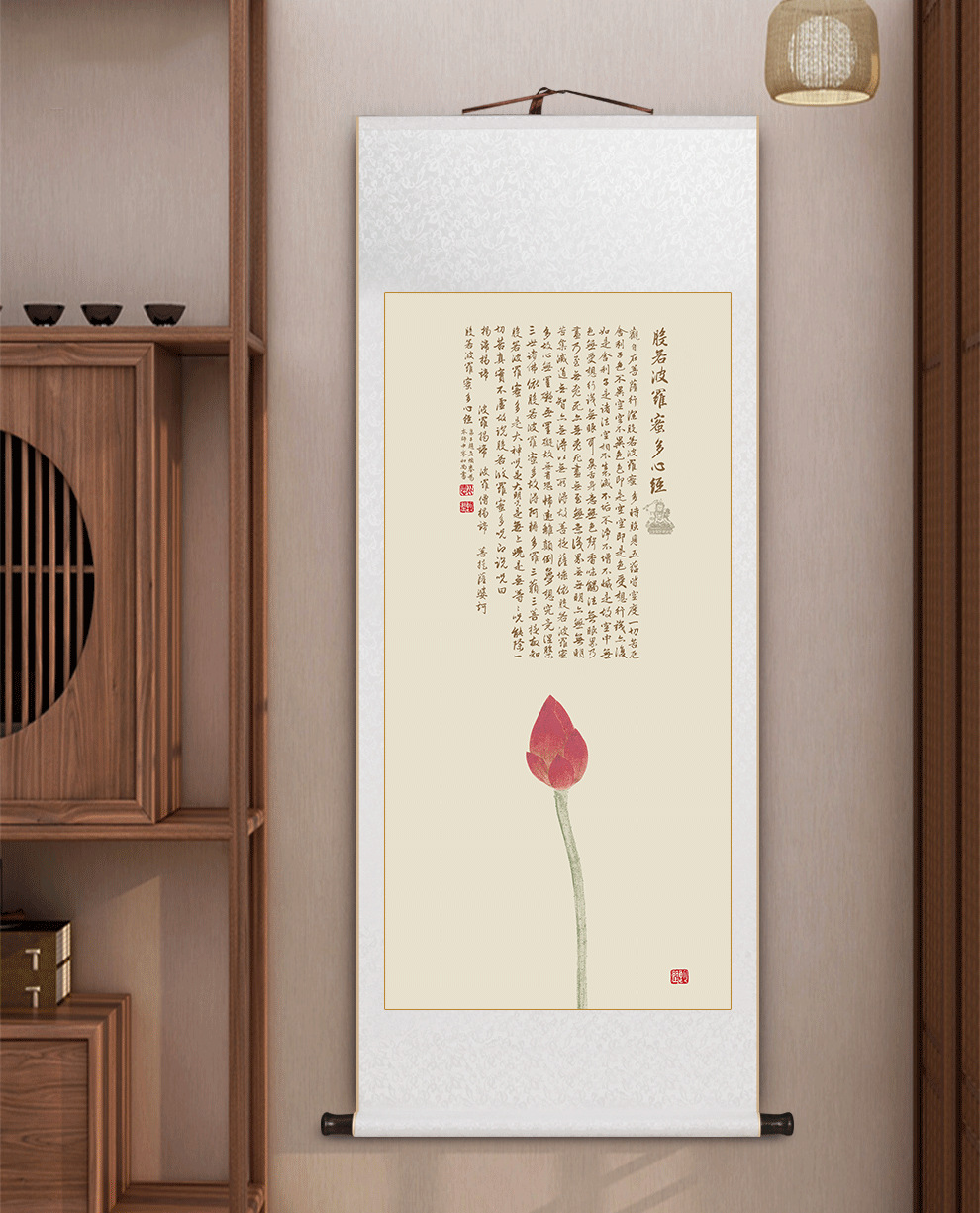Prajna Paramita multi-Heart Sutra calligraphy and painting scroll hanging painting new Chinese living room decorative painting tea room study Zen hanging painting