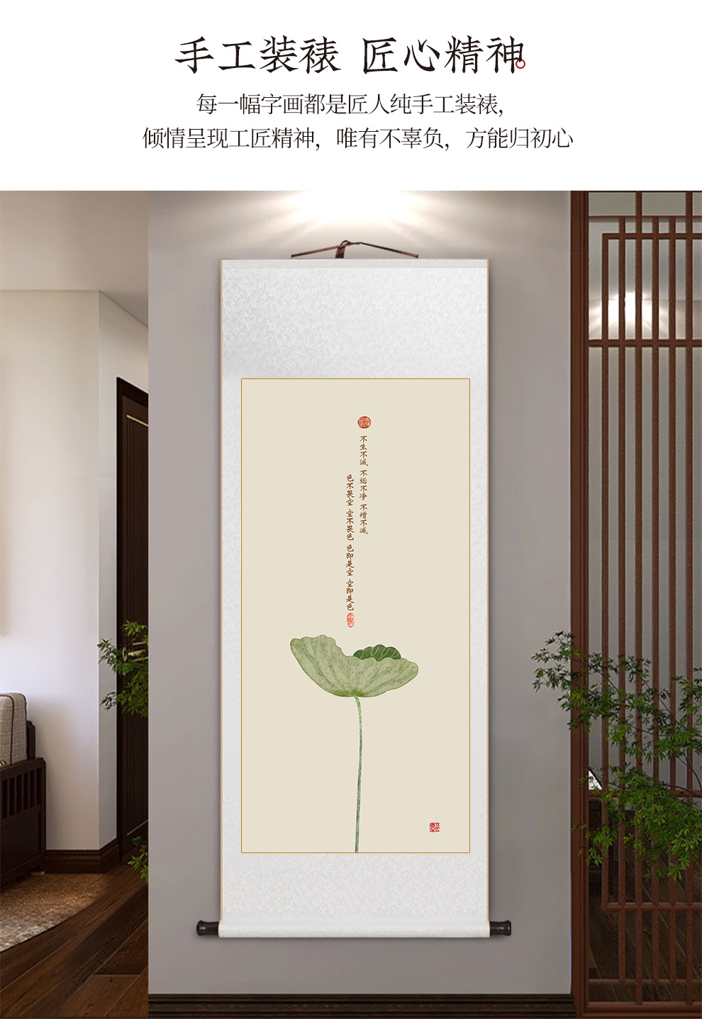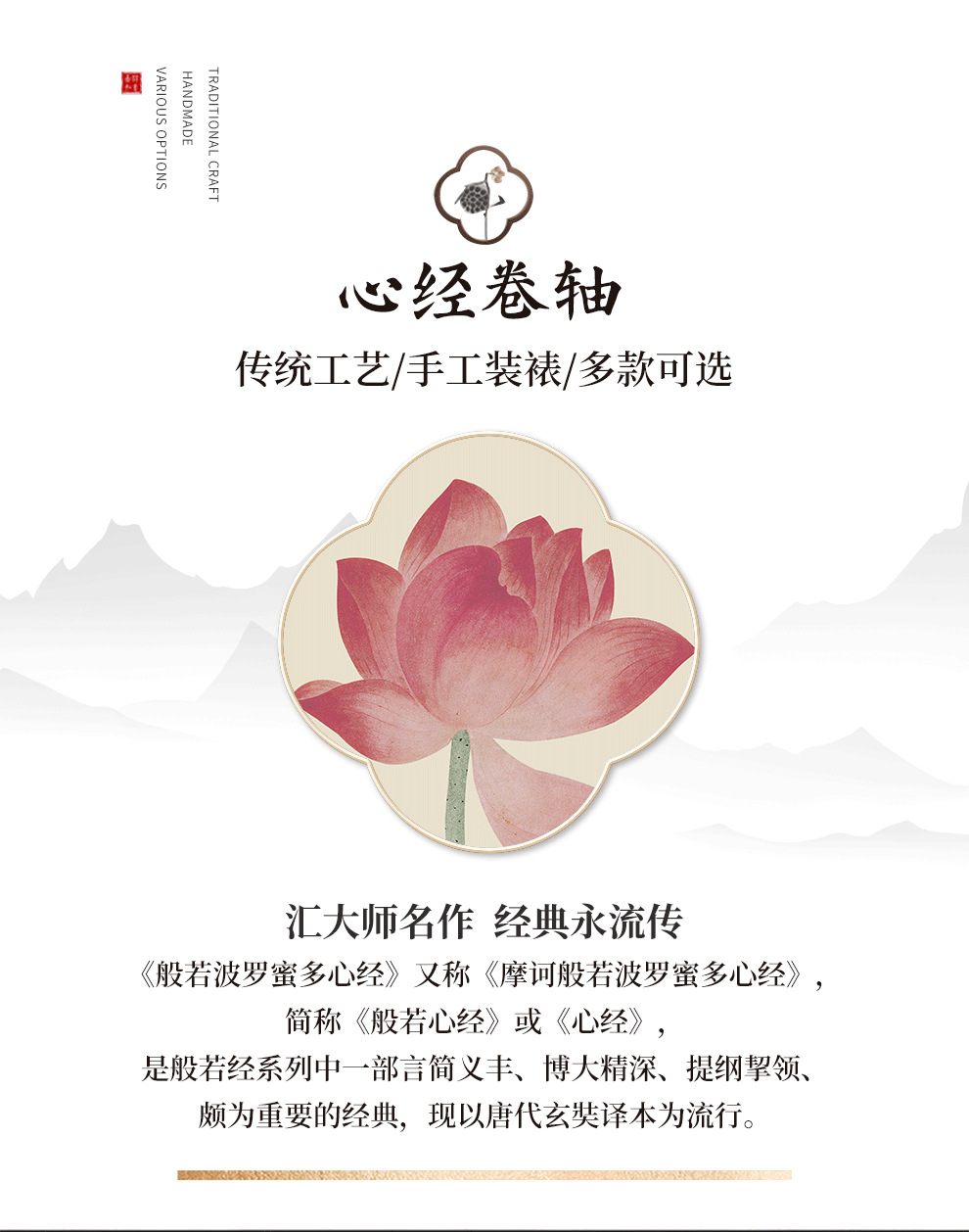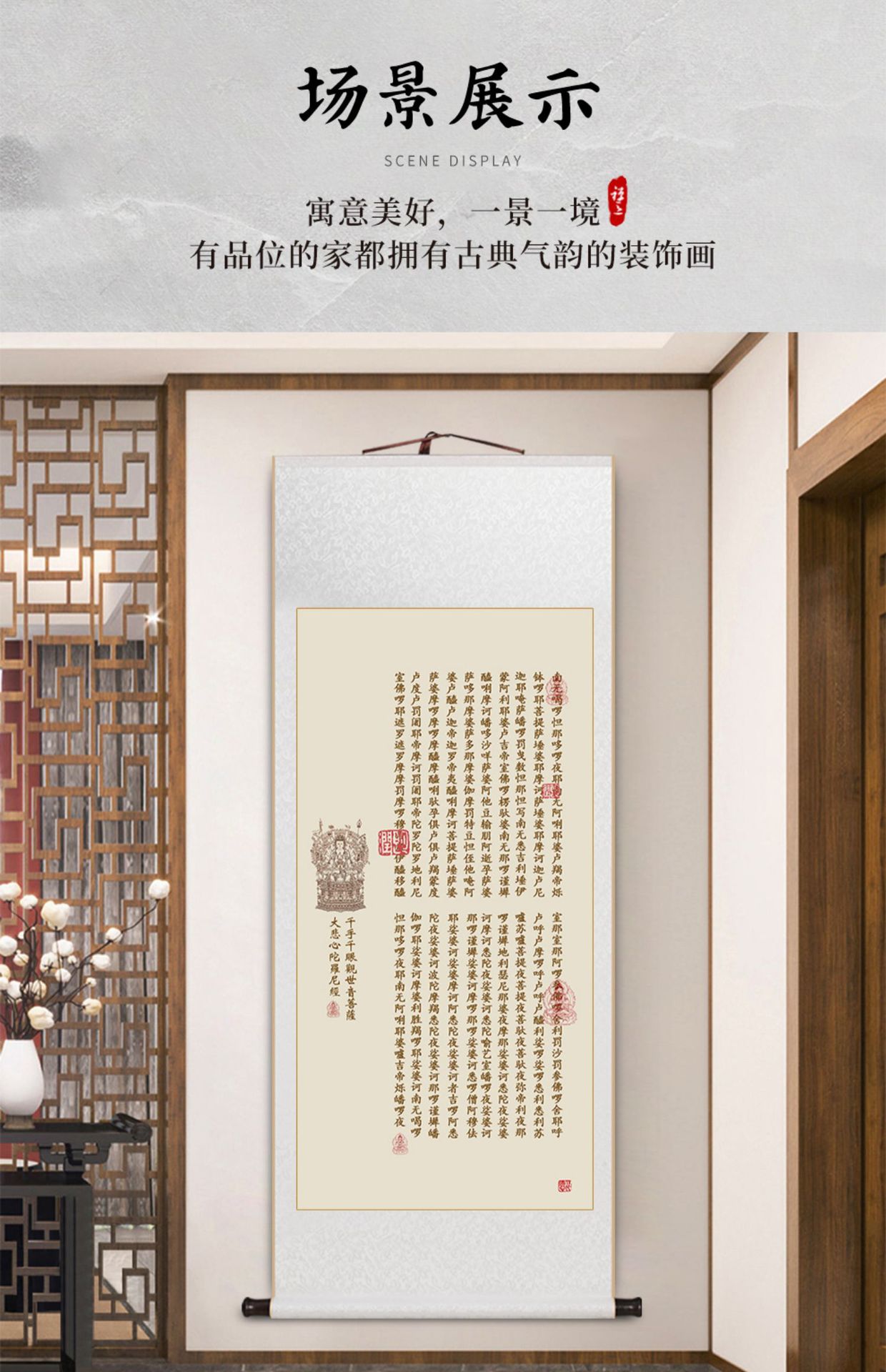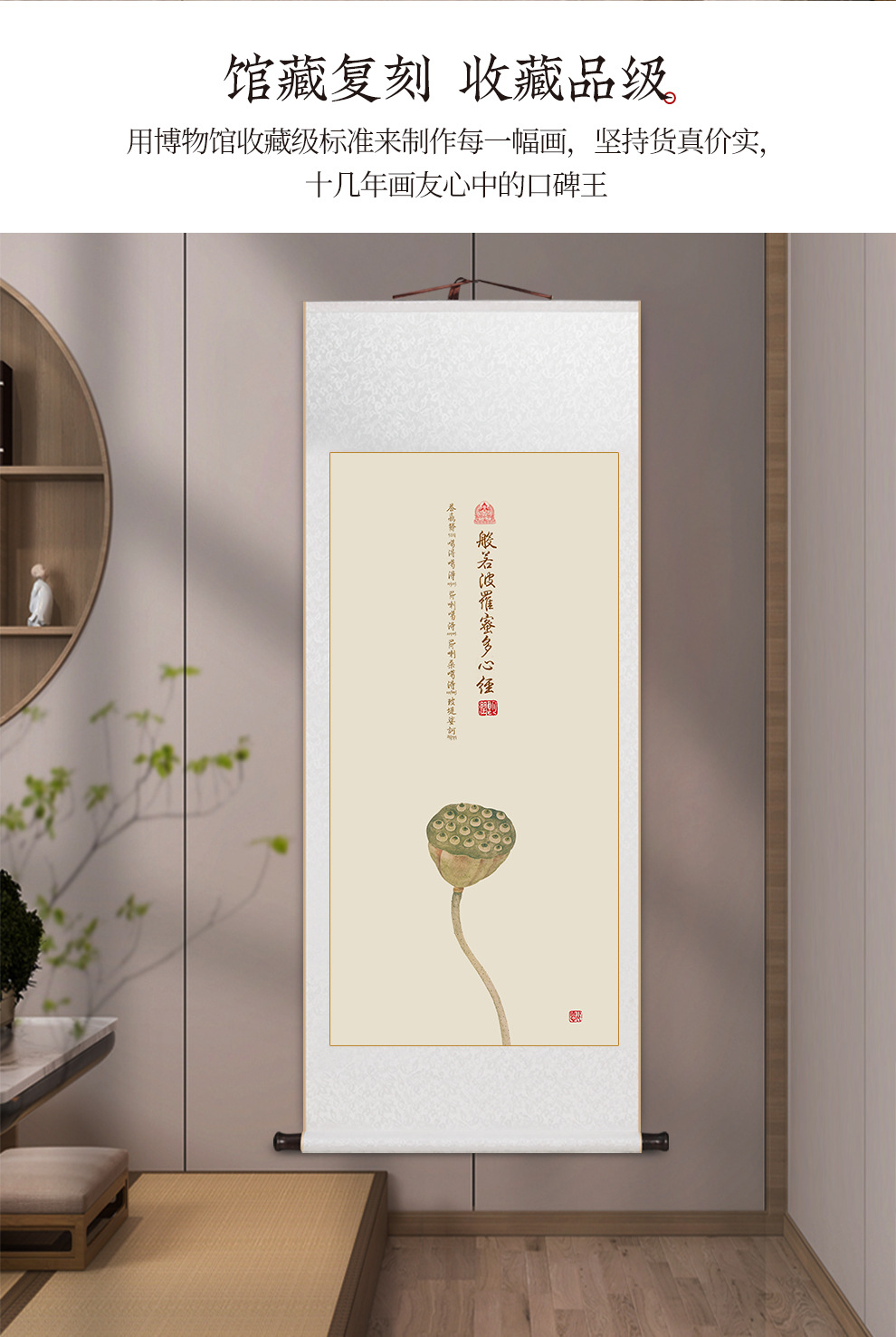 Prajna Paramita multi-Heart Sutra calligraphy and painting scroll hanging painting new Chinese living room decorative painting tea room study Zen hanging painting