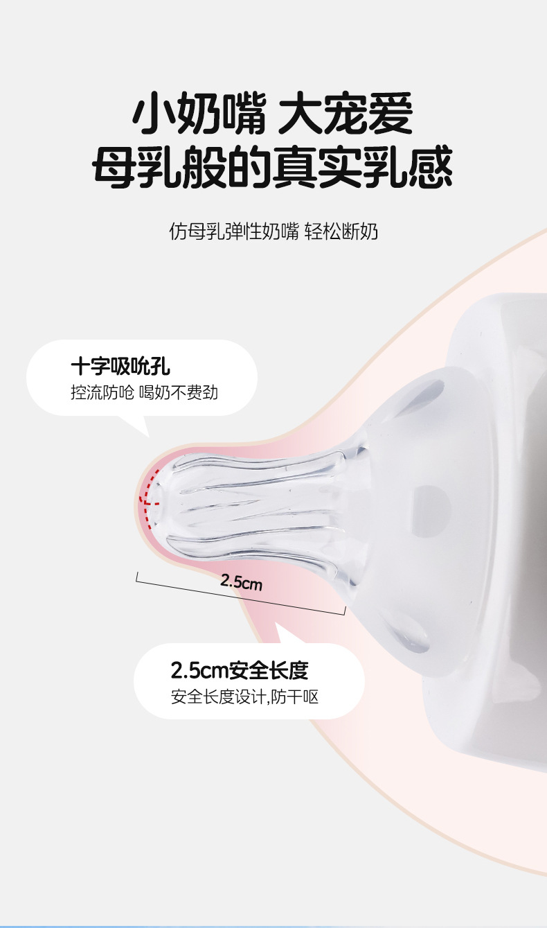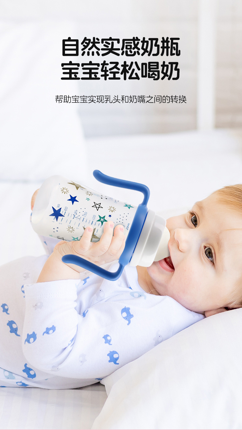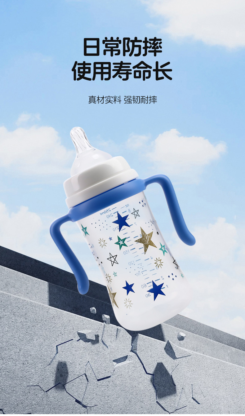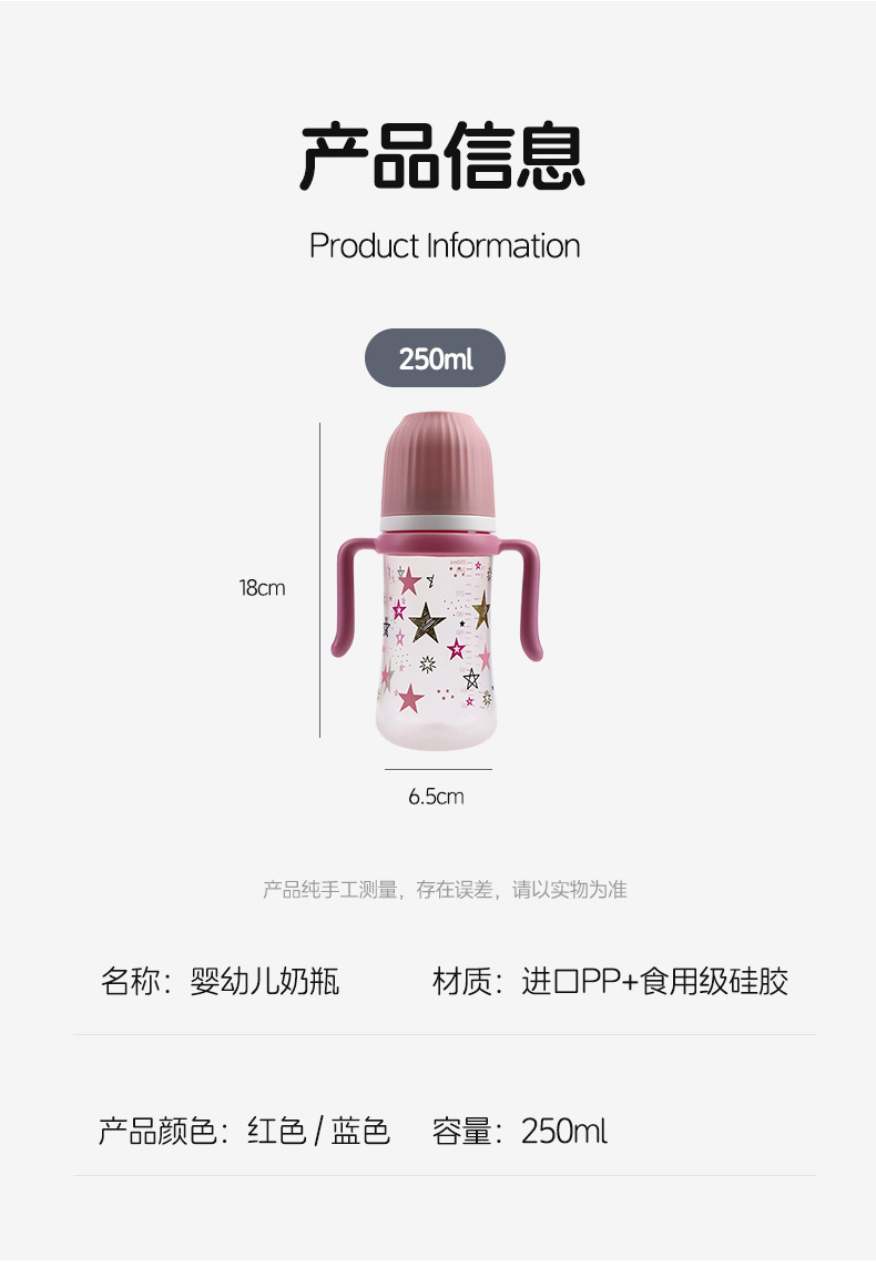 Printed baby bottle food grade silicone nipple with handle anti drop anti choking environmental protection PP mother and baby products factory wholesale