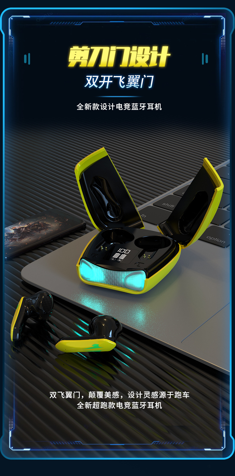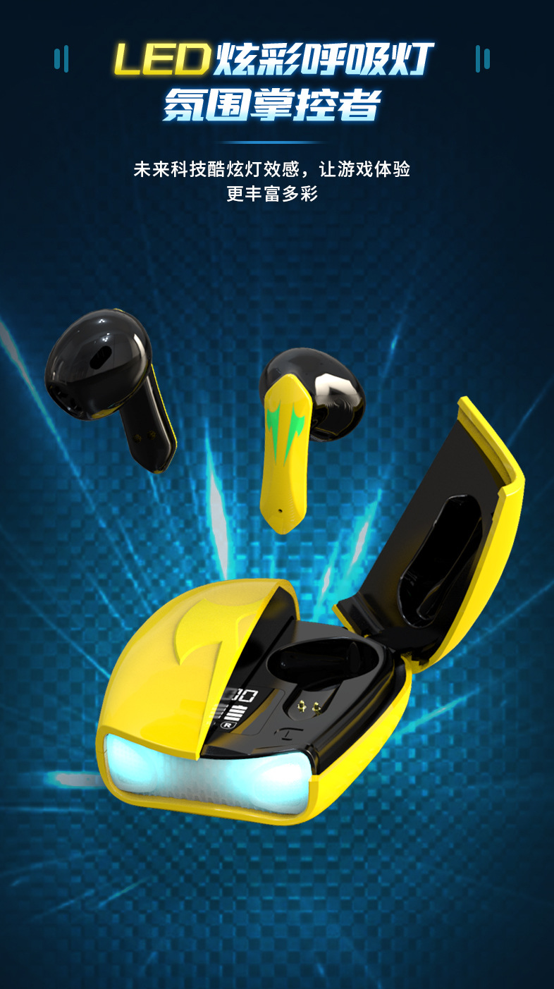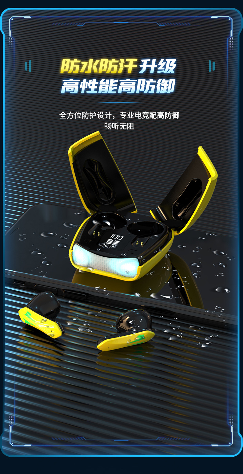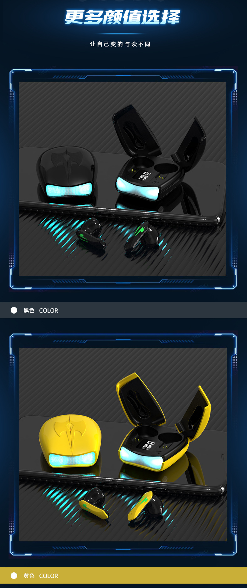 Private Model In Ear Radio Competition Bluetooth Headset Game Low Latency Sports Waterproof Long Endurance Digital Display Bumblebee