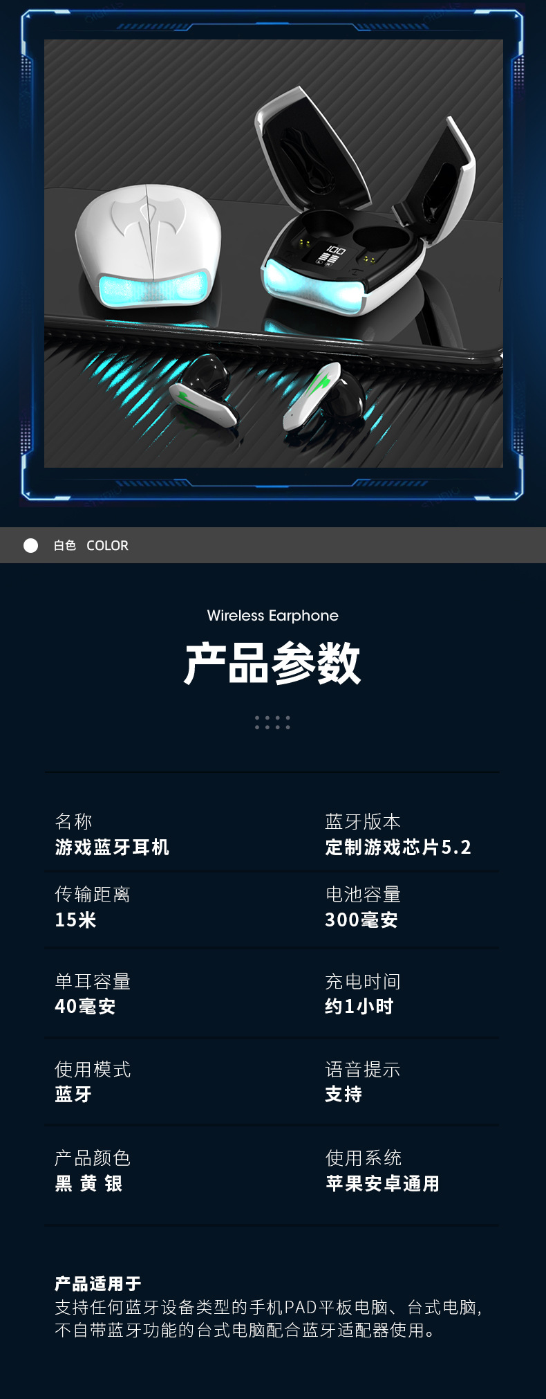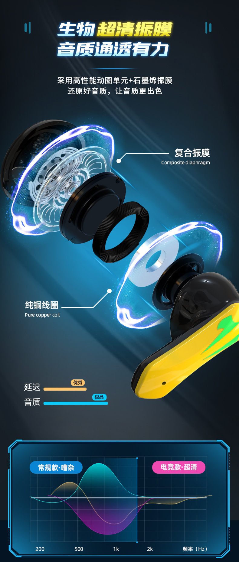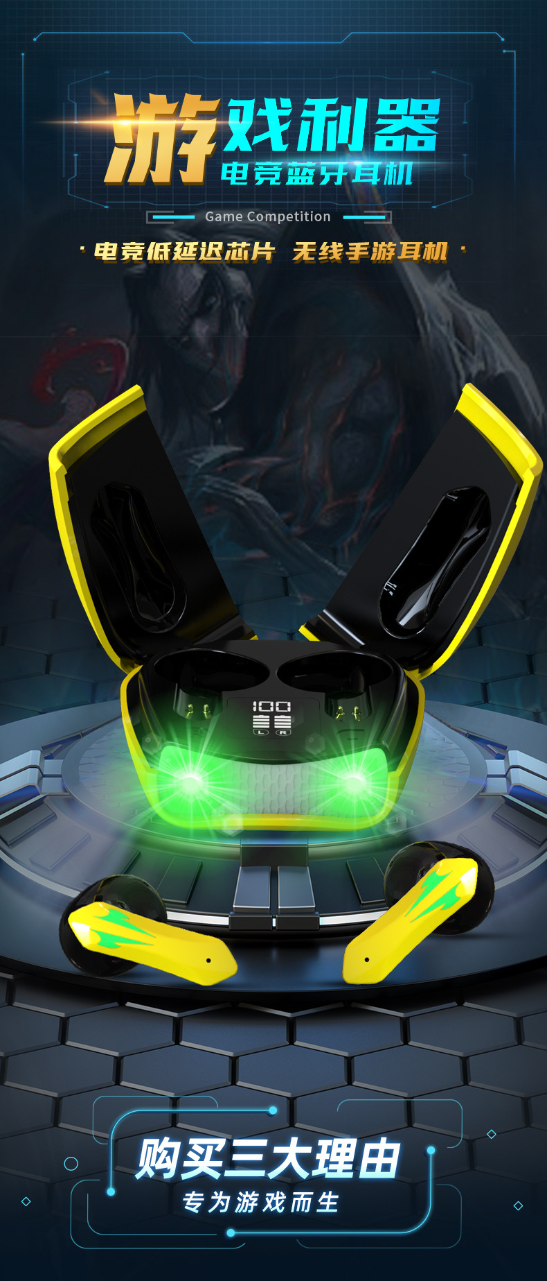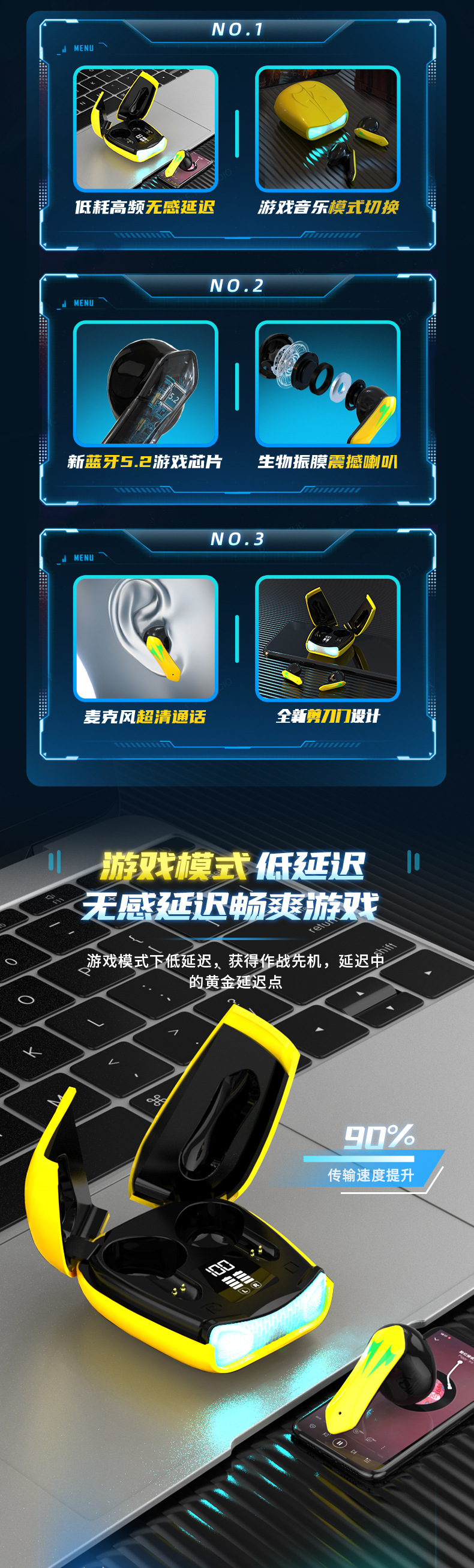 Private Model In Ear Radio Competition Bluetooth Headset Game Low Latency Sports Waterproof Long Endurance Digital Display Bumblebee