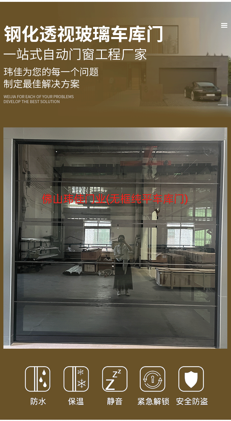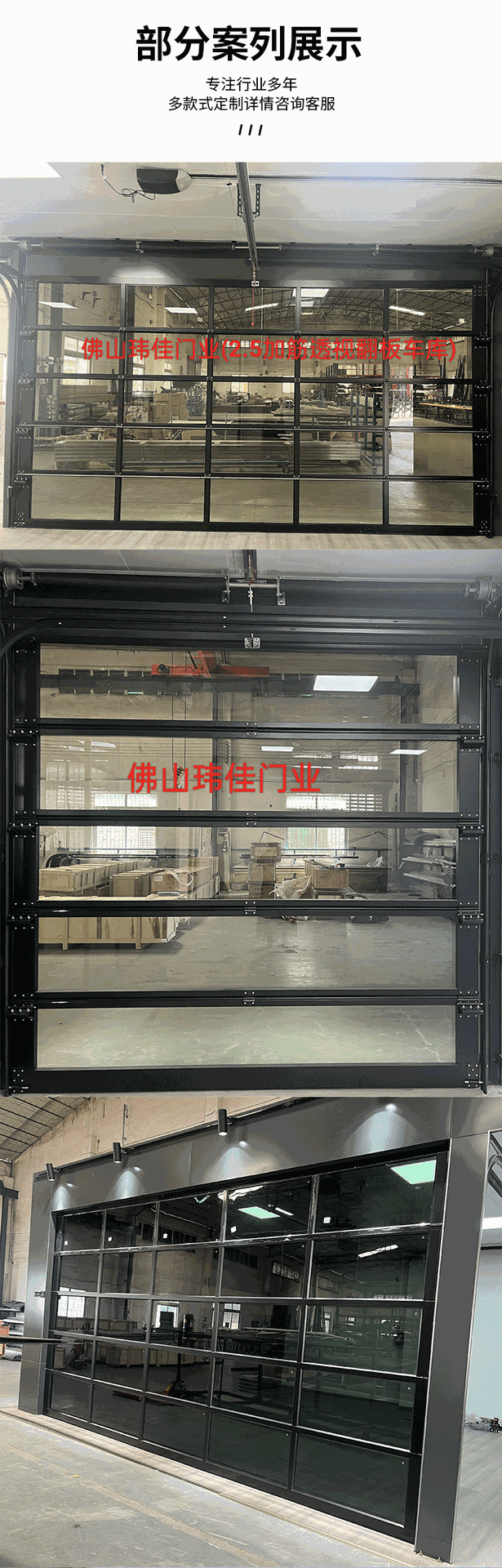 Professional custom 5.0mm car 4S shop tempered perspective glass garage door rolling door industrial vertical lift door