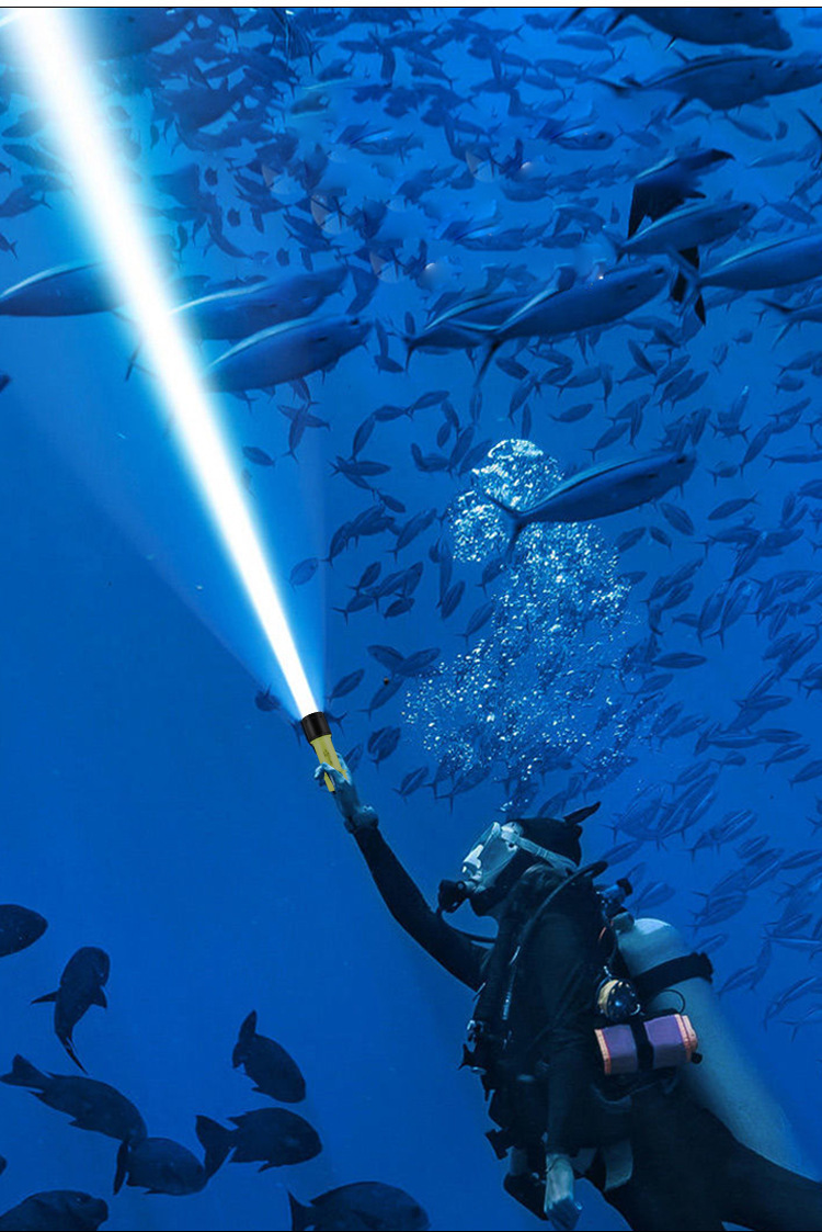 Professional diving lighting equipment strong light long range deep diving flashlight waterproof aluminum cup led magnetic switch to the sea