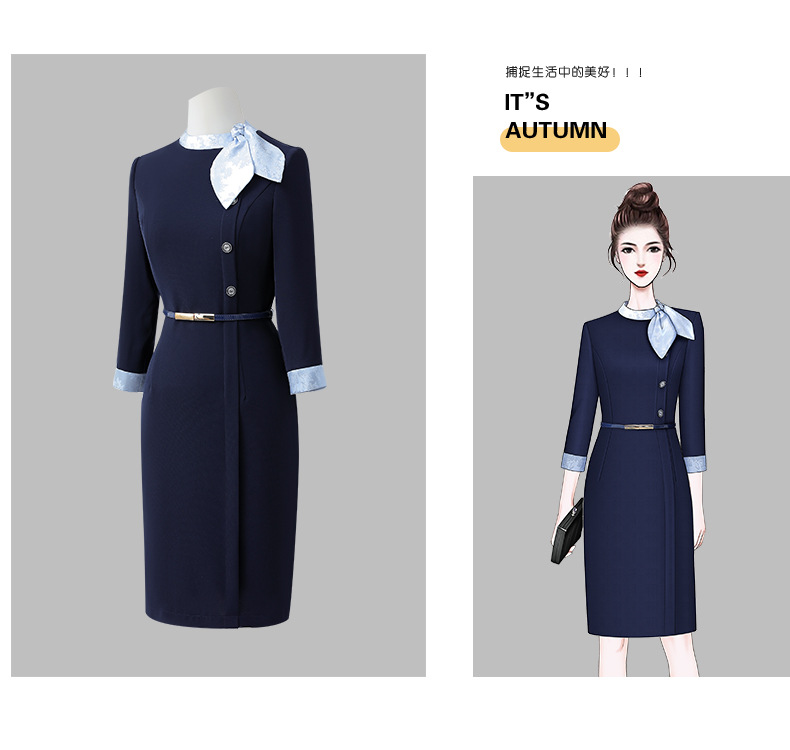 Professional dress temperament fashion hotel front desk reception sales department property case work clothes female autumn