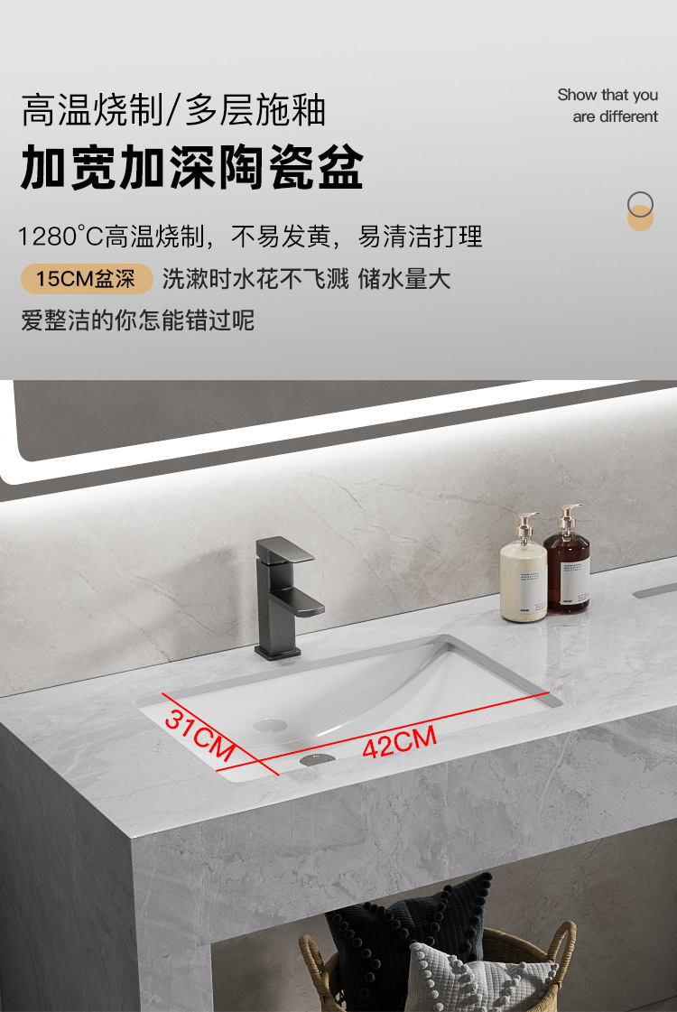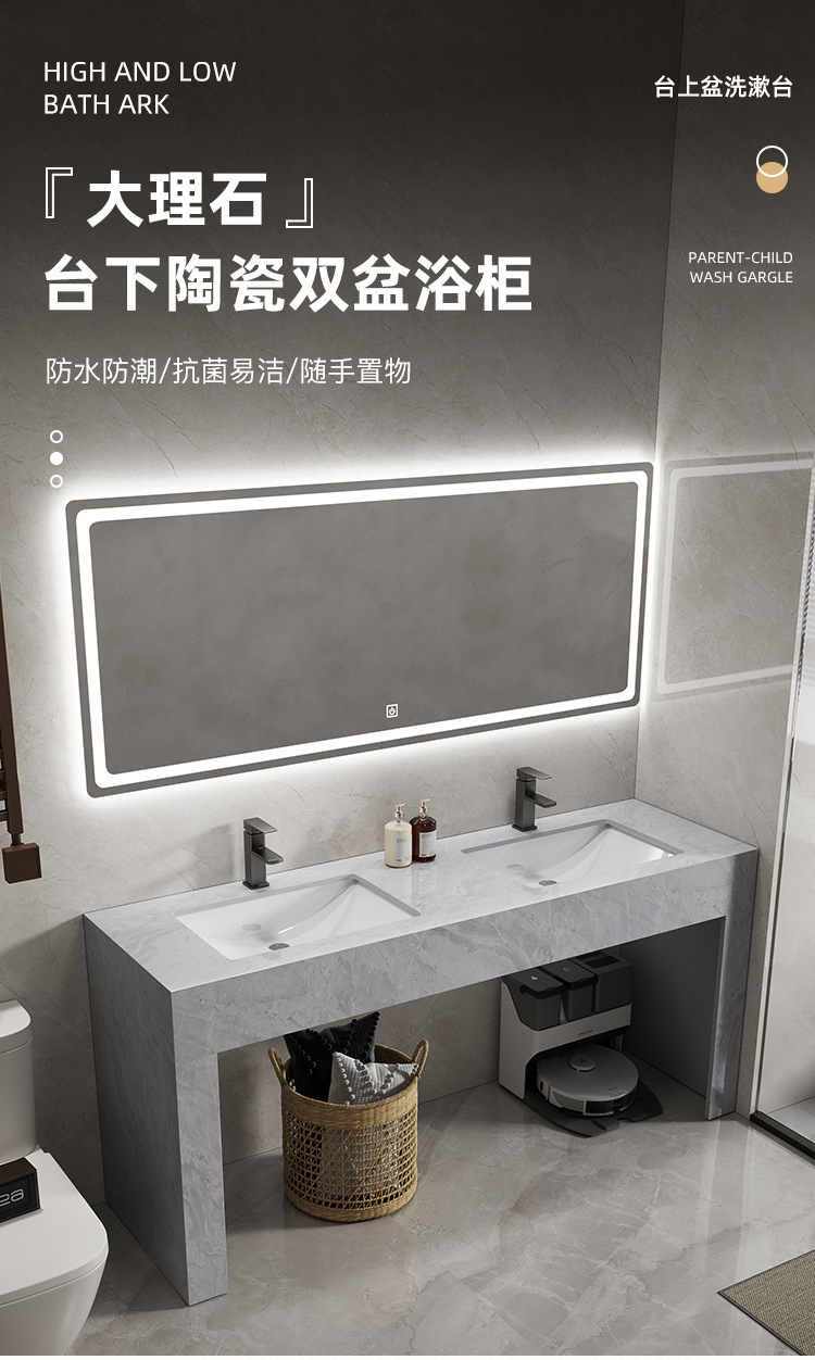 - 1.2 meters under the table double basin intelligent square mirror