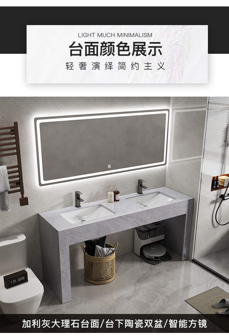 - 1.2 meters platform double basin intelligent square mirror