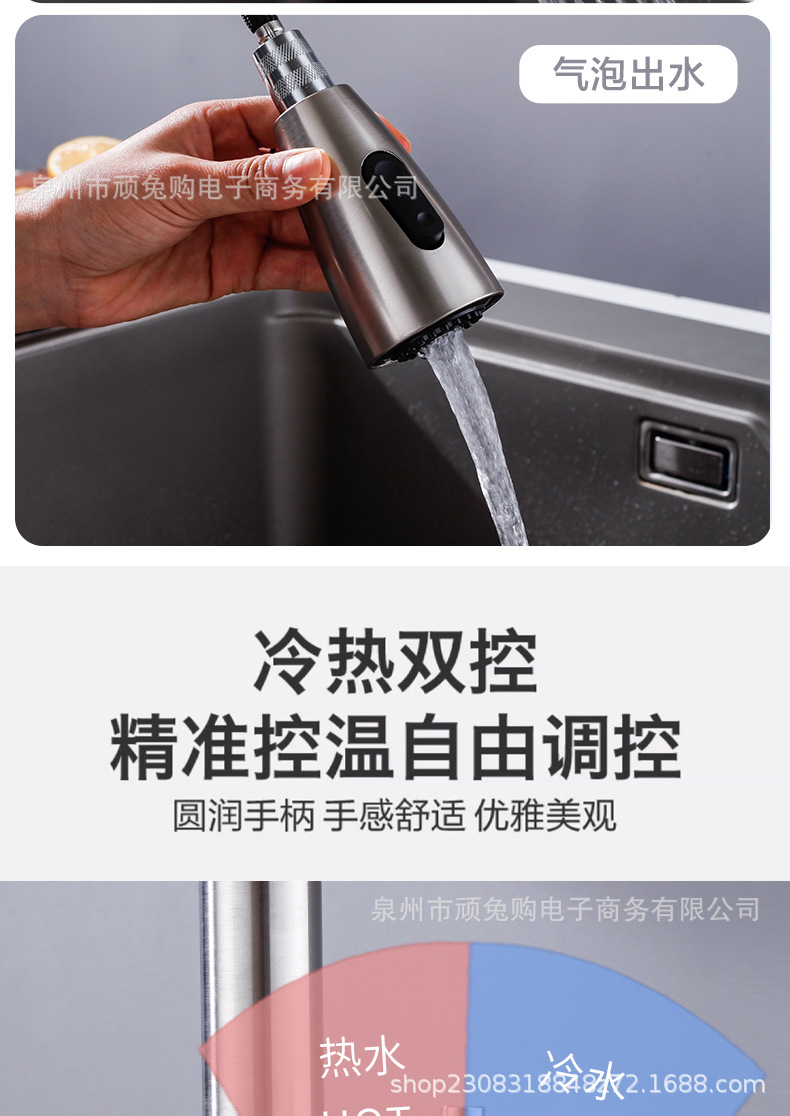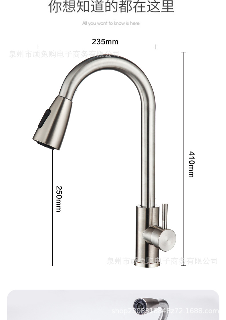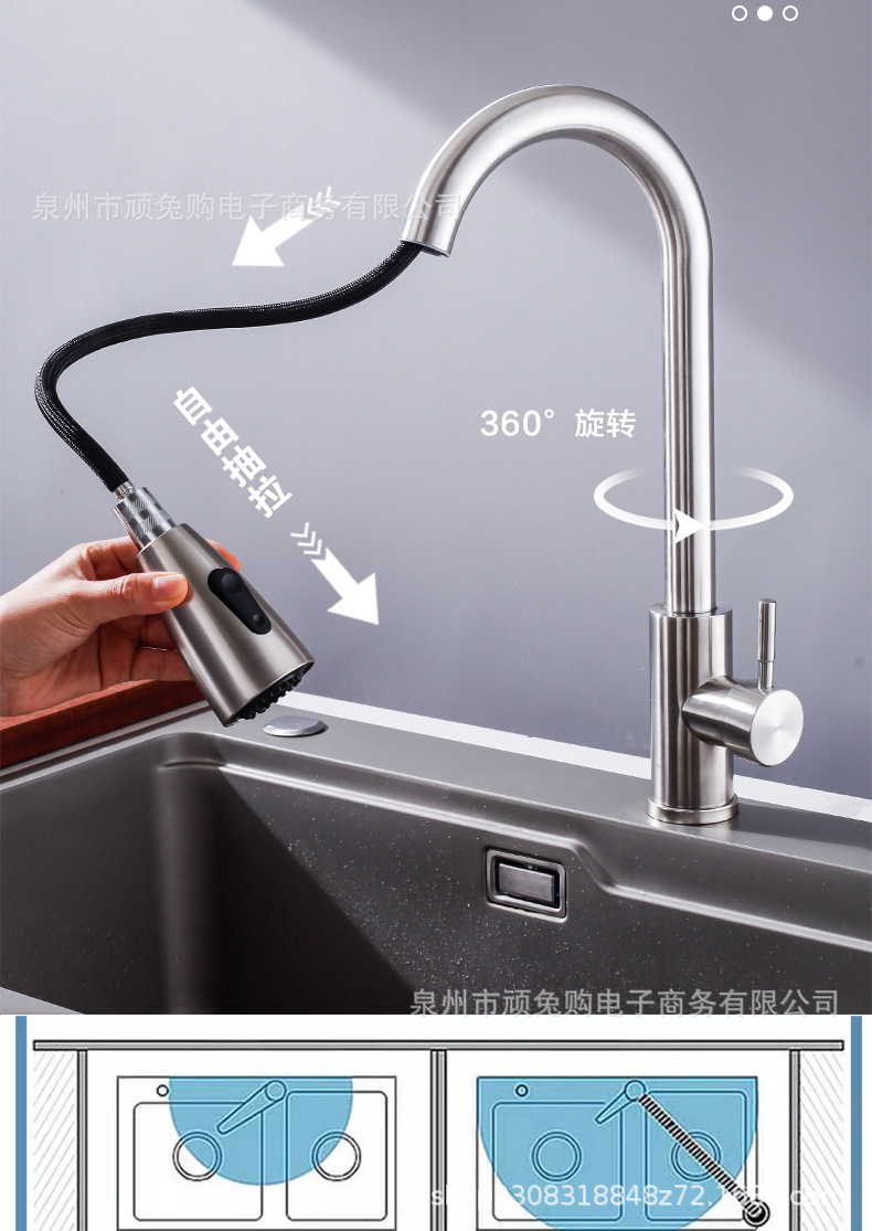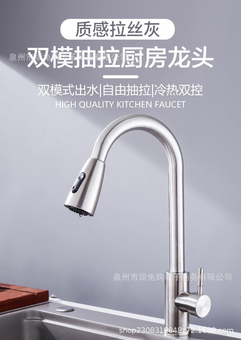Pull out large curved faucet hot and cold water kitchen sink sink balcony laundry pool stainless steel double outlet faucet