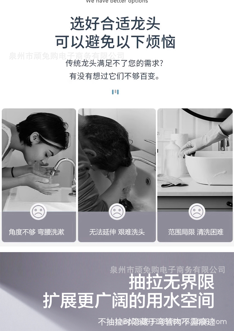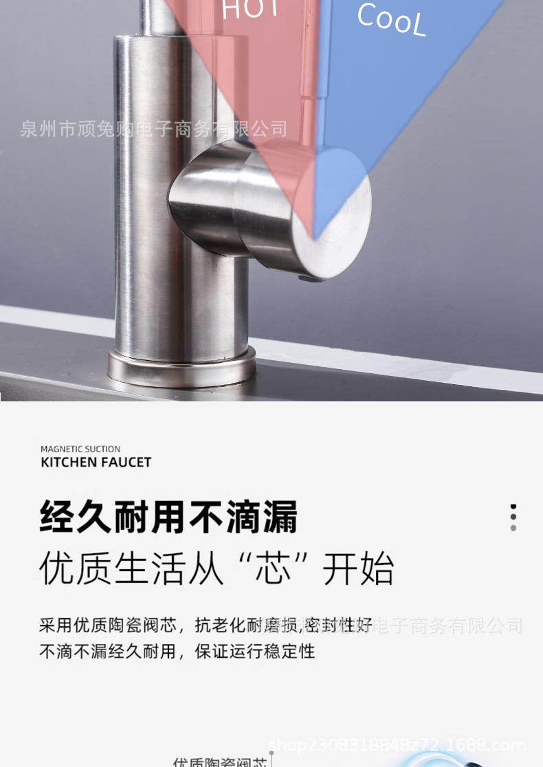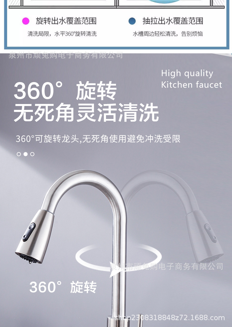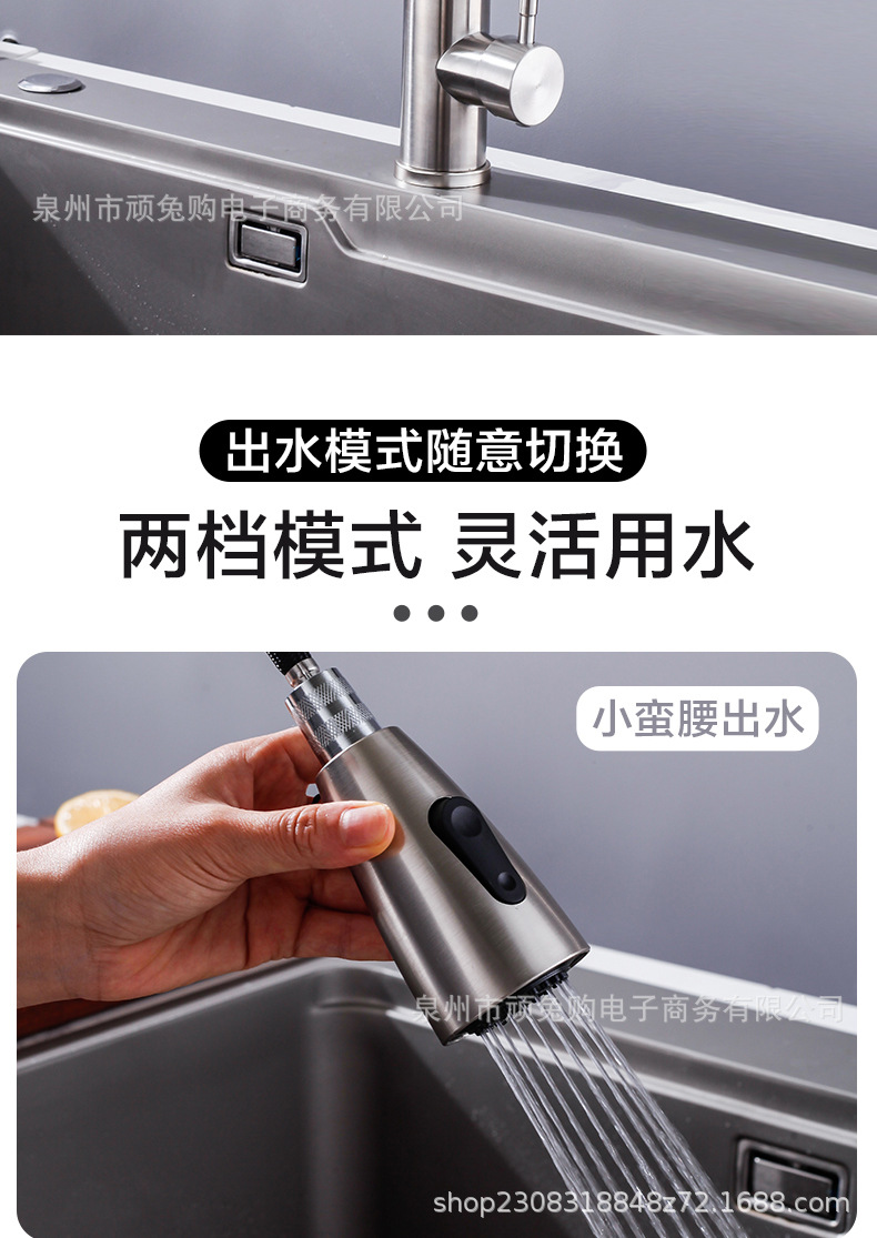 Pull out large curved faucet hot and cold water kitchen sink sink balcony laundry pool stainless steel double outlet faucet