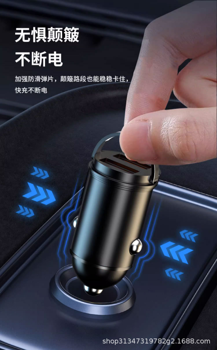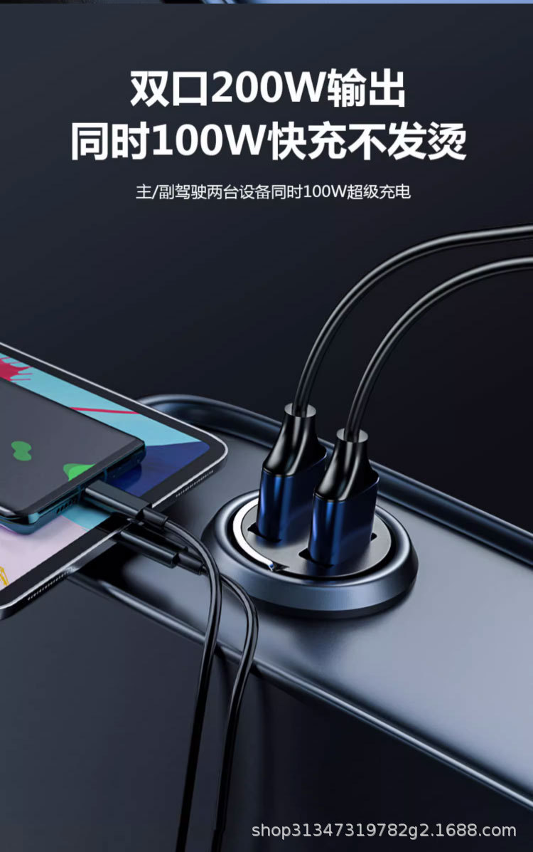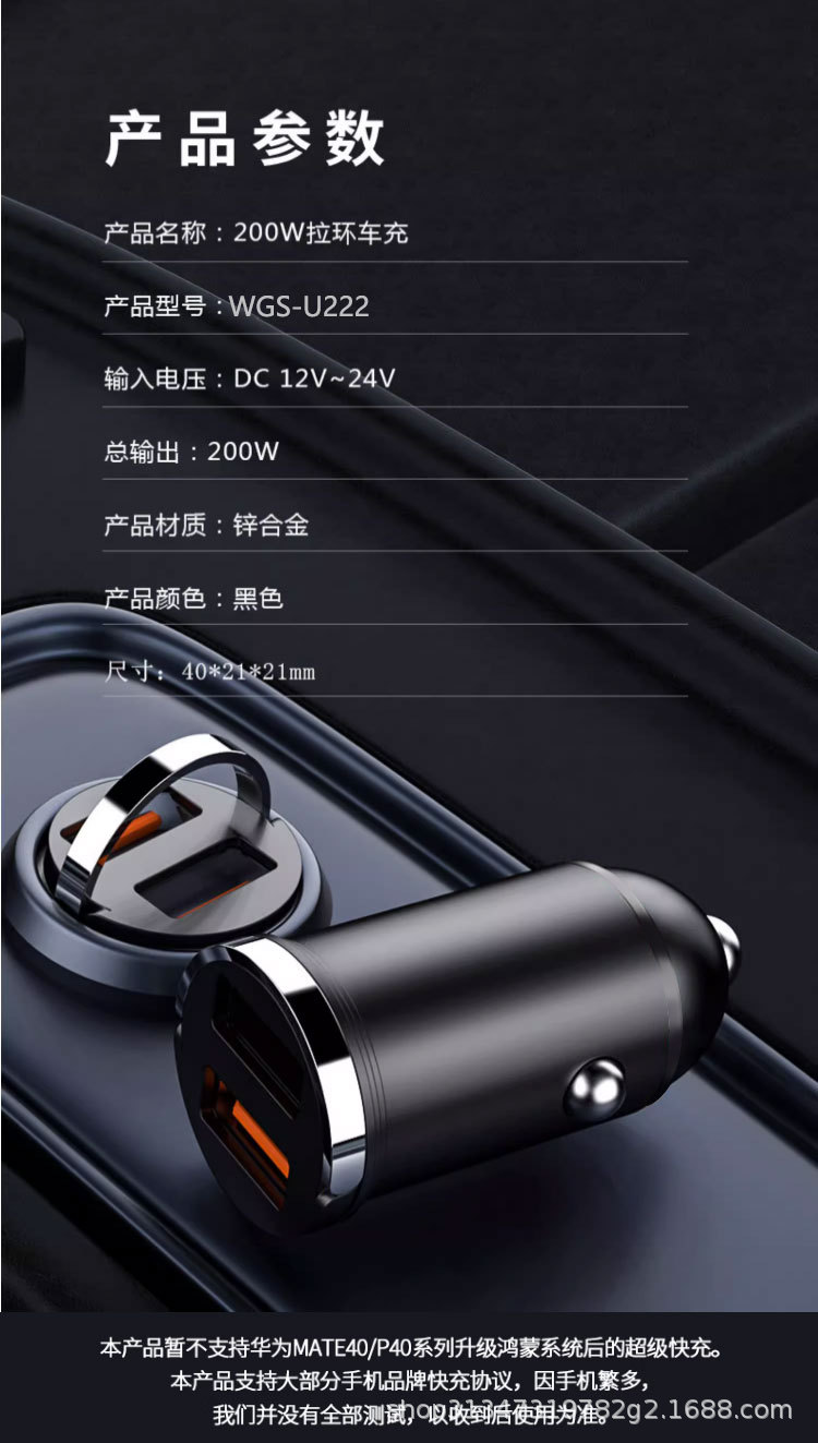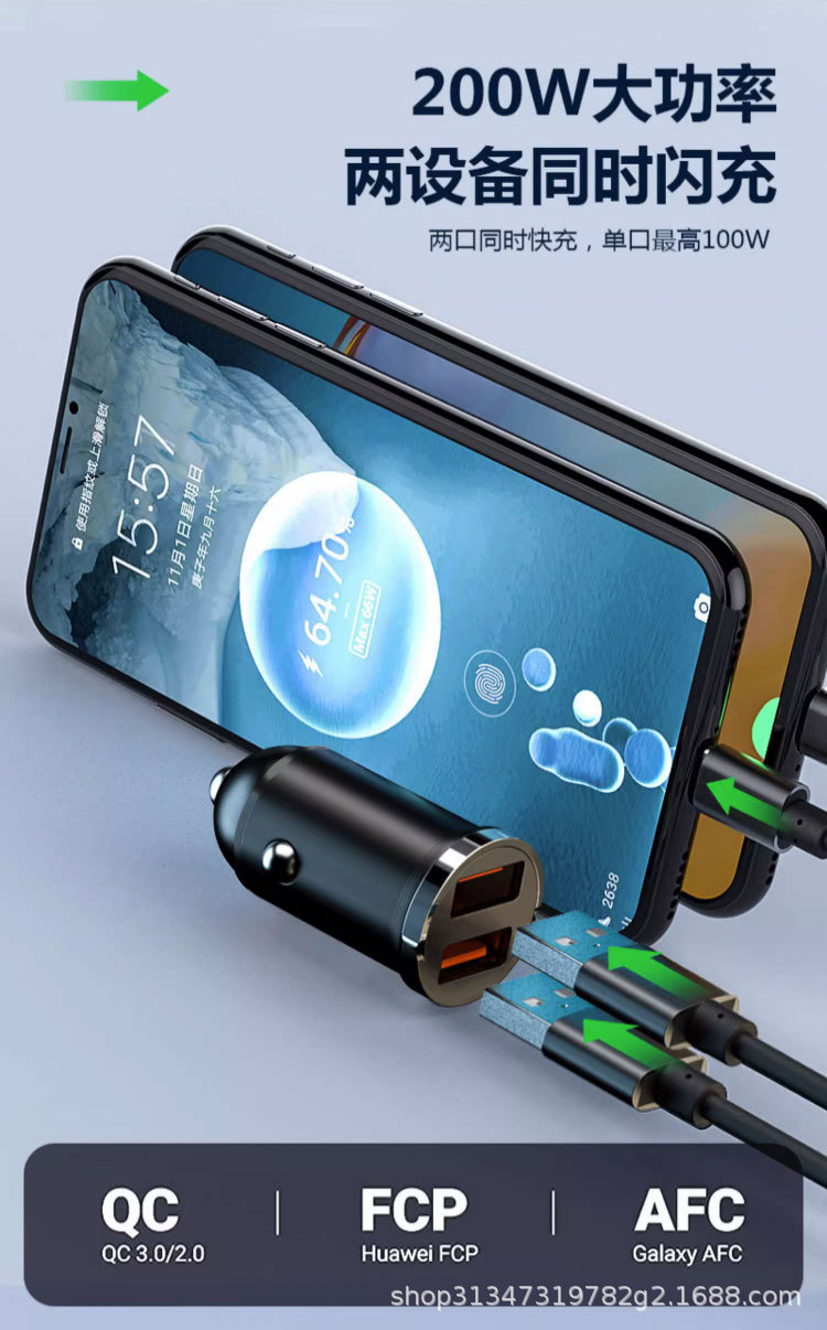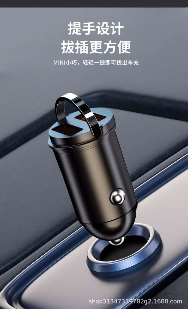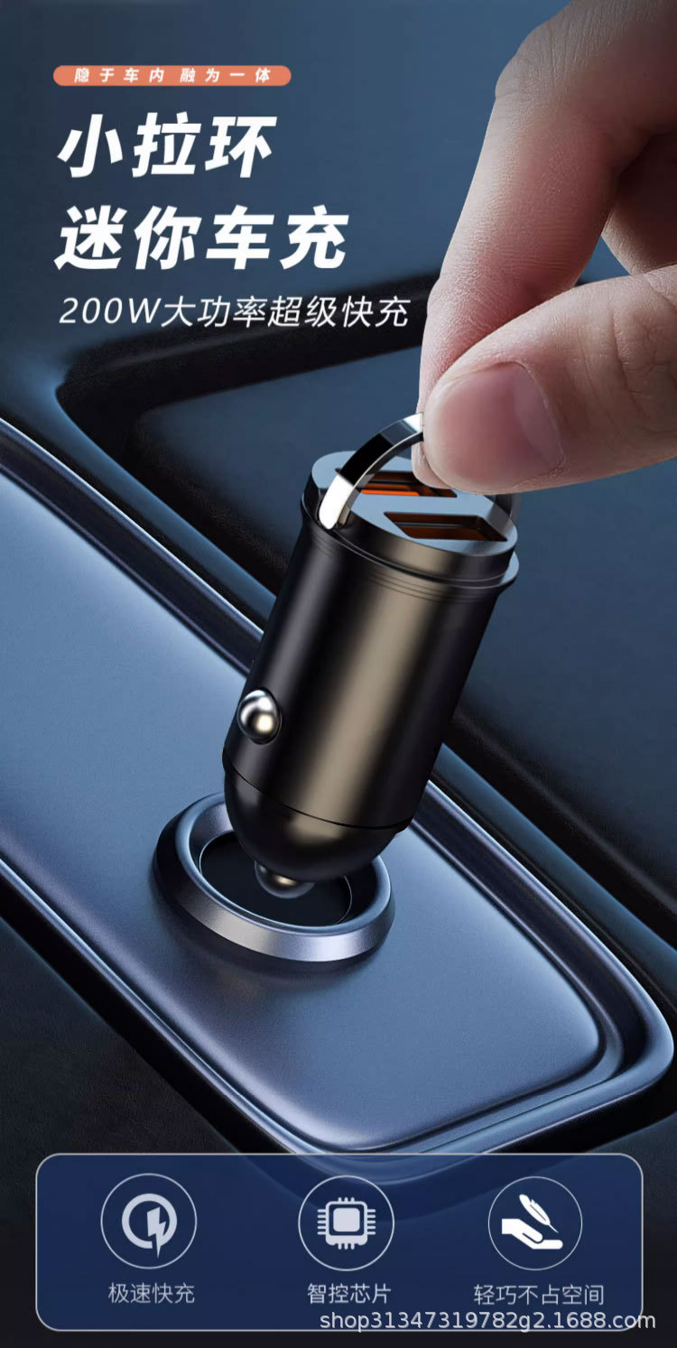 Pull ring double USB mini car charger super fast charging head 200W invisible car charger car cigarette lighter wholesale