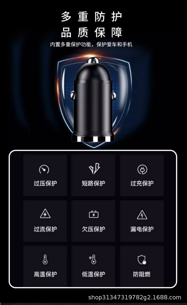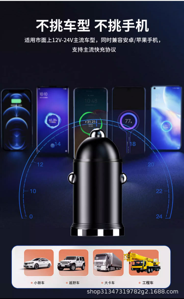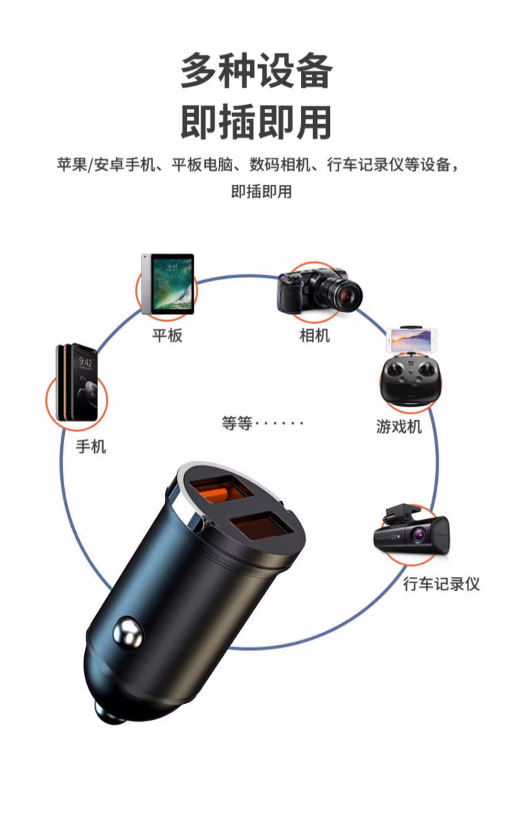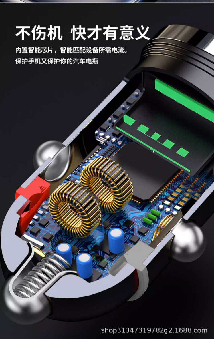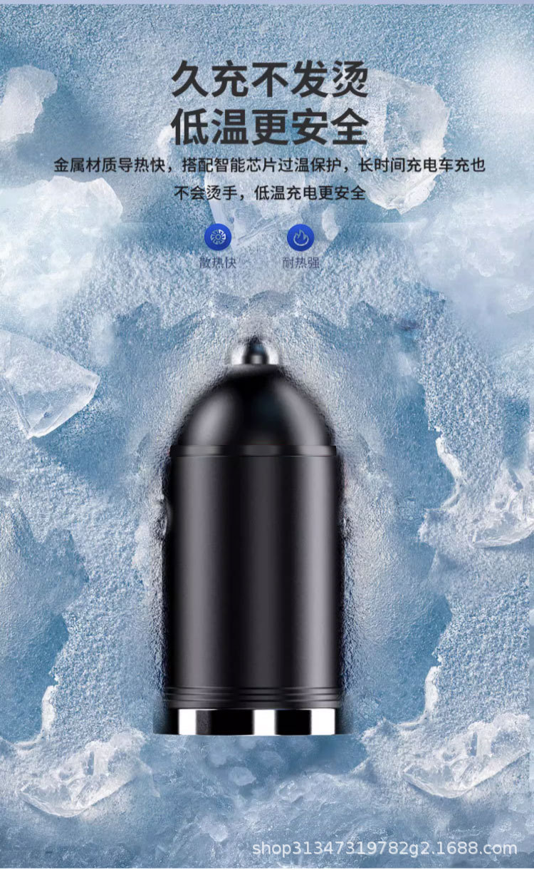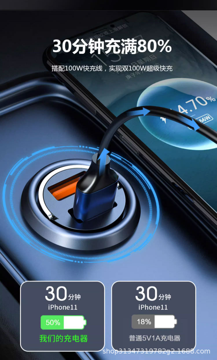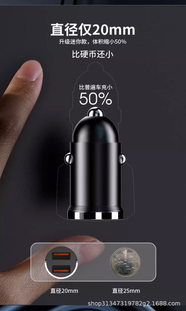 Pull ring double USB mini car charger super fast charging head 200W invisible car charger car cigarette lighter wholesale