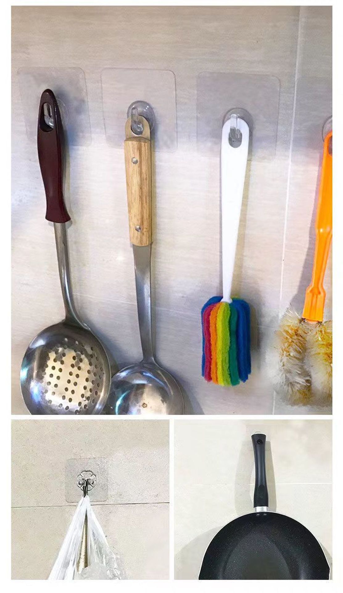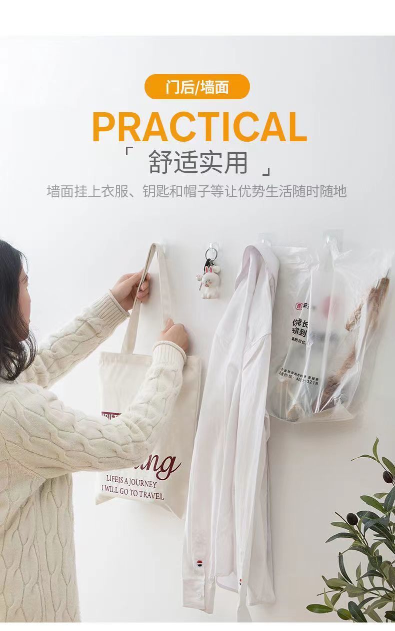 Punch free Paper drawing New Transparent Horn Hook Kitchen Bathroom Creative Traceless Hook Door Punch free Plastic Adhesive