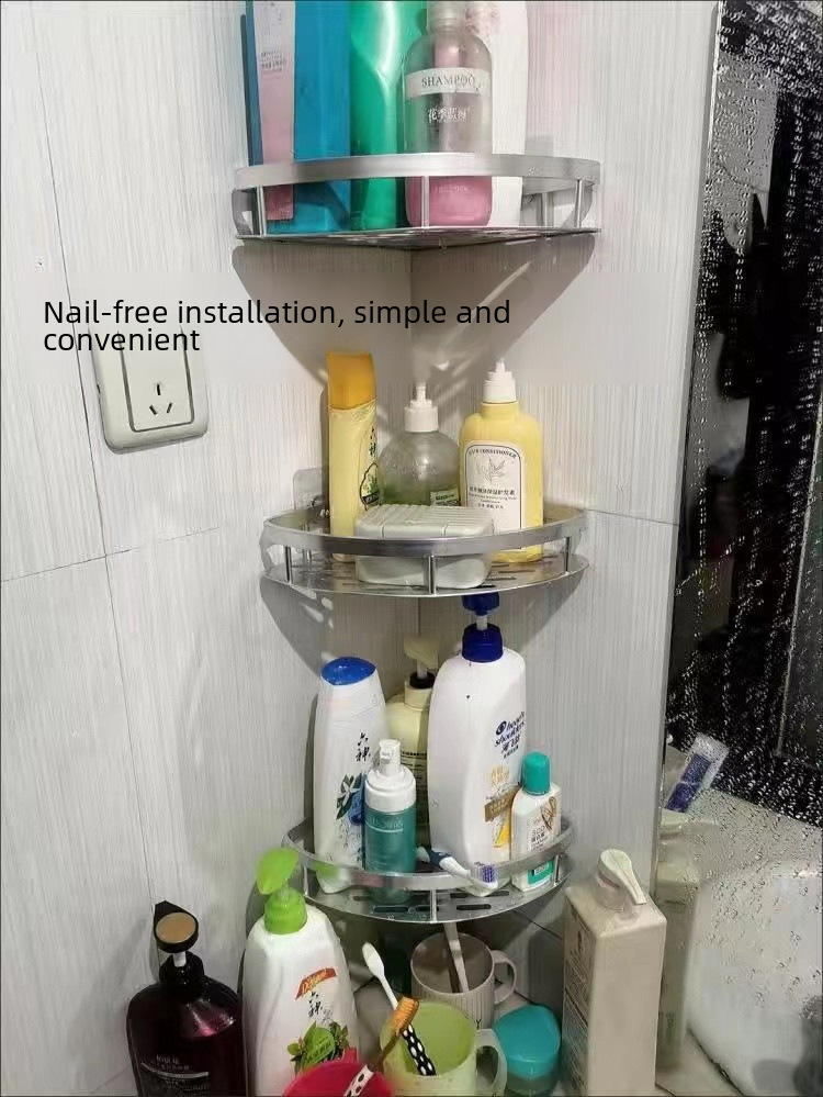 Punch free Space Aluminum Storage Rack Toilet Toilet Tripod Bathroom Storage Rack Wall mounted Toilet Corner Rack