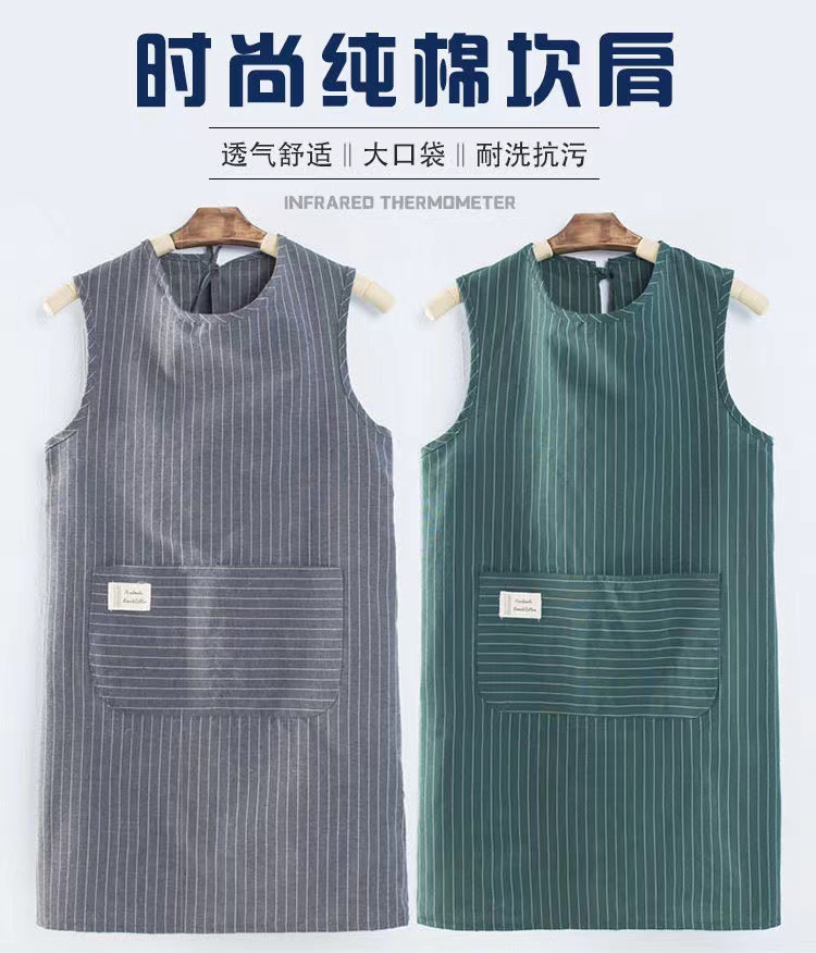 Pure Cotton Apron Sleeveless Overalls Kitchen Household Adult Wailer Zipper Pocket Fashionable Dirt Resistant Outer Wear Work Clothes
