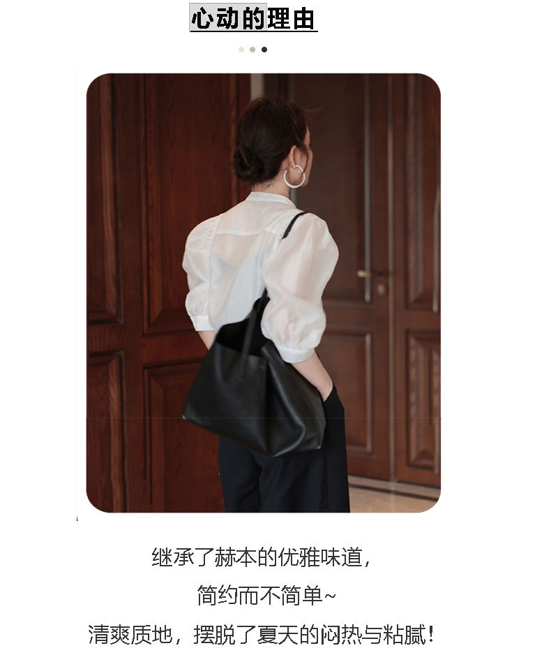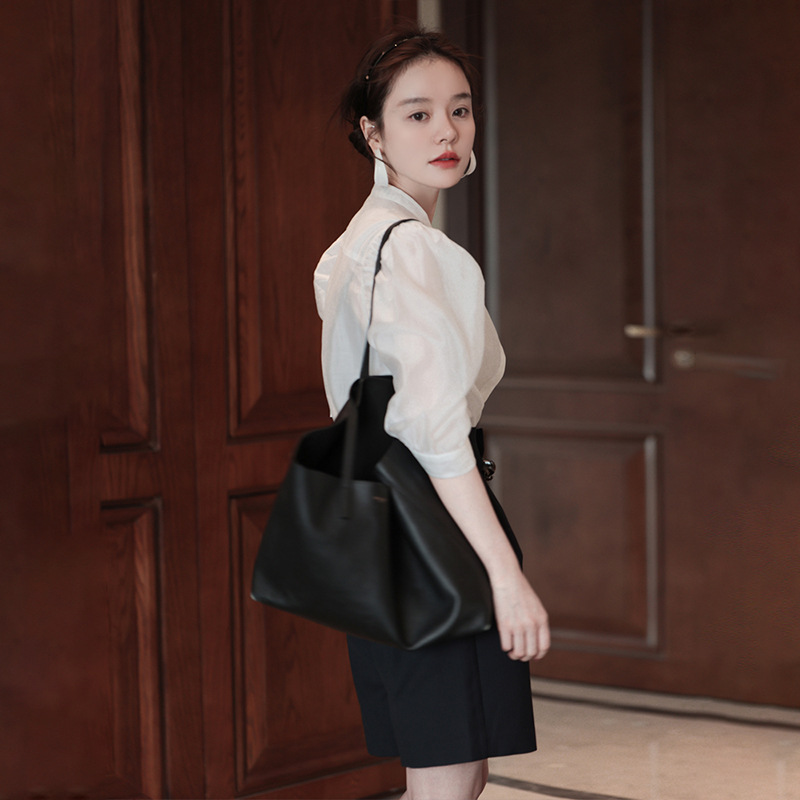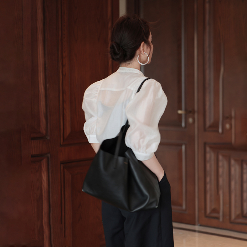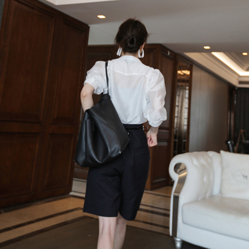 Pure Want Bubble Sleeve Micro transparent White Shirt Suit Shorts Light Mature Wear Shirt Sling Half length Wide leg Pants suit Women