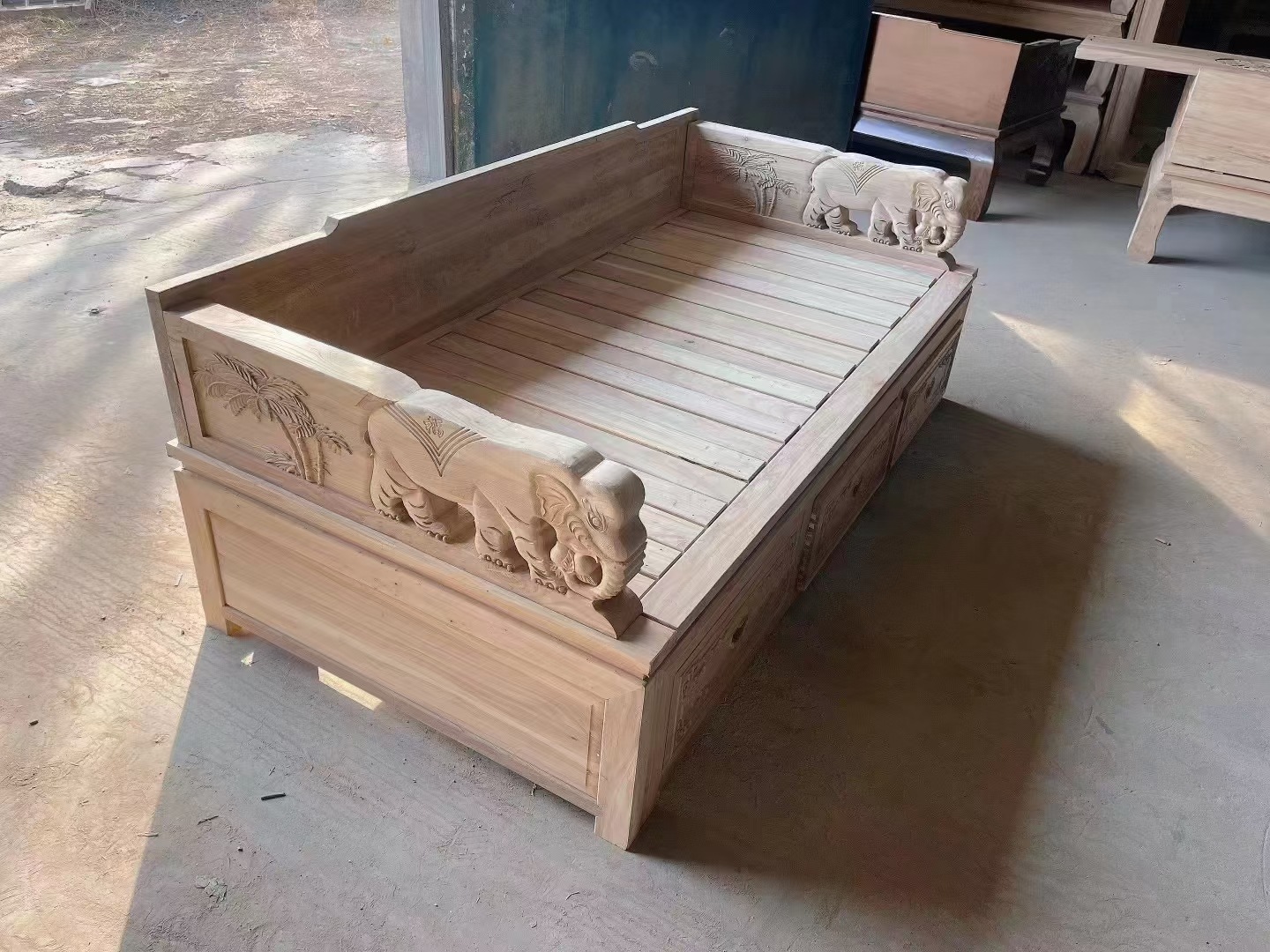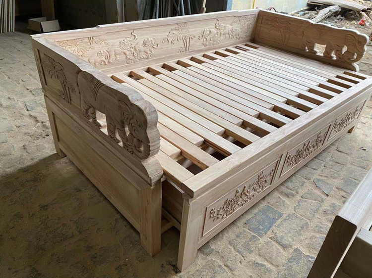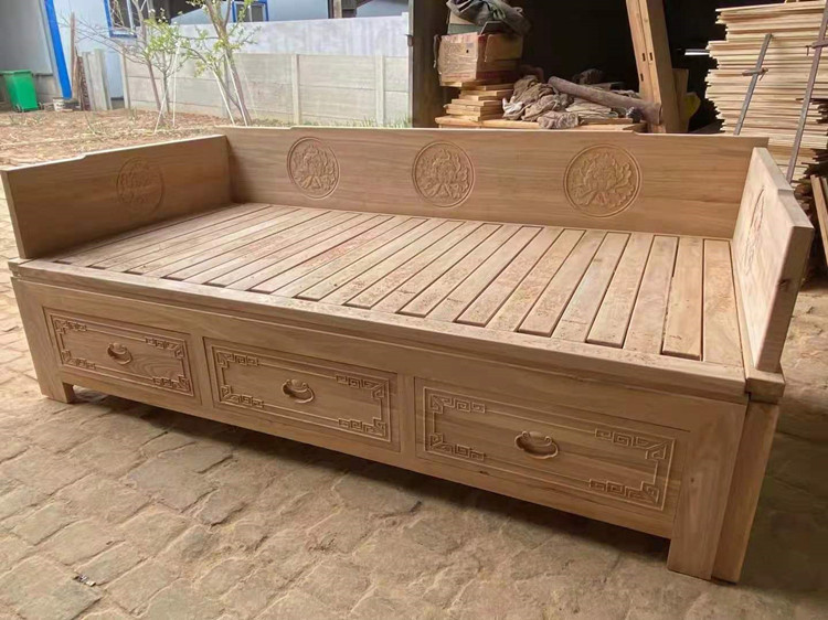 Push pull telescopic solid wood Luohan bed sofa bed old elm new Chinese antique Zen small apartment Luohan couch wholesale