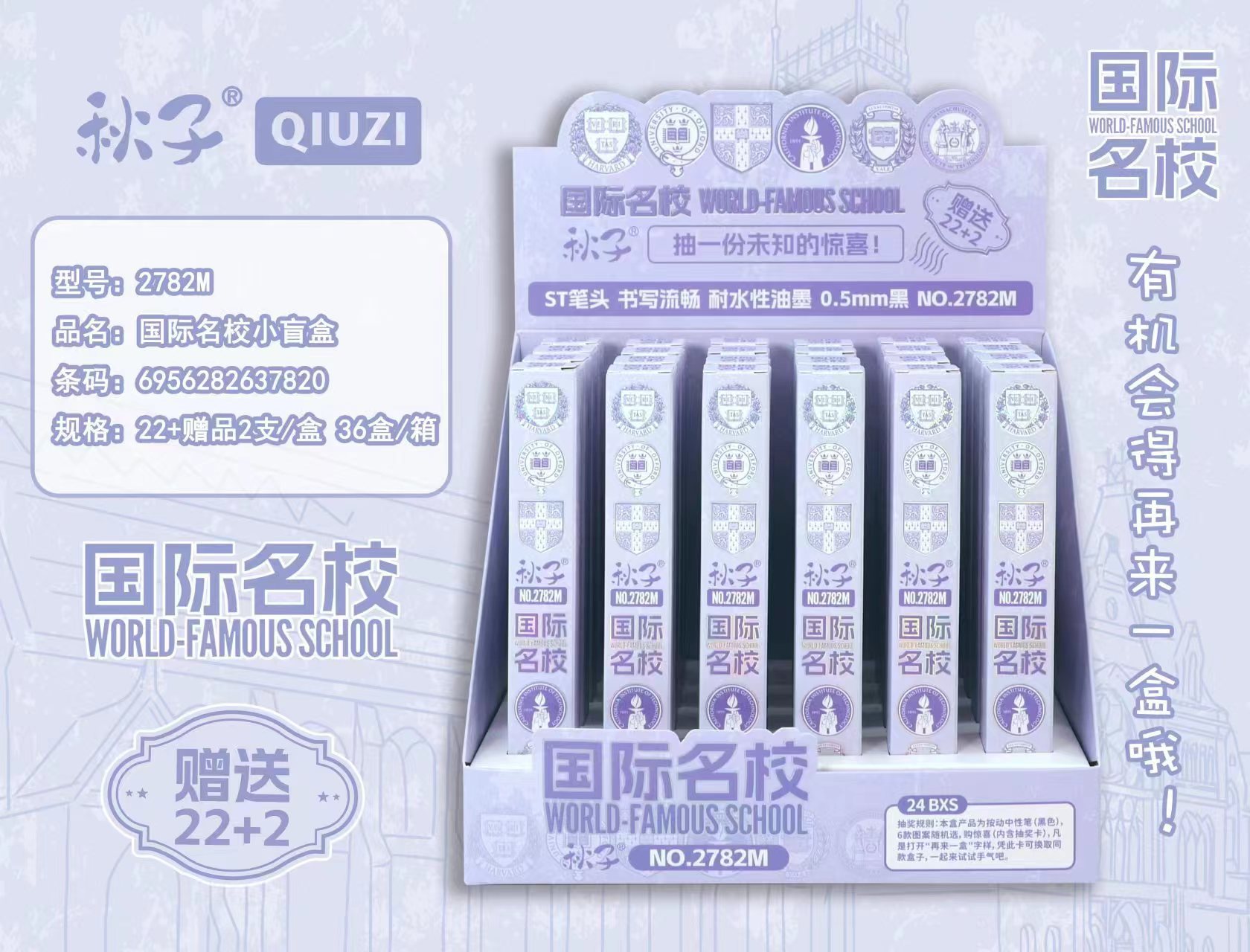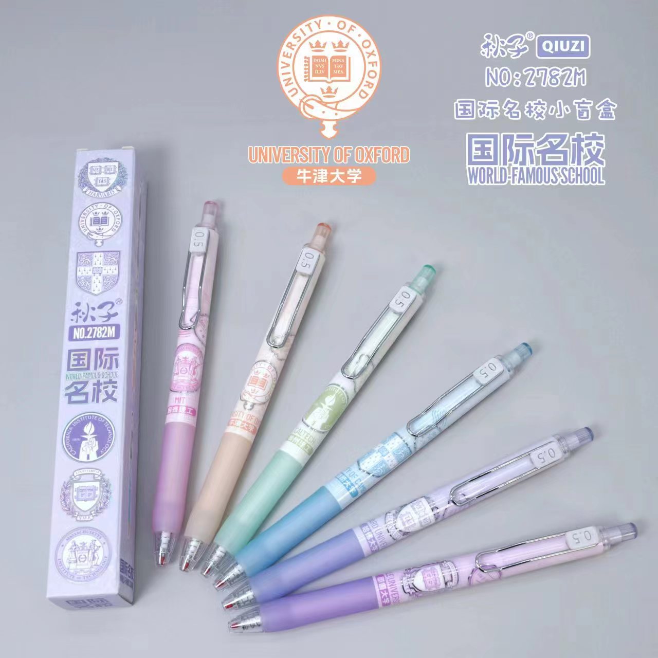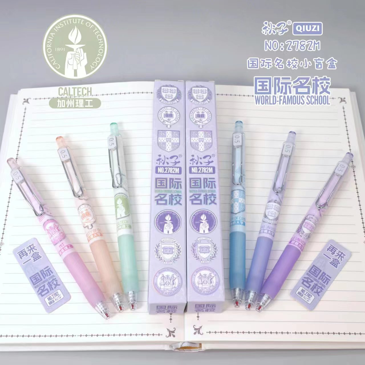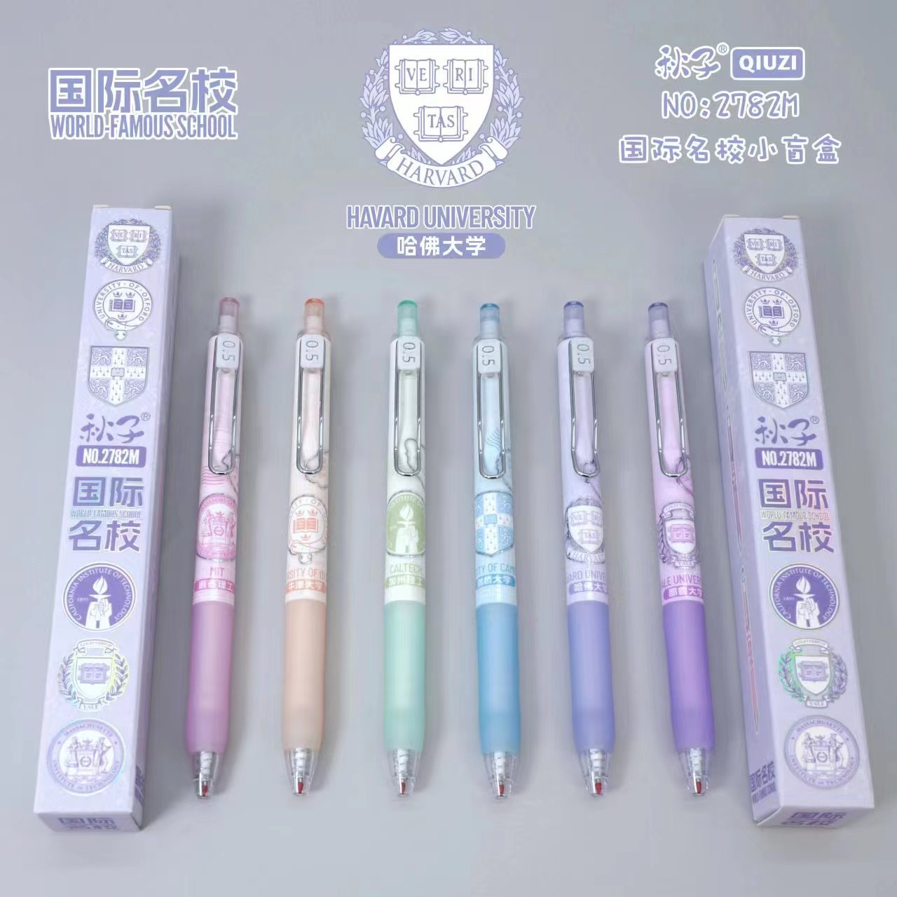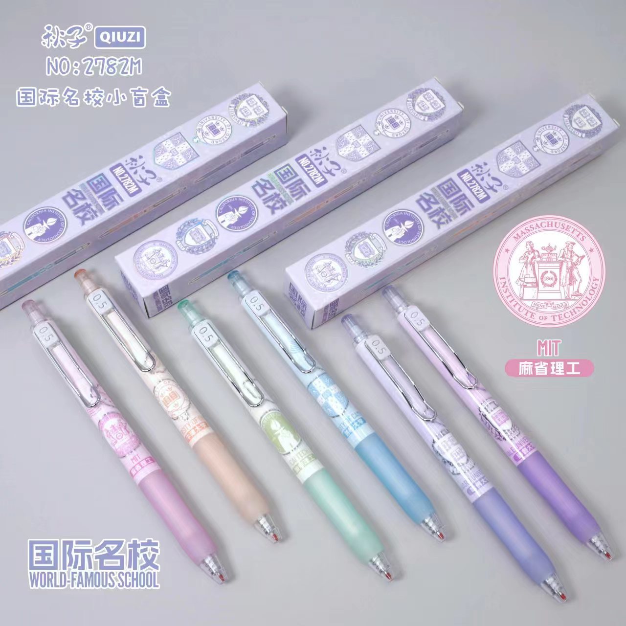 QZ2782 International Famous School small blind box writing smooth water resistant ink student writing smooth push gel pen