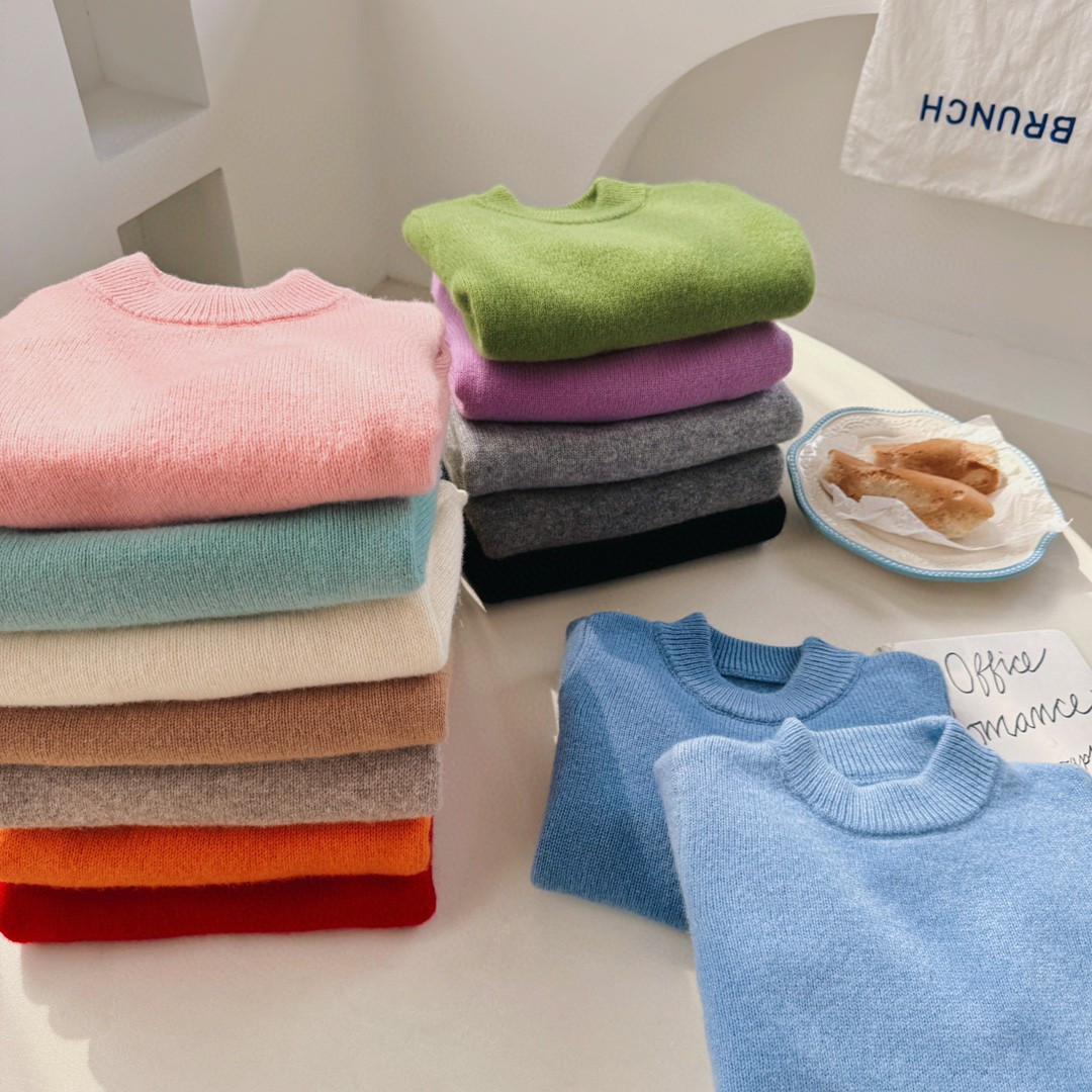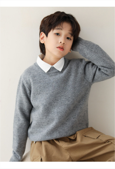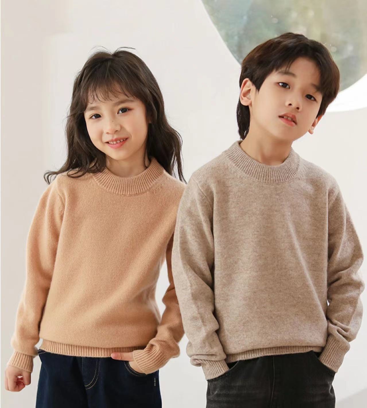 Qinghe Puyuan cashmere children s bottoming shirt men s and women s same sweater pullover round neck sweater sweater casual