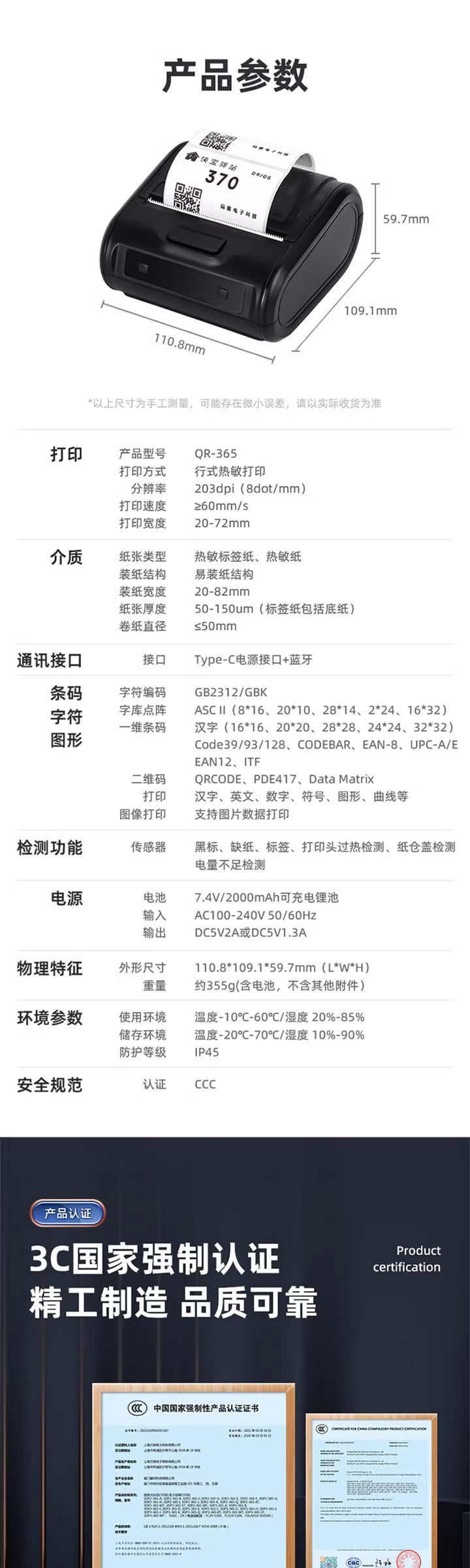 Qirui QR 365 portable Courier universal Bluetooth single machine pick up code storage label printer 80 wide