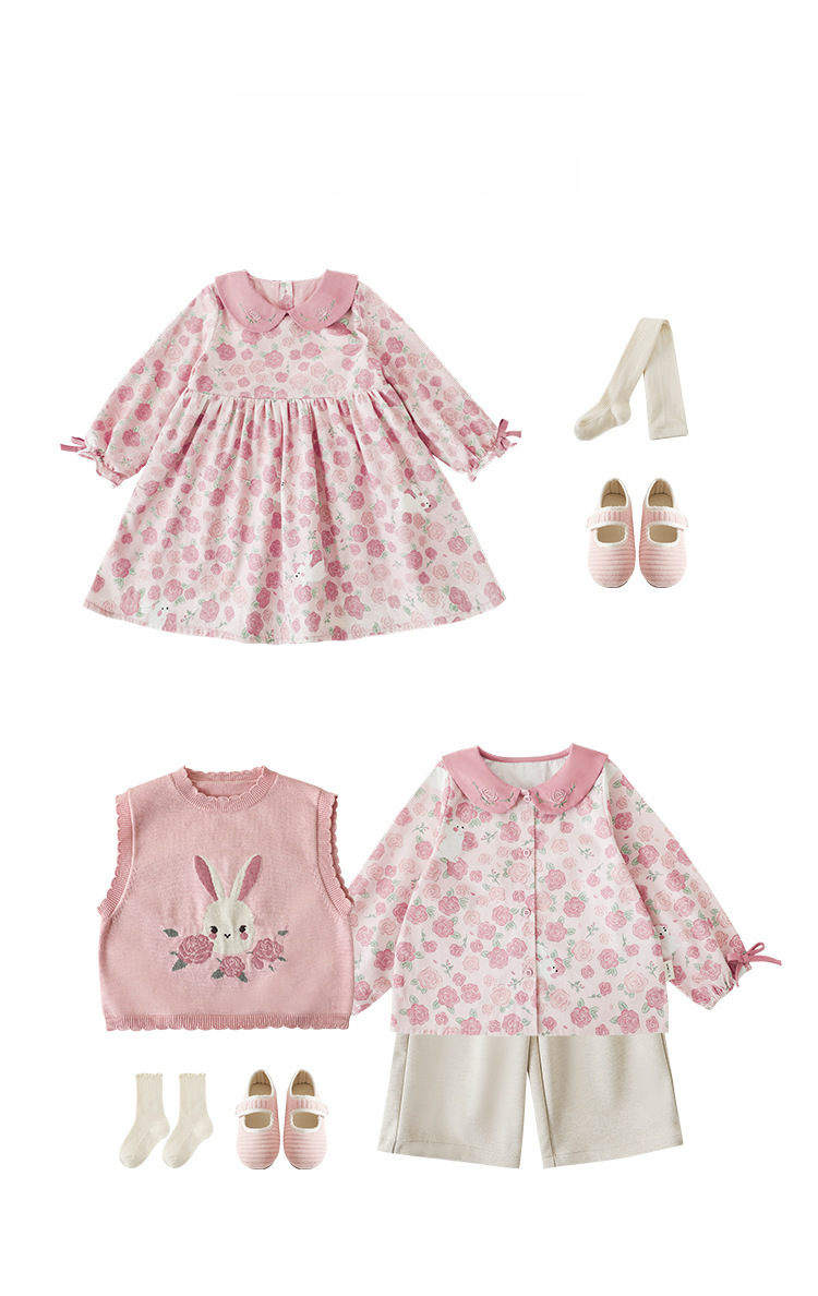 Qiuduo cute girls small free series suit Spring and Autumn New shirt children s warm vest sweater baby dress