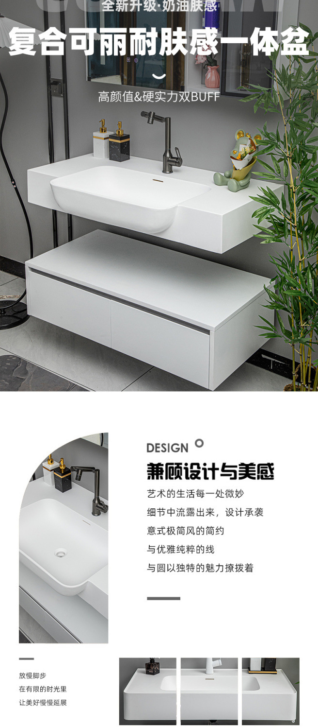 Qsk Skin feeling Countertop Integrated Wash Basin Single Basin Household Domestic Corian Sink Basin