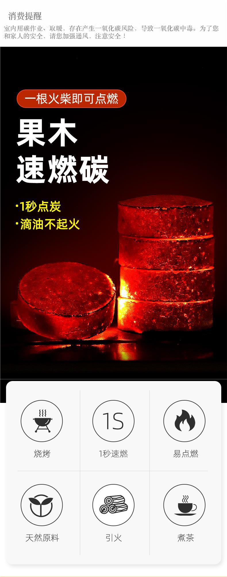Quick Fired Carbon Barbecue Carbon Household Smokeless Fruit Charcoal Flammable Ignition Charcoal Hookah Combustion supporting Carbon Coal Barbecue Oven Charcoal